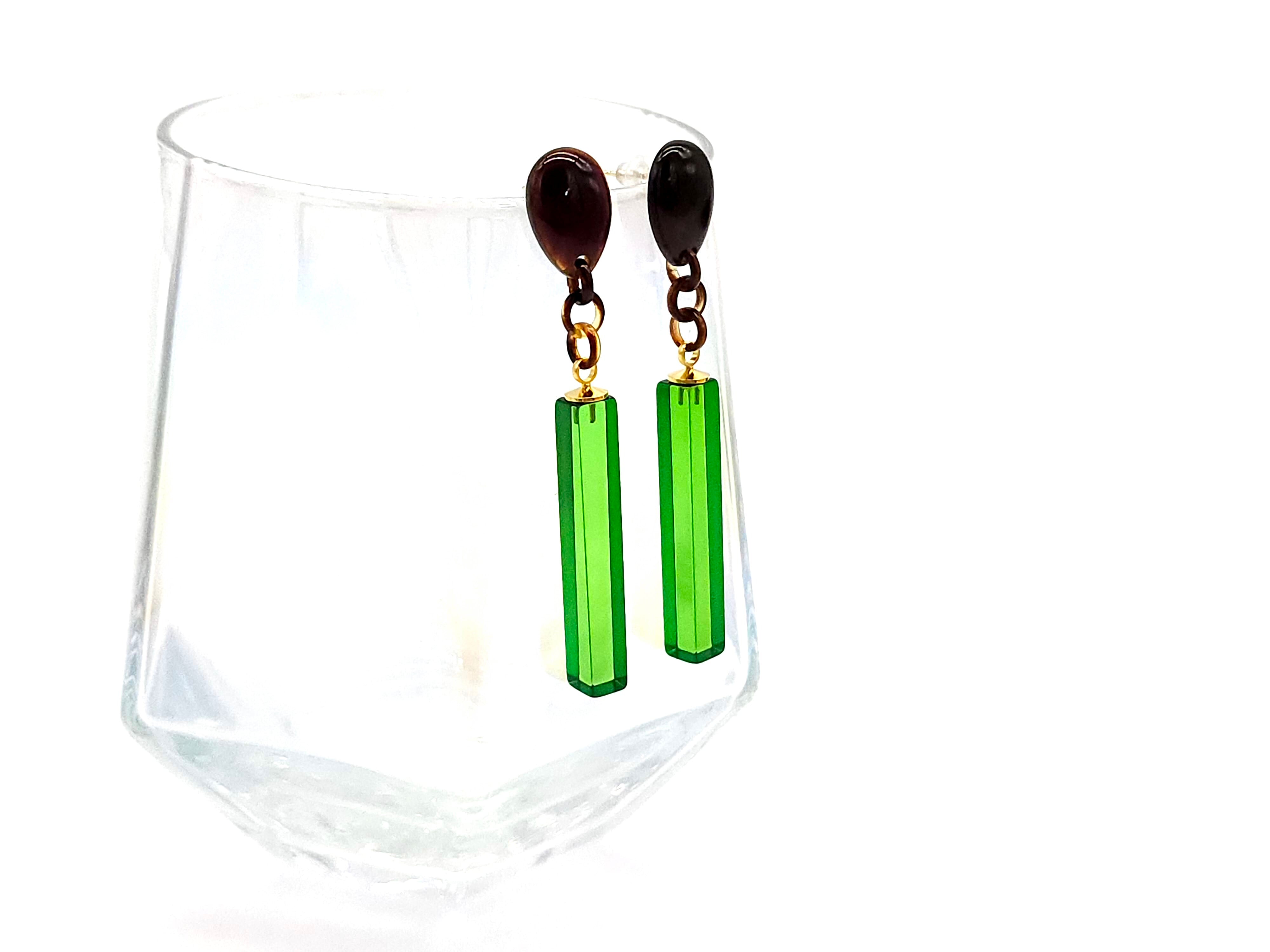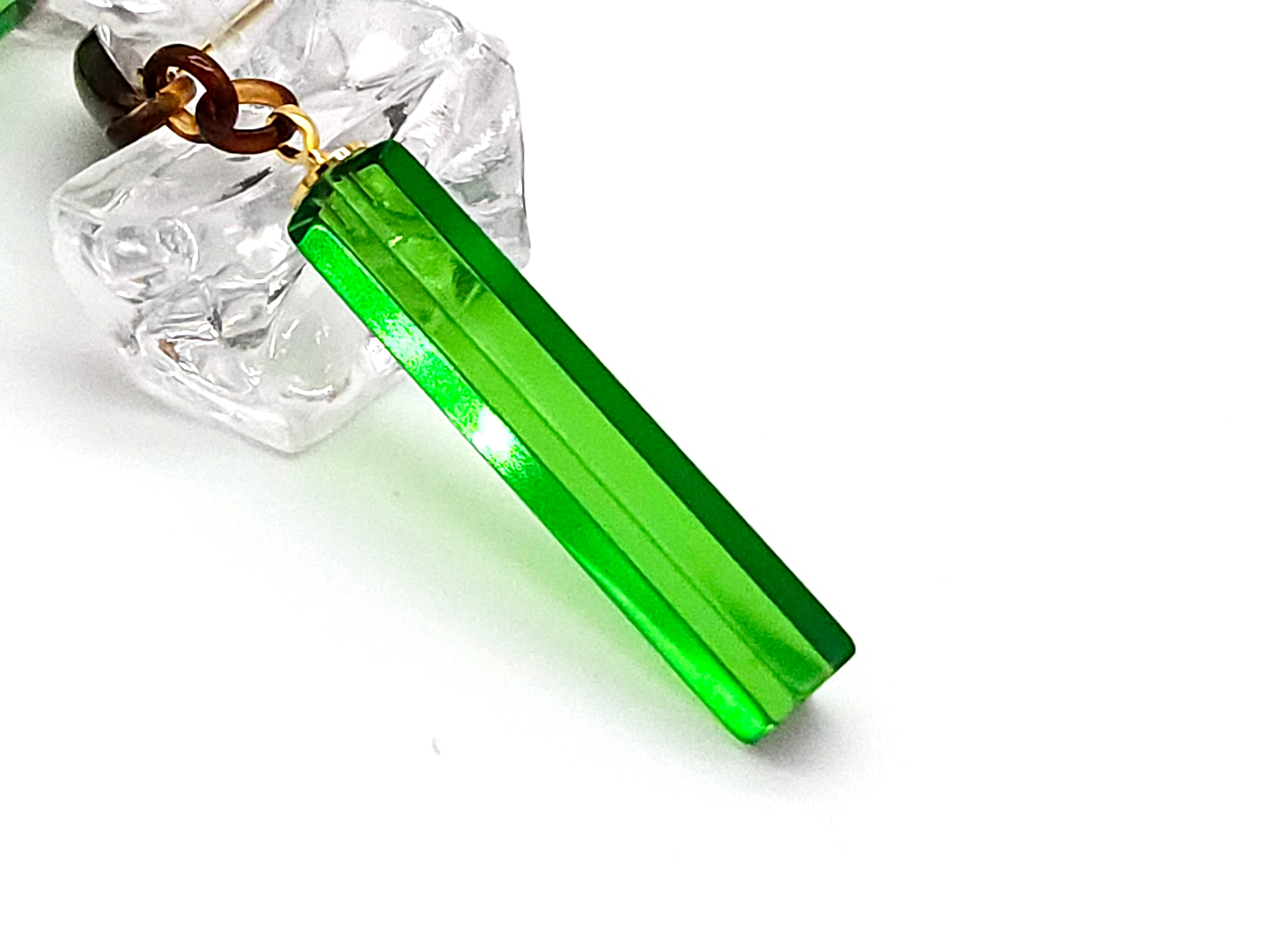 しずくのべっ甲パーツに直結金具を取り付けブラ下がりタイプにしました。下には角柱の琥珀 パーツを下げています。ぶら下がりタイプなので耳元でプラプラとパーツが揺れ、お顔周りが華やかに大人の魅力を引き出します!カリビアングリーンの琥珀 がシャープでスタイリッシュ!カジュアル、フォーマルのどちらにも良く似合います。べっ甲、琥珀 はとても軽いため耳への負担も軽く着けていることを忘れるくらいですのでお手軽にご使用いただけます。本物の良さを味わってください。大切な方へのプレゼントにも最適です。金メッキされていますがチタン製のニッケルフリーのためアレルギーの方にも安心してご使用頂けます。商品はこちらの梱包にて大切に発送致します。天然素材の為、色目やサイズ感は多少異なる場合がございます。※べっ甲及び琥珀 等の天然素材はすべて本物です。通常希望小売価格¥14,000