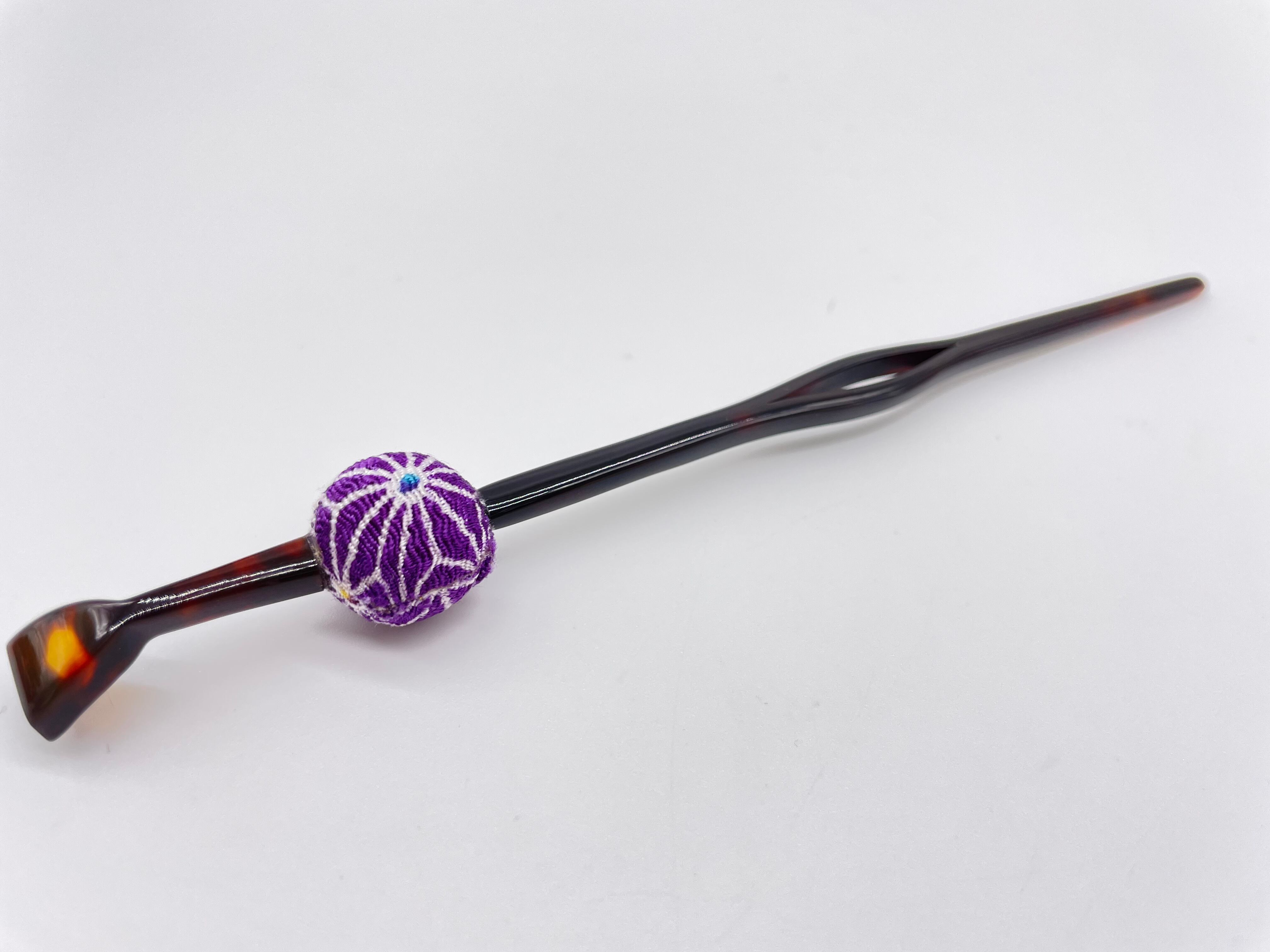 可愛い麻型デザインの「ちりめん」を本べっ甲簪に取り付けた商品です。紫色の可愛らしい玉とべっ甲のコンビは落ち着きの中にも大人な魅力を感じられるアイテム 特に浴衣に良く似合い貴女の和装コーデに色を添えてくれる一品です! お値段もお求めやすい価格となっておりますので、べっ甲が初めての方にもお買い求めやすくなっております 伝統工芸品、オーガニック素材の良さを味わって頂きたい一品です!商品はこちらの梱包にて大切に発送致します。天然素材の為、色目やサイズ感は多少異なる場合がございます。※べっ甲及び琥珀等の天然素材はすべて本物です。通常希望小売価格¥15,000