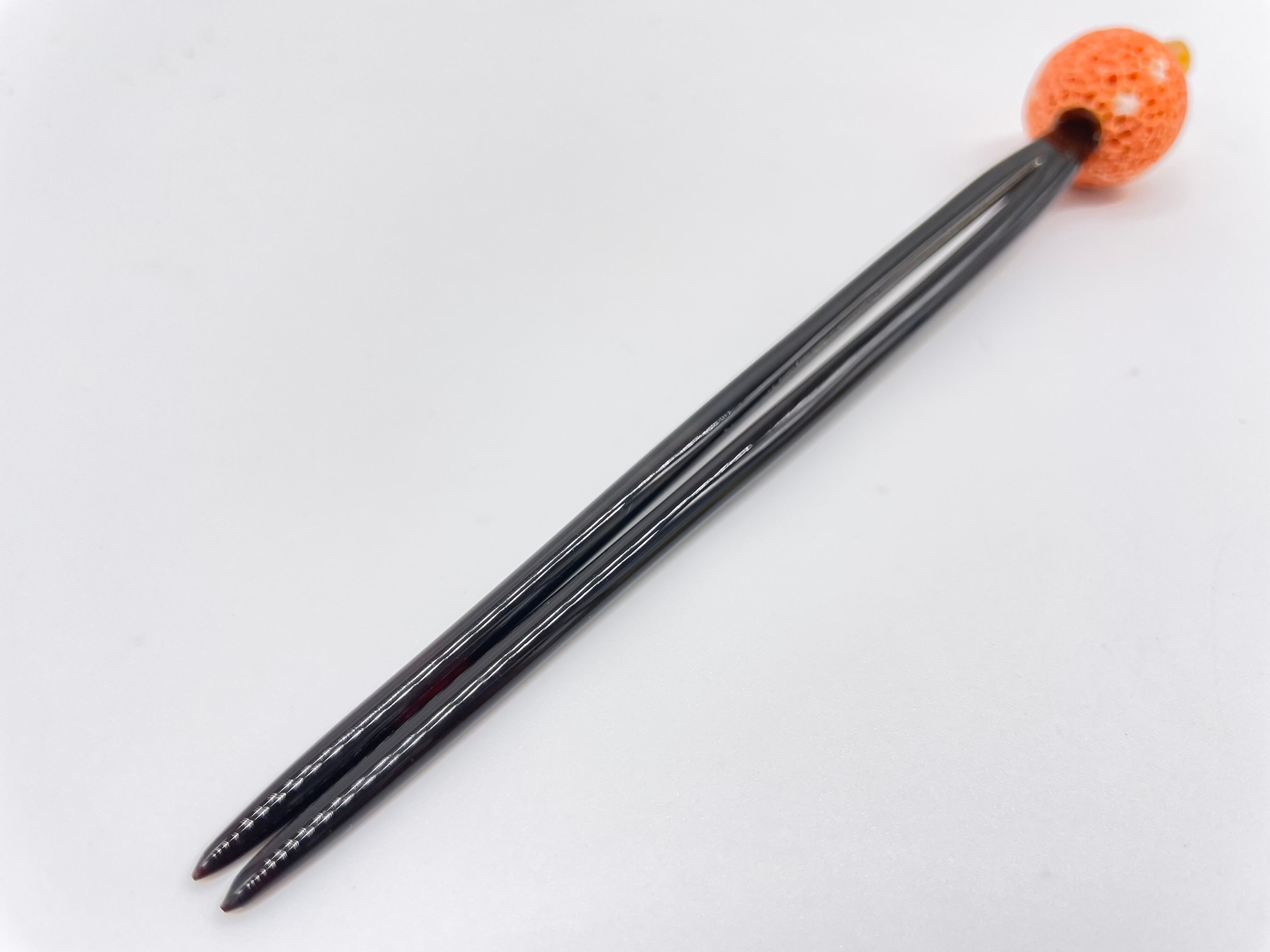 こちらの玉簪は大き目の珊瑚を使用しており玉簪には珍しい二本脚を使用しています。挟み込むように髪を固定しますのでずれにくく安心な一品です。今では希少な珊瑚の巣玉を使い、また耳かき部分には美しい白甲を使い贅沢を演出。大きさ、質、ともに申し分のない一品です。一点物の為、再度の作成、販売はできませんのでお気に召して頂けましたら早めにご購入くださいませ。お値段も格安にて提供させていただいております!大切な方へのプレゼントにいかがでしょうか。商品はこちらの梱包にて大切に発送致します。天然素材の為、色目やサイズ感は多少異なる場合がございます。※べっ甲及び琥珀等の天然素材はすべて本物です。通常希望小売価格¥85,000