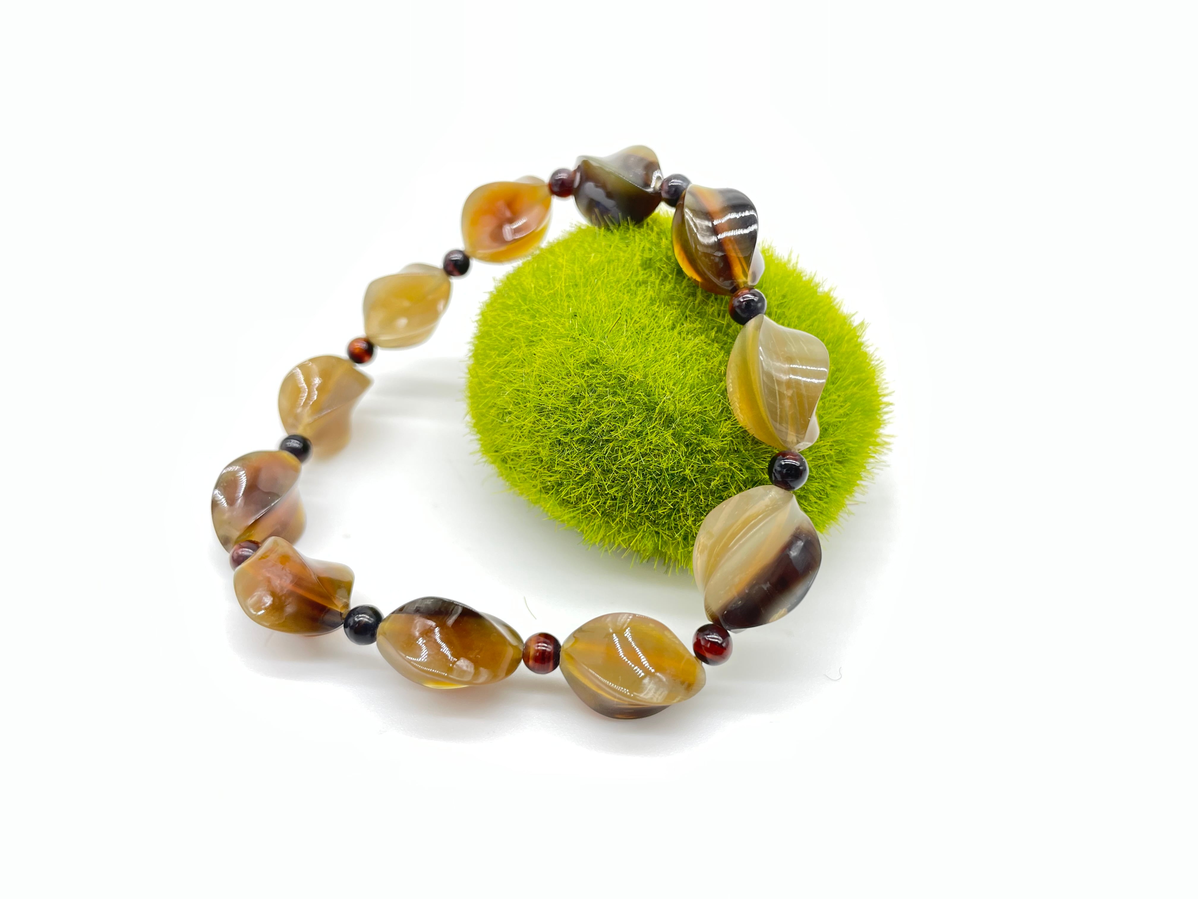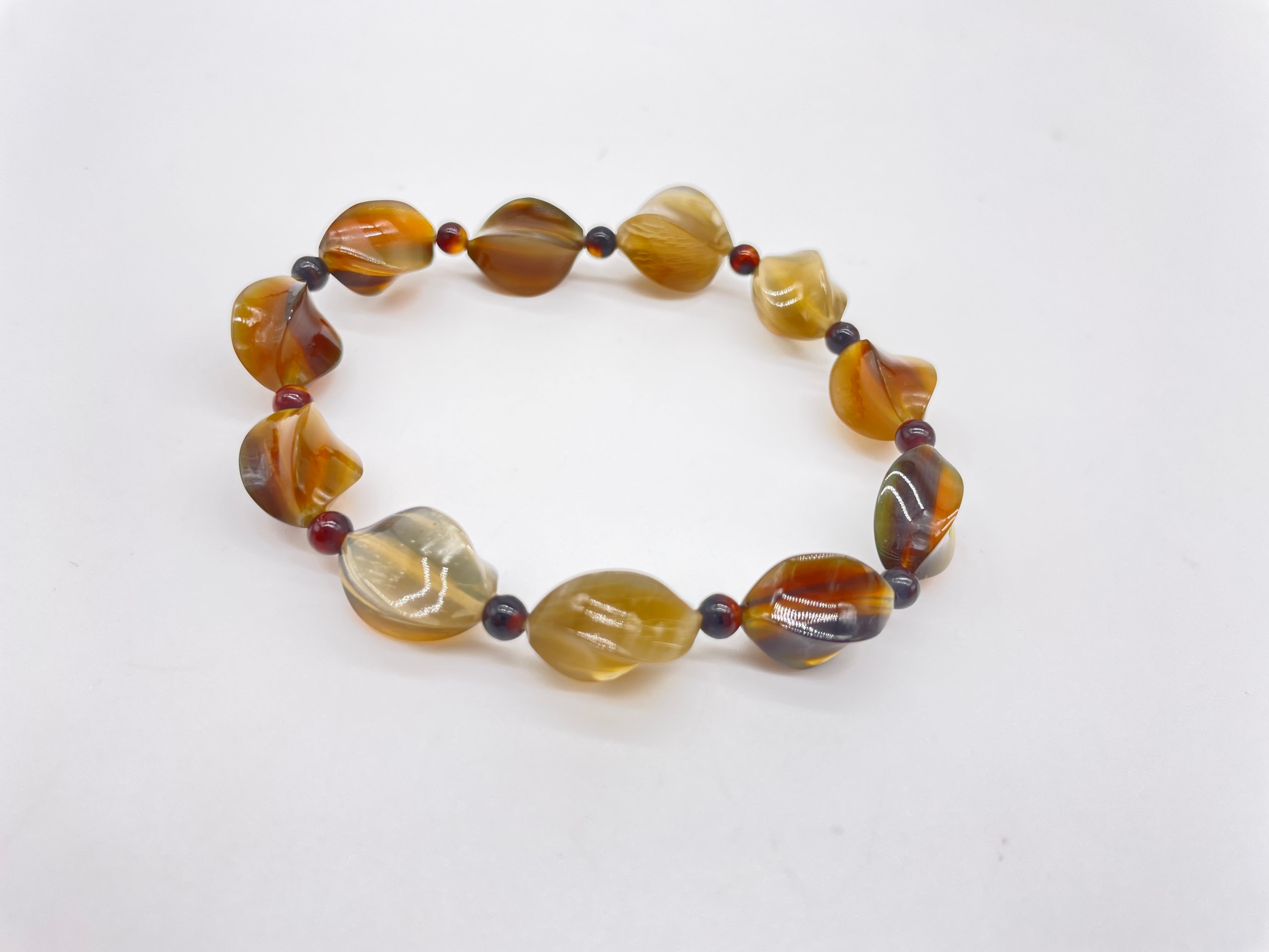 エグリタイプの水牛パーツの間にべっ甲丸玉を入れて組み上げたブレスレット エグリの細工技術が光る素晴らしい一品です。バッファローは作成が難しく接着と圧着を上手く組み合わせてエグリパーツにしています。バッファローのオーガニックな色合いを楽しんで頂ける一品。大人かっこいいアイテムです。限定品のため再販が出来ませんので特価設定にて販売中!水牛は筋などが入りますが割れなどではないのでご安心ください。商品はこちらの梱包にて大切に発送致します。天然素材の為、色目やサイズ感は多少異なる場合がございます。※べっ甲及び琥珀等の天然素材はすべて本物です。通常希望小売価格¥35,000