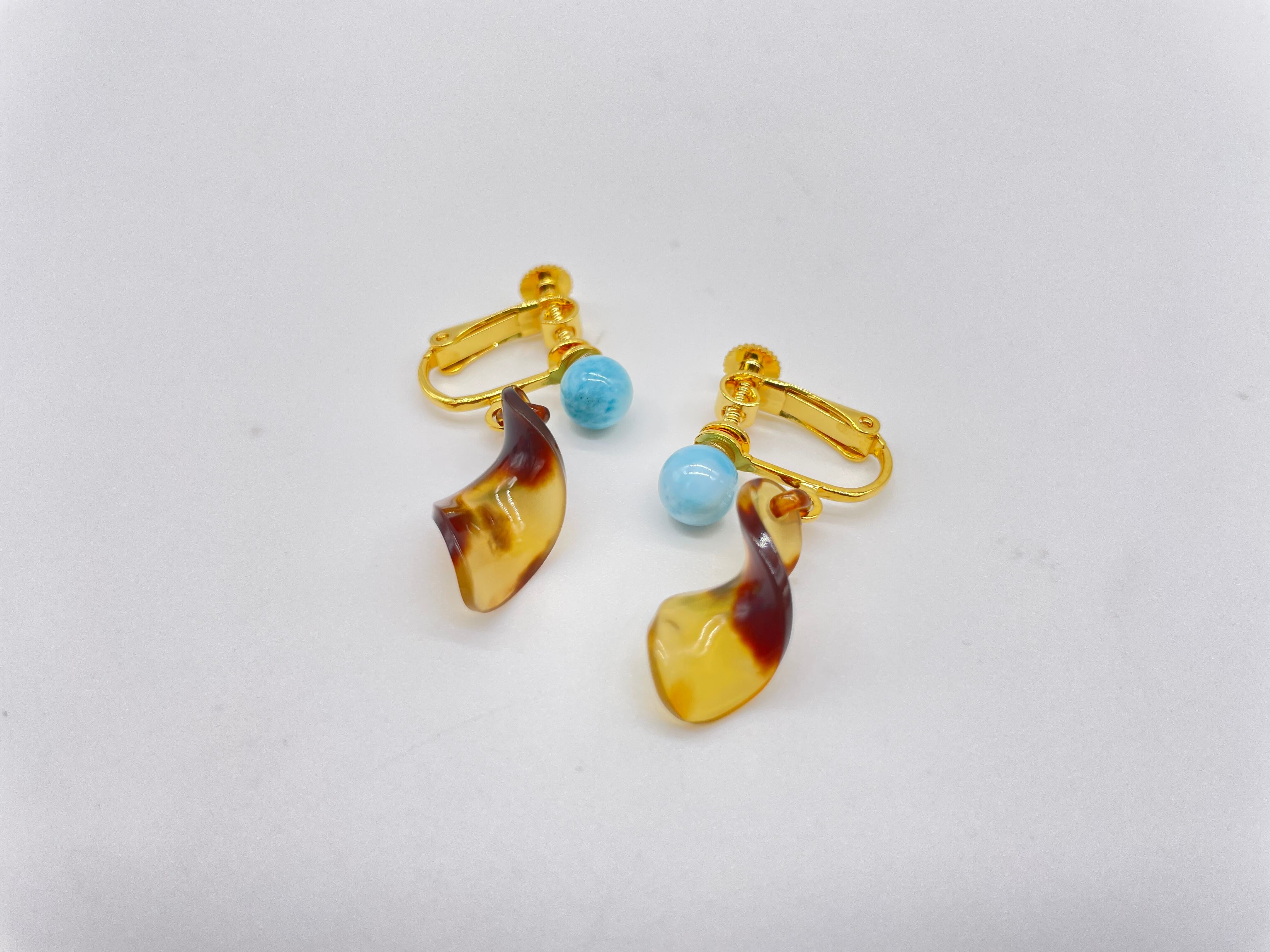 ぶら下がり型のツイストタイプと水色の美しいラリマールを使用し、組み合わせたイヤリングです。ツイストタイプなので立体感が生まれ、大人らしさを演出してくれるアイテムとなっております。そこに水色の清涼感のあるラリマールの丸玉が加わることで、可愛らしさも引き出してくれます。普段のお出かけなどで身に着けて頂くと華やぐこと間違いなし!キレイめファッションに着けて頂いても良いアクセントとなるのでスタッフもおススメです!べっ甲はとても軽いため重さを感じず疲れにくいです。商品はこちらの梱包にて大切に発送致します。天然素材の為、色目やサイズ感は多少異なる場合がございます。※べっ甲及び琥珀等の天然素材はすべて本物です。通常希望小売価格¥9,000