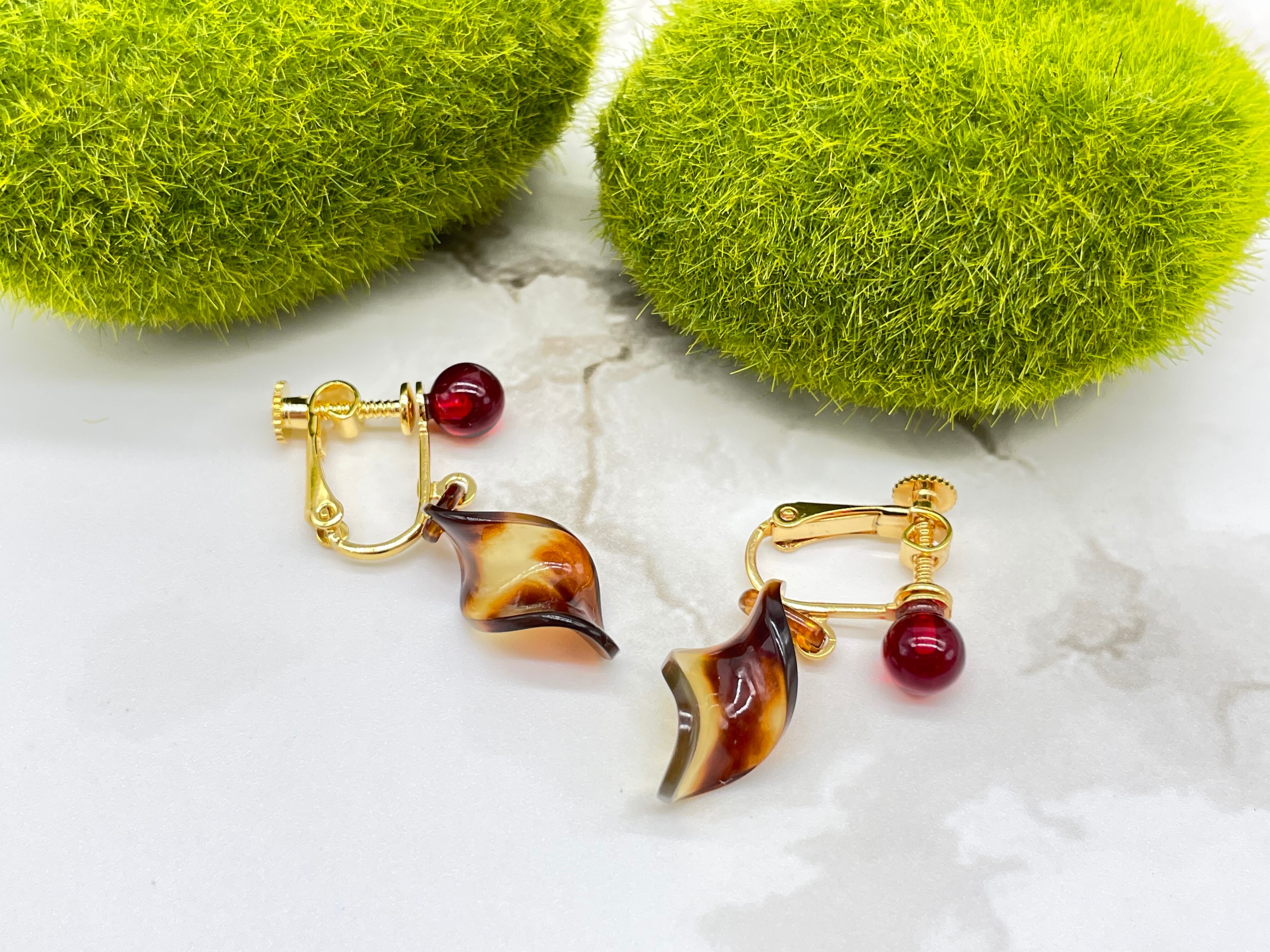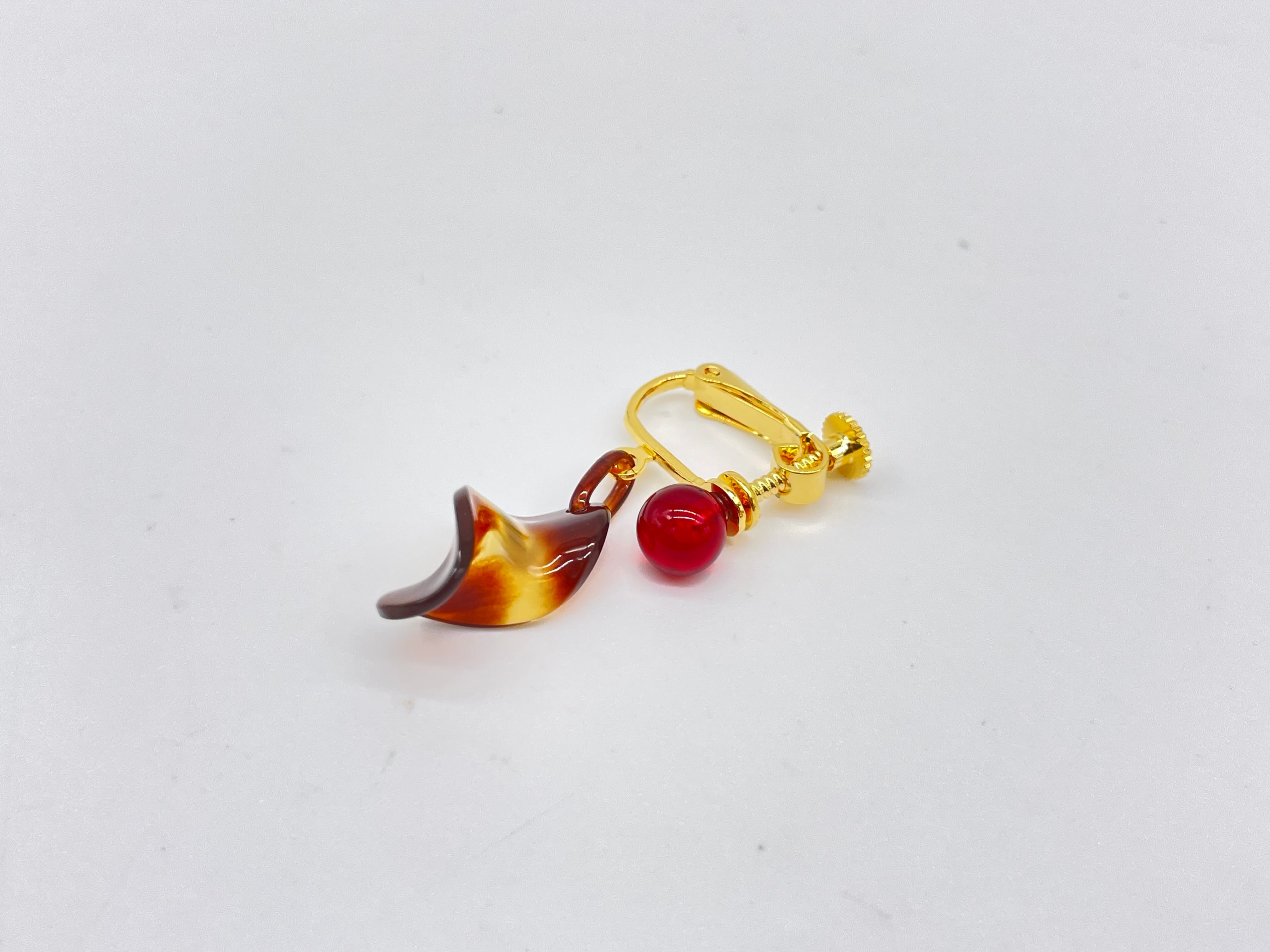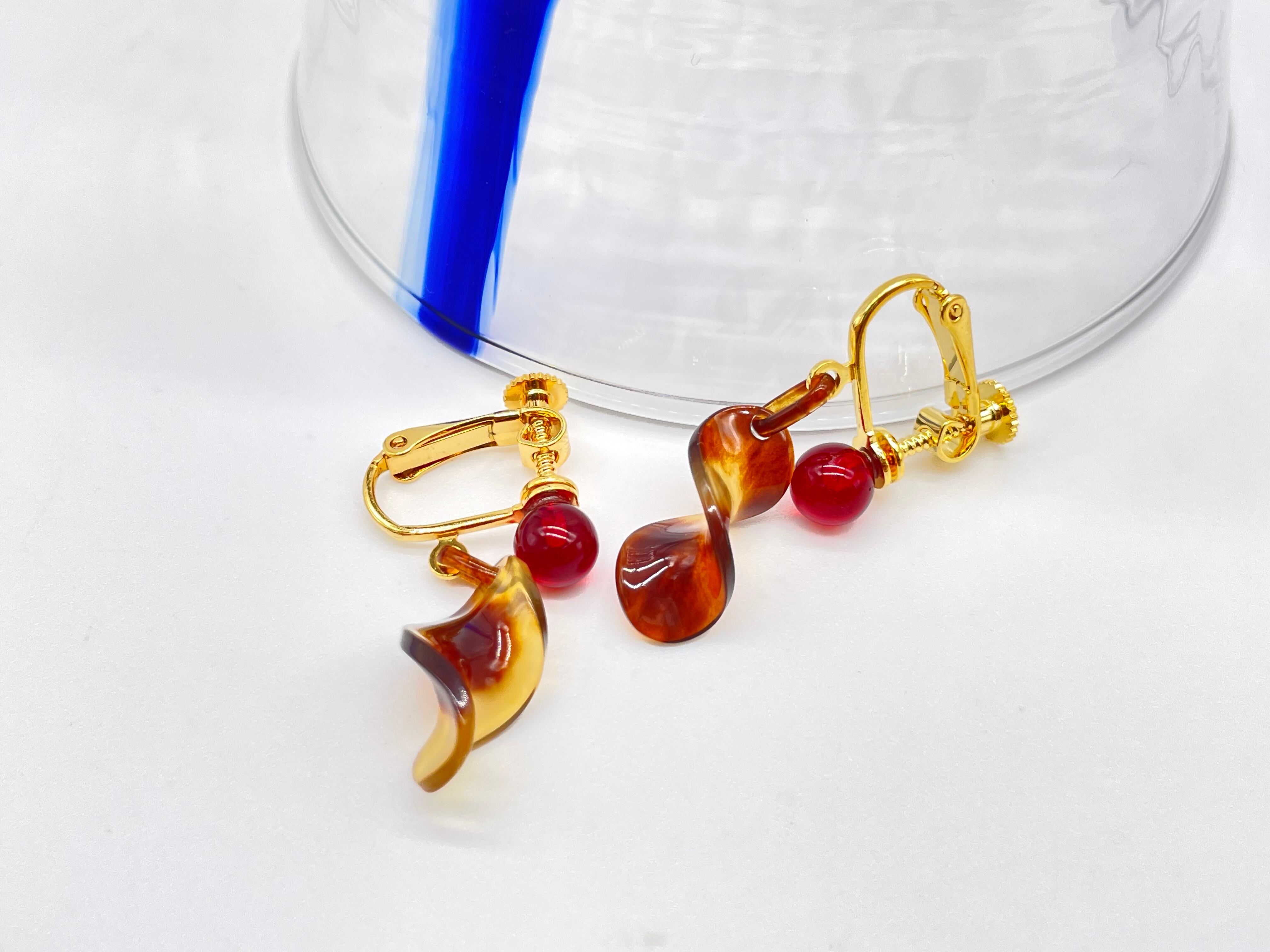 ぶら下がり型のツイストタイプと赤色の上品な琥珀を組み合わせたイヤリングです。ツイストタイプなので立体感が生まれ、大人らしさを演出してくれます。そこに赤色の琥珀の丸玉が加わることで、さらに上品な仕上がりとなったアイテムです。普段のお出かけなどで身に着けて頂くと華やぐこと間違いなし!キレイめファッションに着けて頂いても良いアクセントとなるのでスタッフもおススメです!べっ甲はとても軽いため重さを感じず疲れにくいです。商品はこちらの梱包にて大切に発送致します。天然素材の為、色目やサイズ感は多少異なる場合がございます。※べっ甲及び琥珀等の天然素材はすべて本物です。通常希望小売価格¥9,000