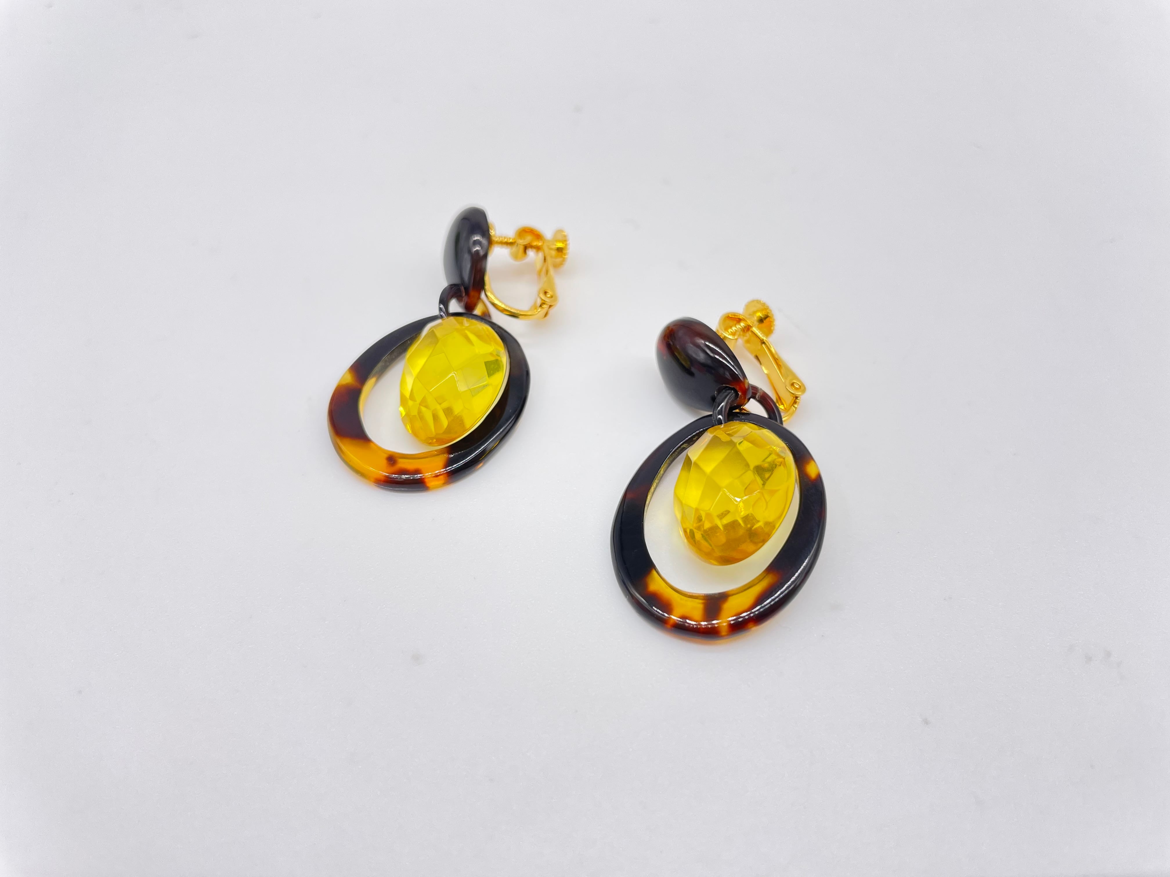 べっ甲リング枠の中にオーバル型のファセットカットされた美しい琥珀を組み合わせたイヤリングです。ゆらゆら揺れる商品ですので美しさだけでなく可愛らしさも演出してくれます!とてもボリュームがあり存在感をアピールしてくれます。普段のお出かけや、結婚式などの特別なイベントにもお使い頂ける汎用性の高いイヤリングです!べっ甲はとても軽いため重さを感じず疲れにくいです。女性らしいワンピースなどに良くお似合いの商品ですので、当店の女性スタッフ一押しのアイテムです。こちらの商品はプレゼントにも最適です。ピアスへの加工も無償でさせて頂きますのでメール、メッセージでお伝えください(但し金具はチタンの直結タイプとなります)。商品はこちらの梱包にて大切に発送致します。天然素材の為、色目やサイズ感は多少異なる場合がございます。※べっ甲及び琥珀等の天然素材はすべて本物です。通常希望小売価格¥32,000