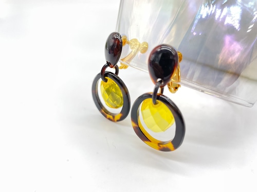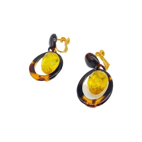 ●説明 本べっ甲 バラフ(背甲)使用 ファセットタイプ本琥珀イエロー使用 金具 金メッキばね式使用 9mm丸カン使用