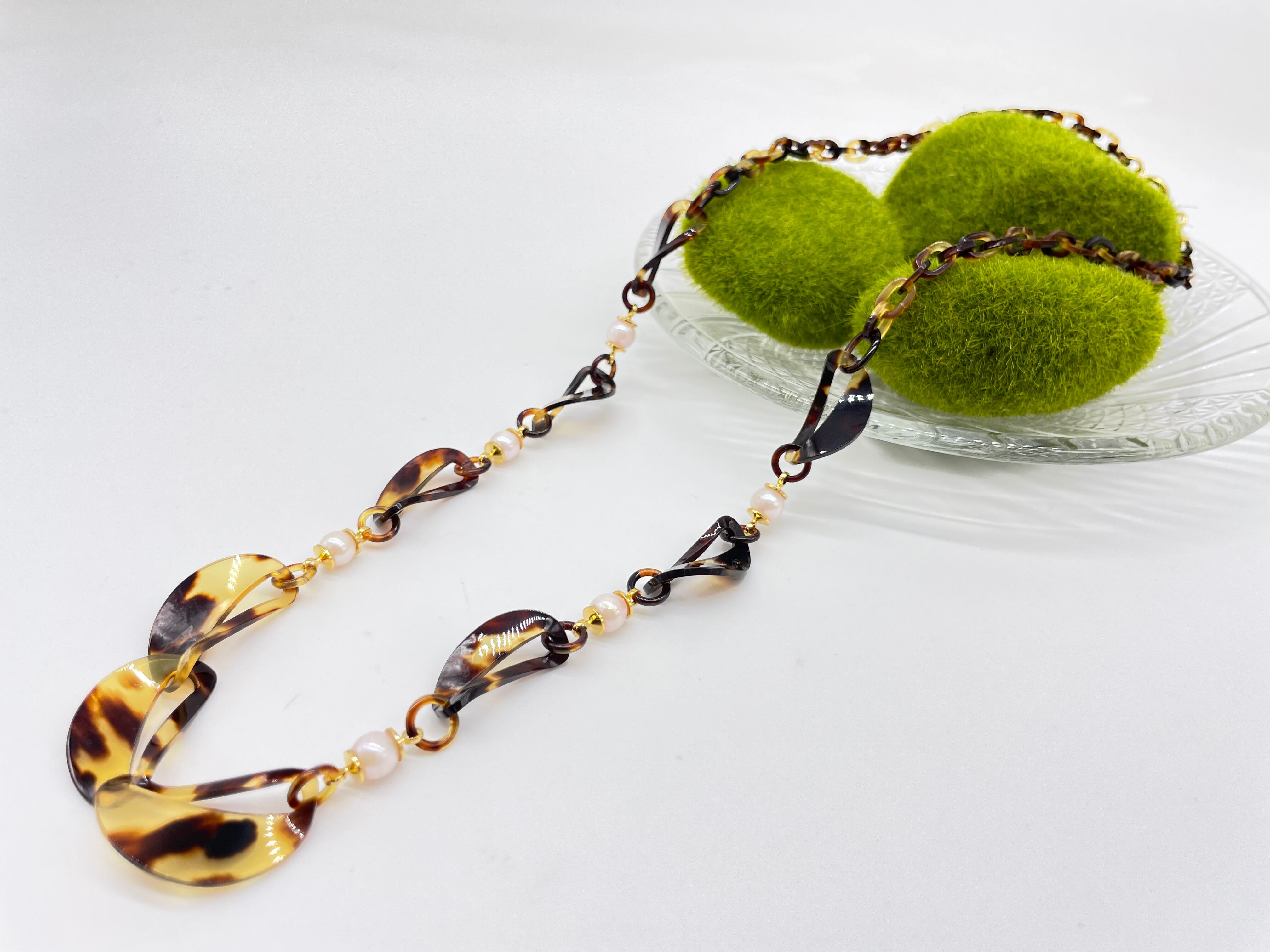三日月型の中のパーツをくり抜いたユニークで可愛いデザインのネックレスです。贅沢に本パールを散りばめたことで可愛さの中に華やかさと上品さを兼ね備えています。エレガントな装いでも、カジュアルにもお使い頂けるので、当店の女性スタッフ一押しのアイテムです。自分へのご褒美に是非!大切な方へのプレゼントにも最適です。商品はこちらの梱包にて大切に発送致します。天然素材の為、色目やサイズ感は多少異なる場合がございます。※べっ甲及び琥珀等の天然素材はすべて本物です。通常希望価格¥35,000