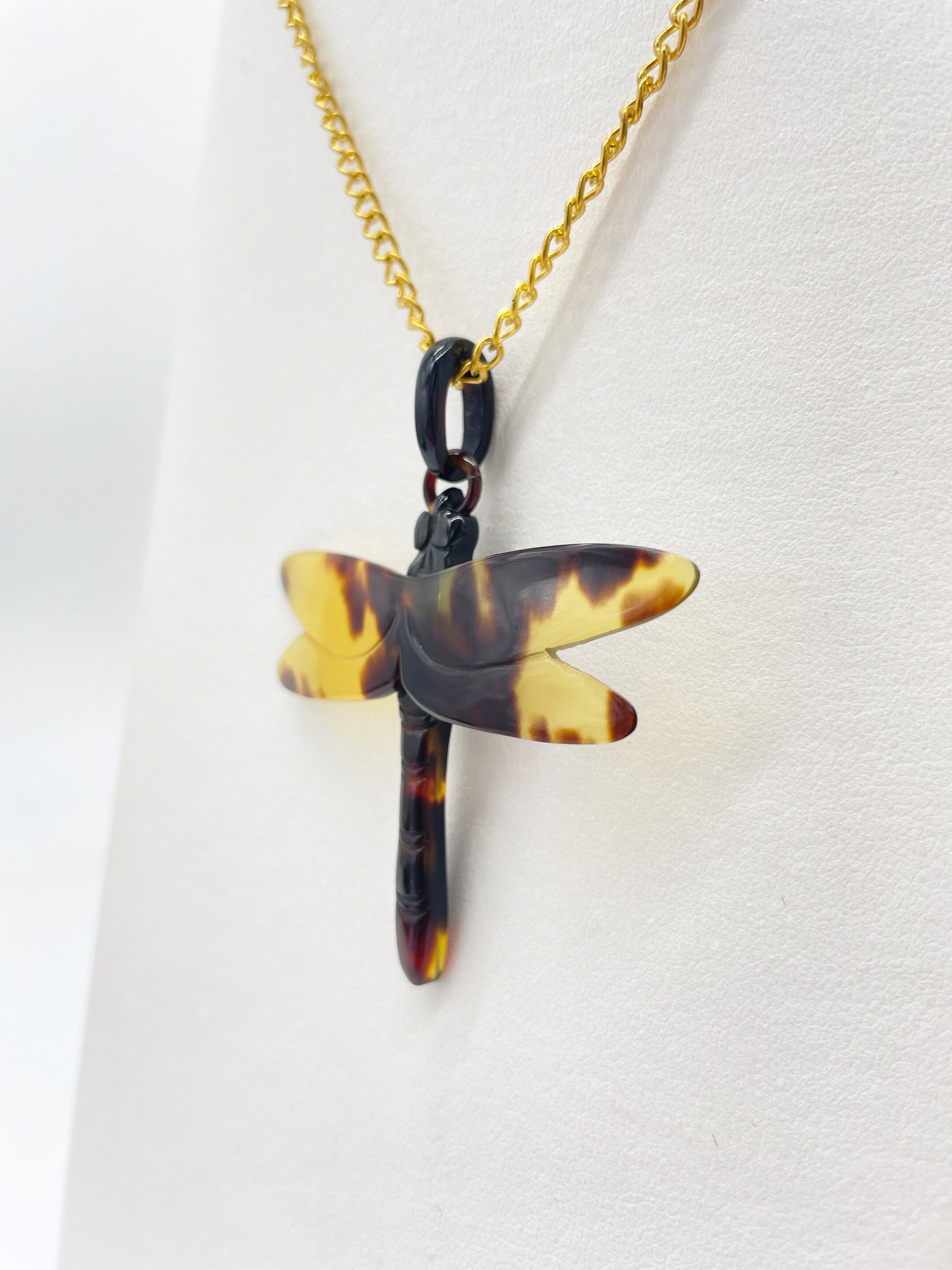 べっ甲の美しさ活かした、繊細なトンボ型のペンダント。羽や胴体には自然なグラデーションが施され、べっ甲ならではの艶と深みが際立ちますので、首元に軽やかなアクセントを添えます。トンボは「勝ち虫」として縁起の良いモチーフとされ、贈り物にもおすすめ。こちらの商品は、季節を問わず楽しめる、伝統と遊び心が融合した逸品です。べっ甲はとても軽いため重さを感じず疲れにくいです。こちらの金メッキの付属チェーンはサービスでお付けしておりますが、お手持ちのチェーンなどに通してもお使い頂ける商品です。画像にあるスピネルチェーン(別売り)と合わせて頂くと、より豪華な仕上がりになります。この機会に本物のべっ甲の良さを是非お試しください。べっ甲の輝きとトンボの軽やかさが、胸元に静かな力を宿します。商品はこちらの梱包にて大切に発送致します。天然素材の為、色目やサイズ感は多少異なる場合がございます。※べっ甲及び琥珀等の天然素材はすべて本物です。通常希望小売価格¥18,500
