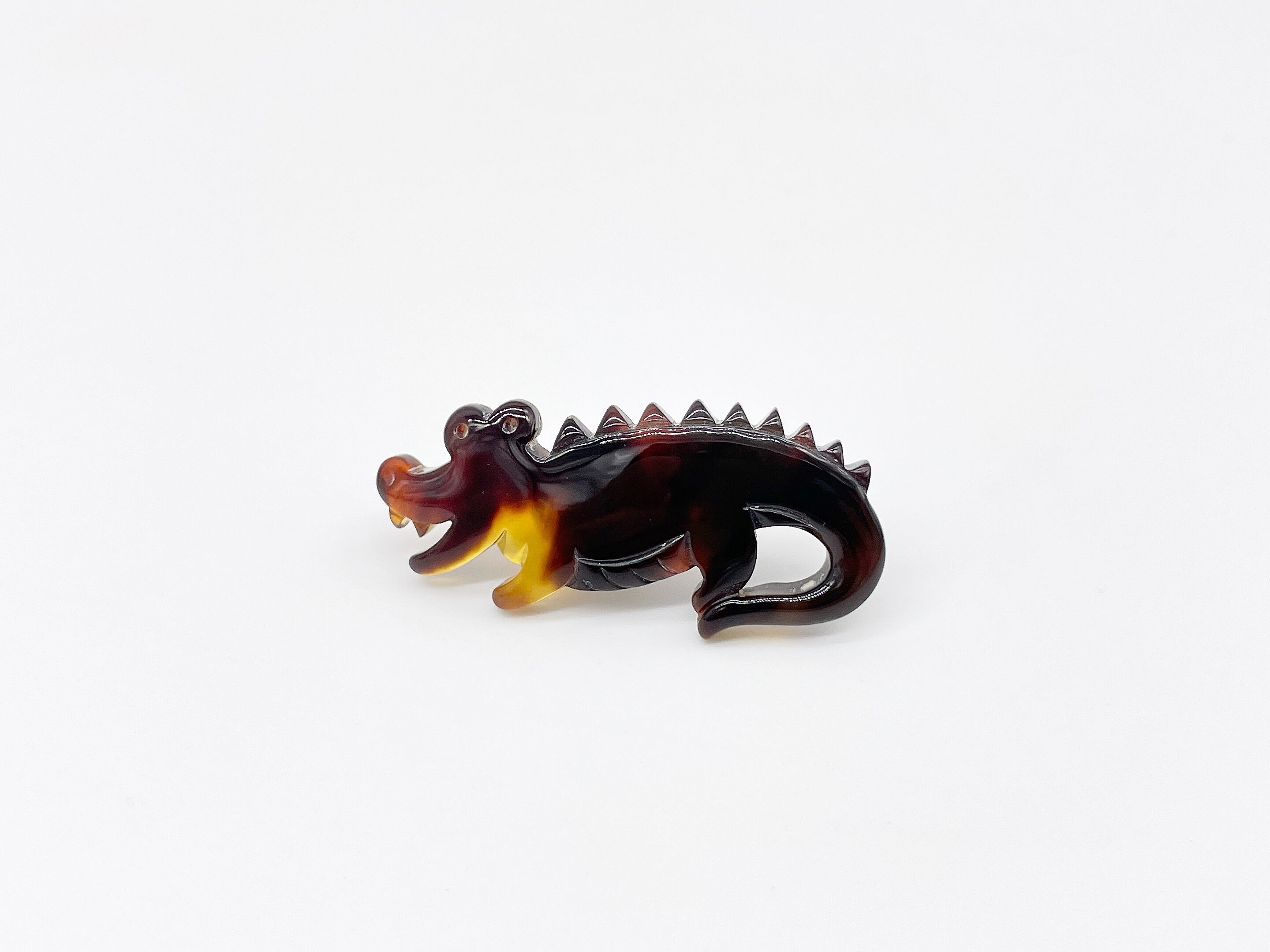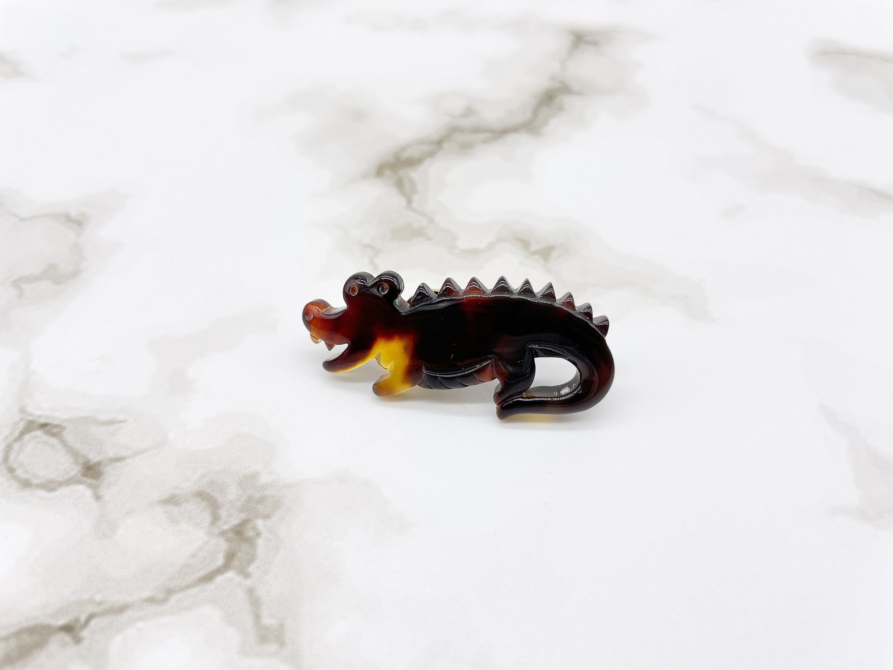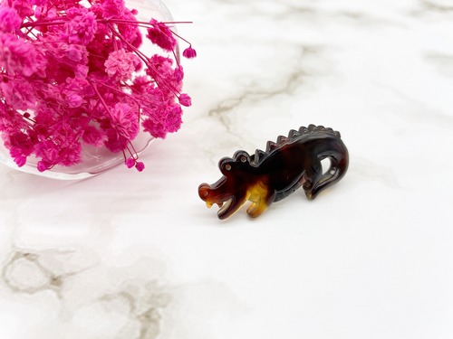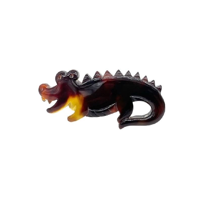 べっ甲独特のバラフが美しい、グラデーションが特徴の本べっ甲を使用した、ユニークなワニ型ピンブローチです。べっ甲特有の艶やかな光沢が高級感を演出し、遊び心のあるデザインながらも上品な印象を与えます。小ぶりながら存在感があり、ジャケットや帽子、バッグなどにさりげなくアクセントを添えるアイテム。伝統素材と個性的なモチーフが融合した、他にはない一点ものです。この機会に本物のべっ甲の良さを是非お試しください。装いに、ちょっとした冒険心とべっ甲の美を。商品はこちらの梱包にて大切に発送致します。天然素材の為、色目やサイズ感は多少異なる場合がございます。※べっ甲及び琥珀 等の天然素材はすべて本物です。通常希望小売価格¥13,500