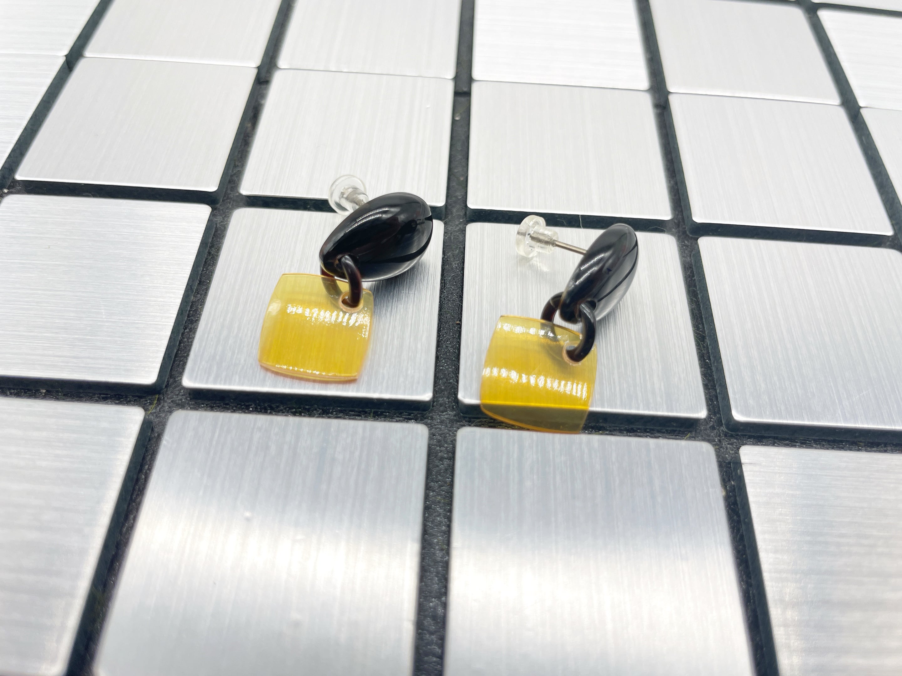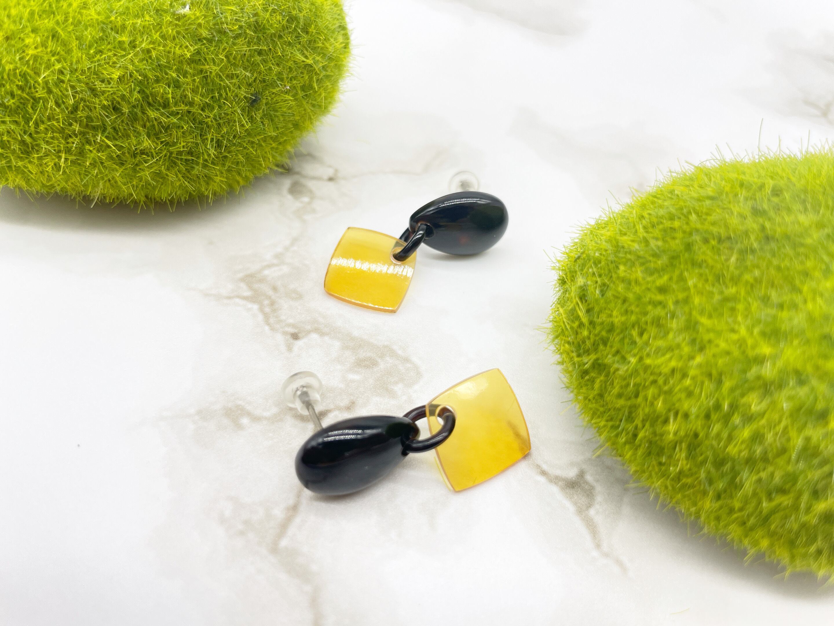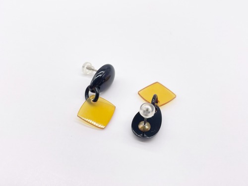 艶やかな黒色の本べっ甲と、柔らかな黄色が美しい白甲を組み合わせた、洗練されたデザインのピアス。上部にはしずく型の黒べっ甲、下部には透明感のある白甲のスクエアパーツが揺れ、耳元に上品な動きを添えます。天然素材ならではの色合いと質感が魅力で、シンプルながらも存在感のある仕上がり。金具はサージカルチタンのニッケルフリーを使用しているのでアレルギーの方にも安心してご使用頂けます。白甲のやさしい輝きが、あなたの耳元に静かな華を添えます。●べっ甲はとても軽いためお気軽にお付けいただけます。商品はこちらの梱包にて大切に発送致します。天然素材の為、色目やサイズ感は多少異なる場合がございます。※べっ甲及び琥珀等の天然素材はすべて本物です。通常希望小売価格¥10,000