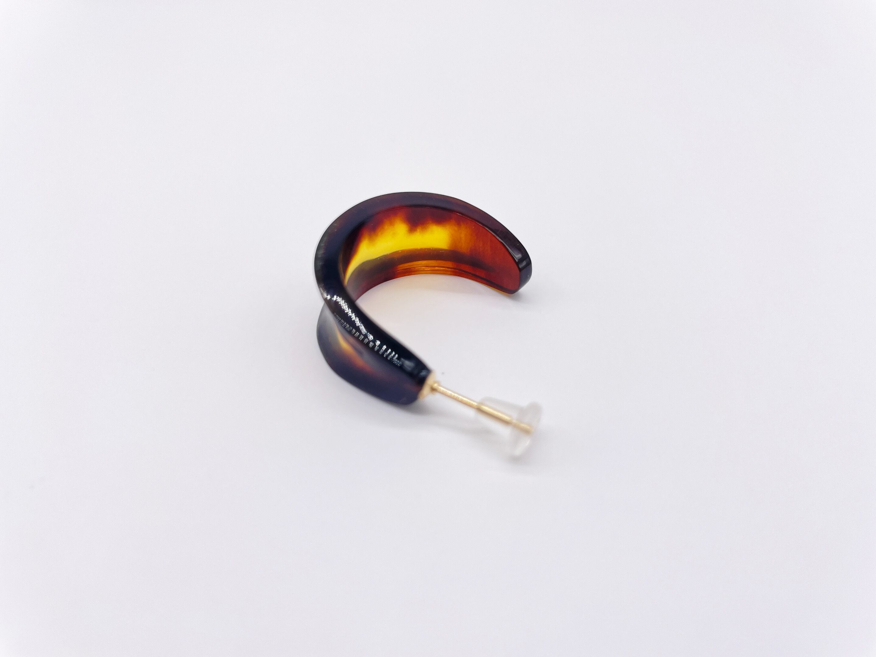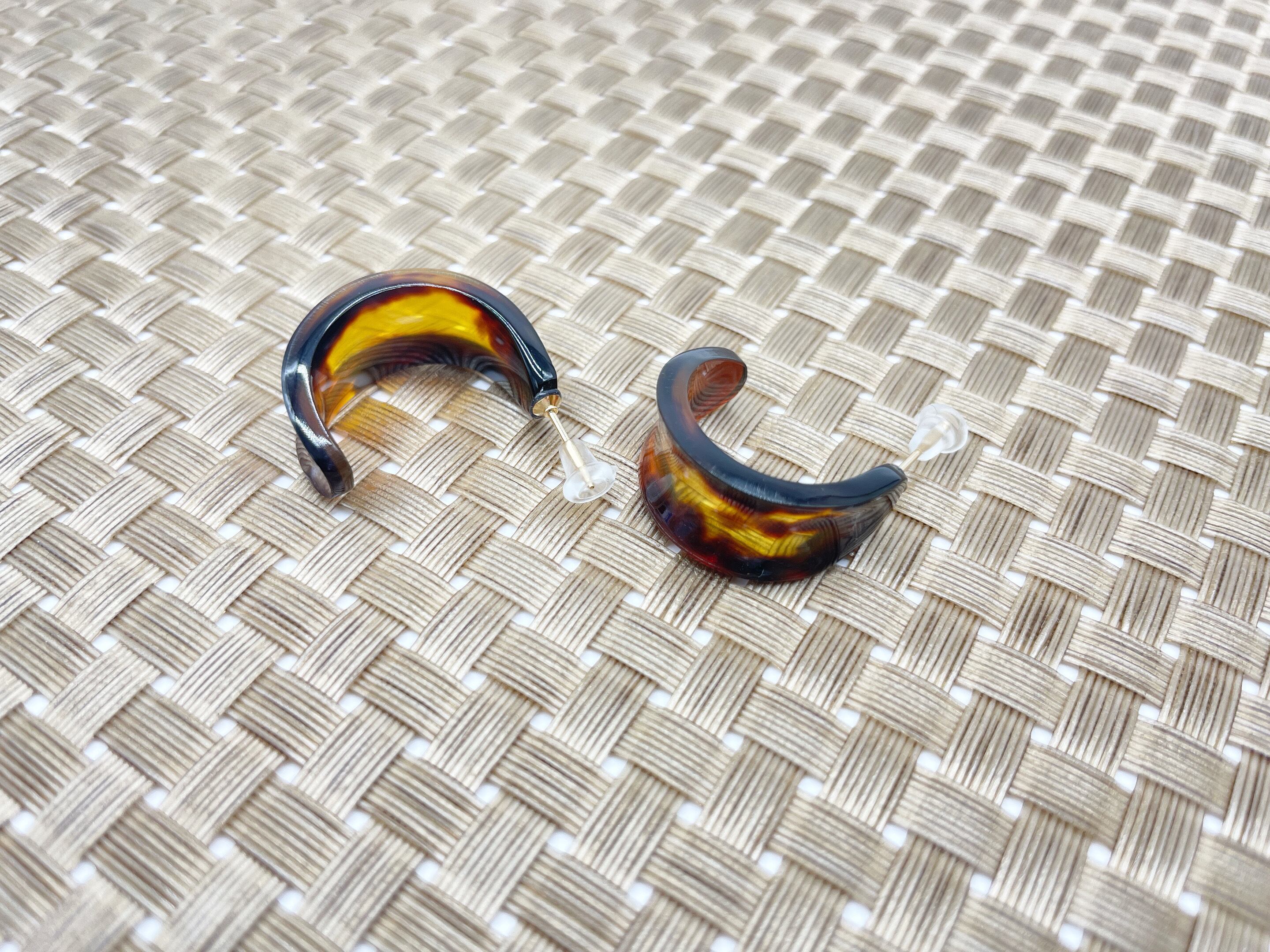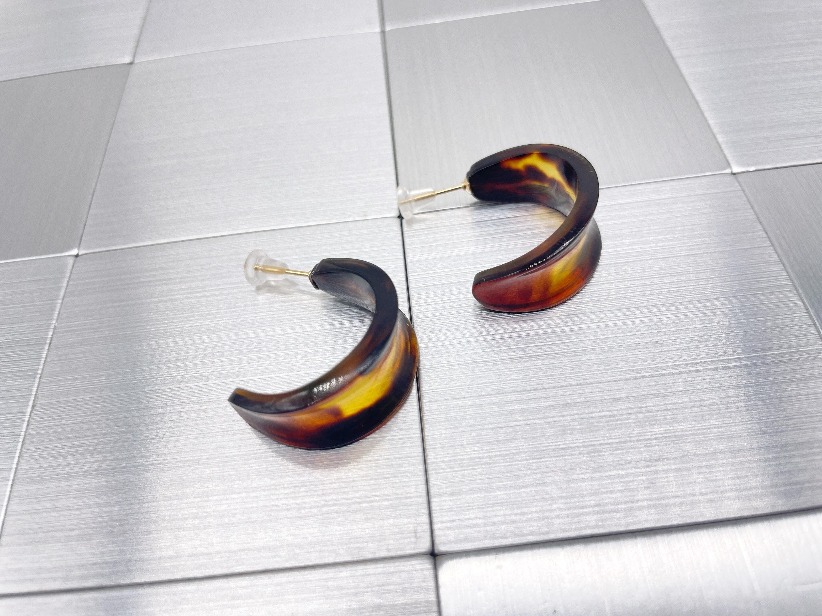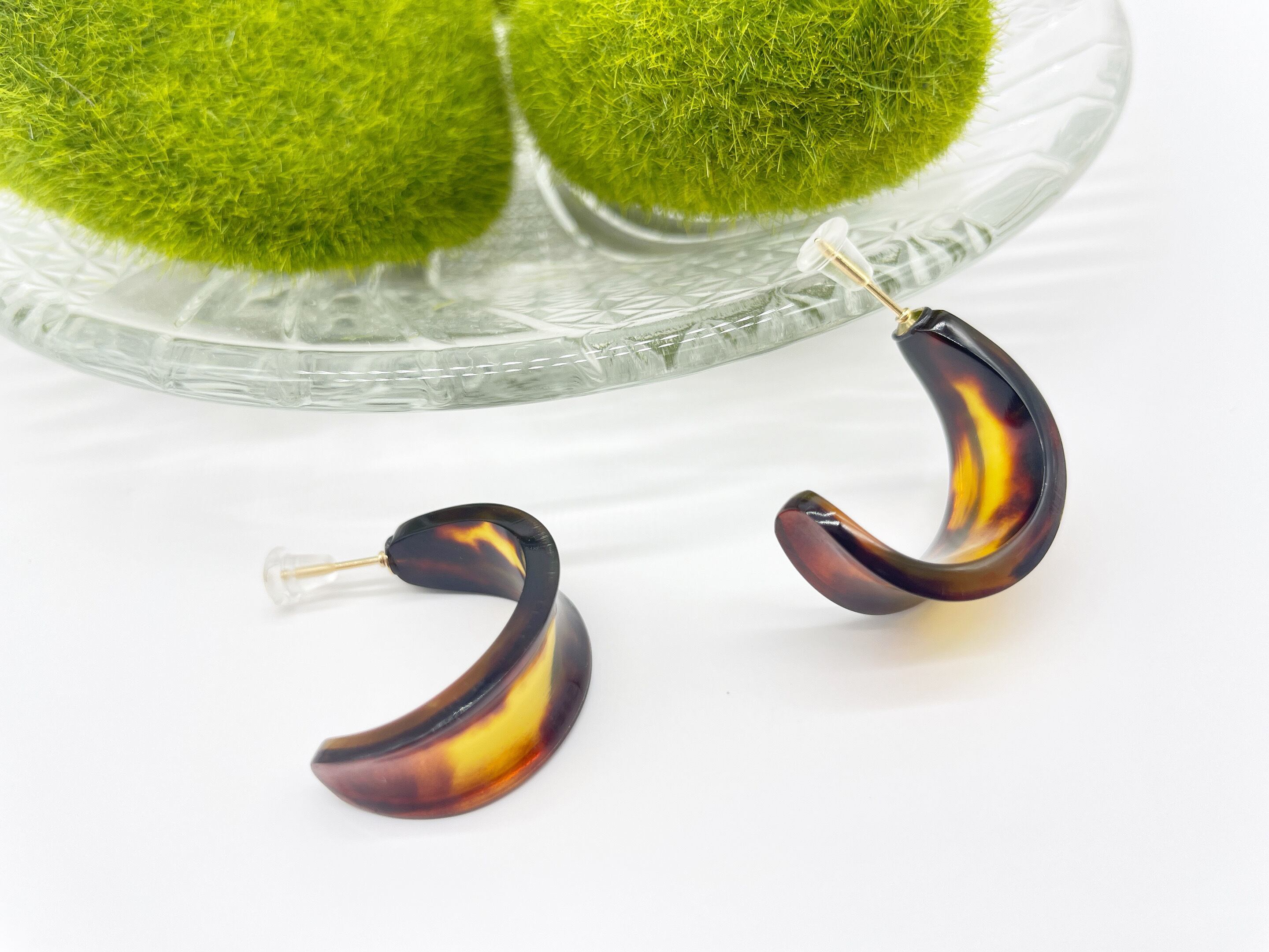 美しいグラデーションが魅力の本べっ甲を使用した、三日月形デザインのピアス。べっ甲特有の自然な模様と艶やかな光沢が、耳元に上品な輝きを添えます。軽量で着け心地が良く、耐久性にも優れているため、日常使いはもちろん、フォーマルな場面でも活躍。シンプルながらも洗練されたフォルムが、和装・洋装問わず幅広いスタイルにマッチします。天然素材の温もりと職人の丁寧な仕上げが感じられる、大人のためのアクセサリーです。金具はサージカルチタンのニッケルフリーを使用しているのでアレルギーの方にも安心してご使用頂けます。耳元に、自然が描く優美なグラデーションを。●べっ甲はとても軽いためお気軽にお付けいただけます。商品はこちらの梱包にて大切に発送致します。天然素材の為、色目やサイズ感は多少異なる場合がございます。※べっ甲及び琥珀等の天然素材はすべて本物です。通常希望小売価格¥21,000