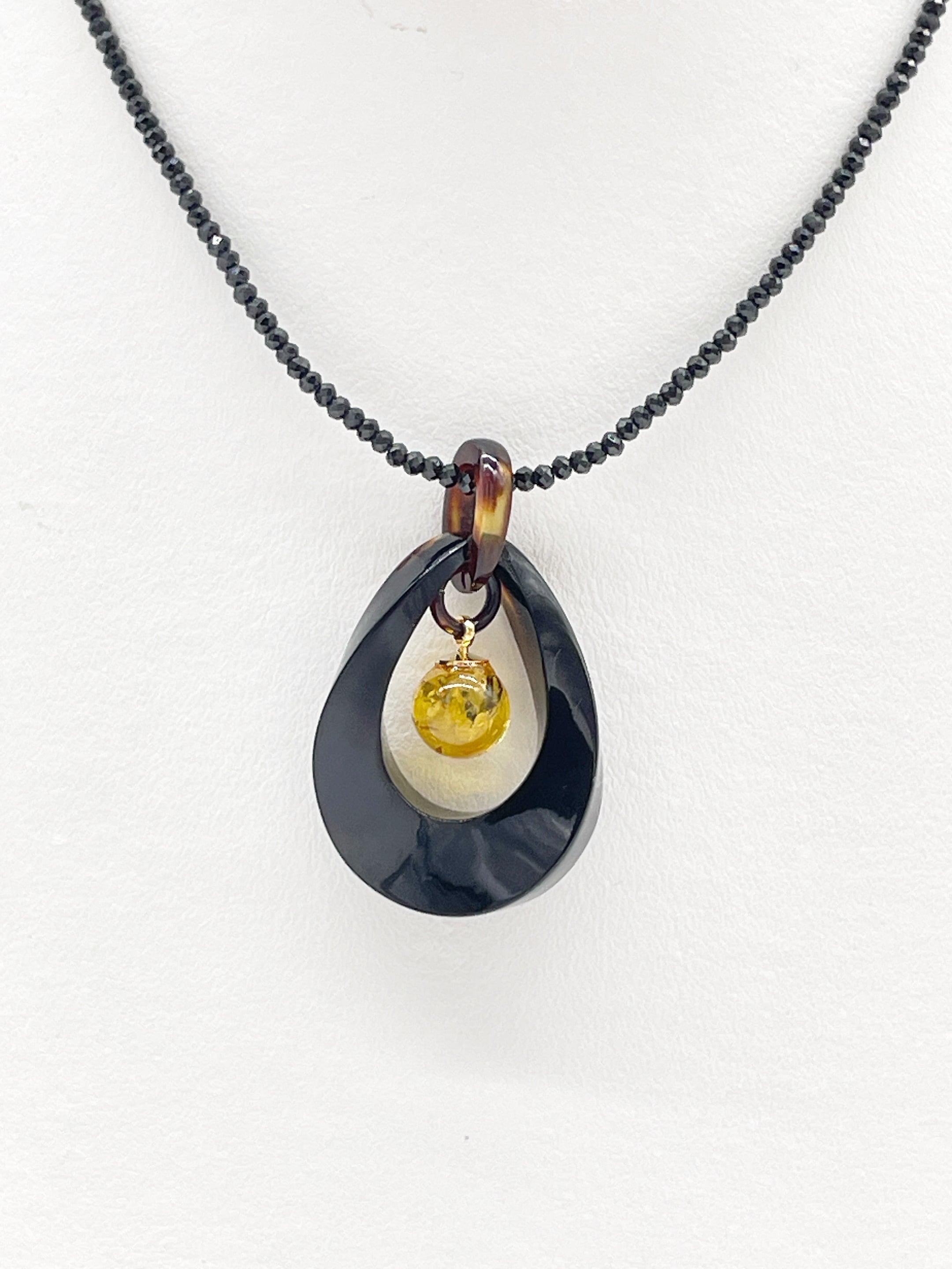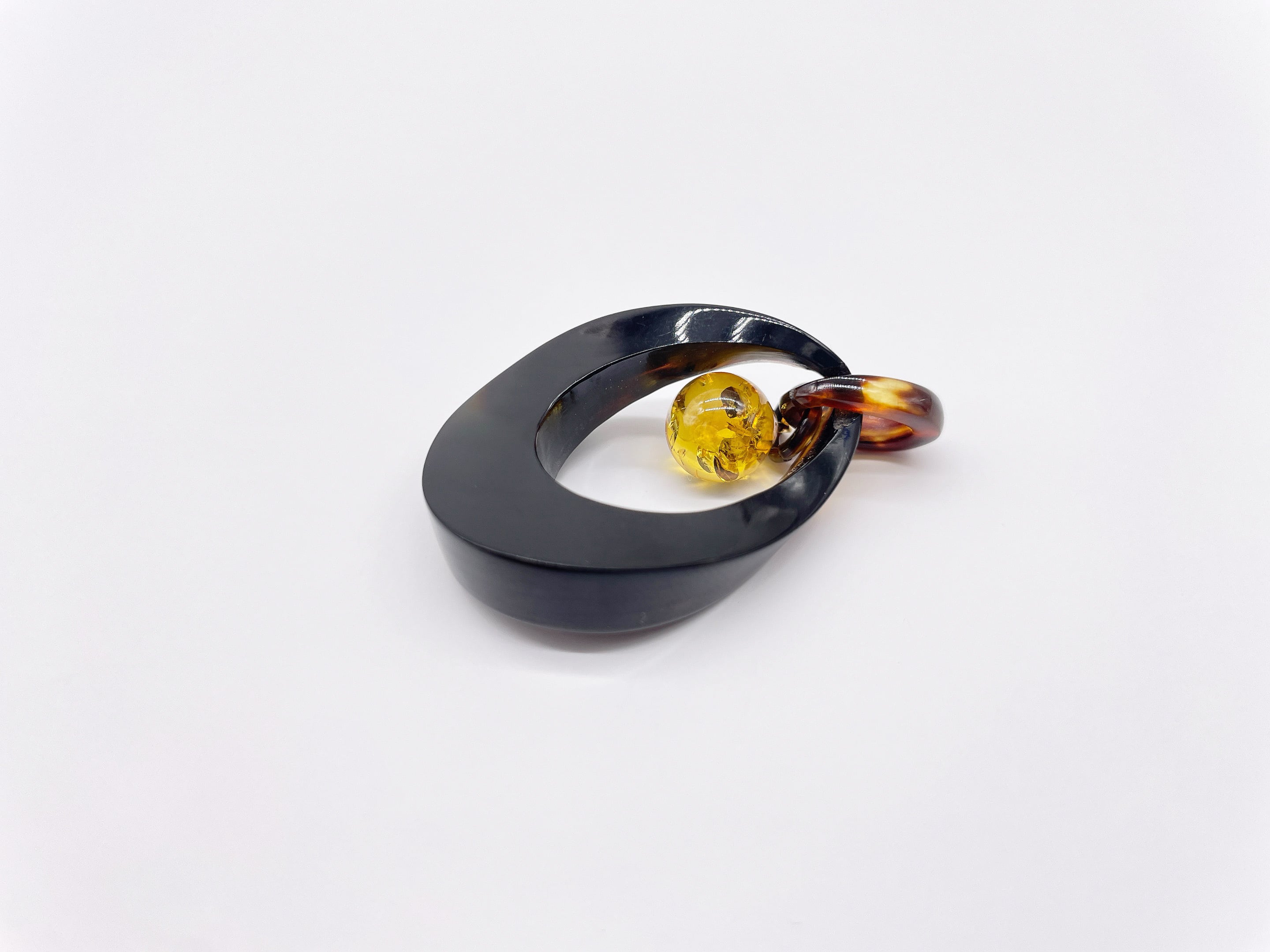 ●サイズ タテ約4.3cm×ヨコ約2.5cm(バチカン含む) ●説明 本べっ甲 バラフ(背甲)使用 本琥珀(バルティックアンバー)使用 伝統と自然美が融合した、上質なペンダント。深みのある艶やかな本べっ甲のオーバル型にひねりを加えたデザインベースに、美しいグリッター(内包物)が入っている、温かみのある本琥珀(バルティックアンバー)丸玉をあしらったデザインが特徴です。べっ甲の落ち着いた色合いと、琥珀の透明感ある輝きが絶妙なコントラストを生み出し、胸元に上品なアクセントを添えます。一点一点手作業で仕上げられたこのペンダントは、フォーマルにもカジュアルにも合わせやすく、長くご愛用いただける逸品です。自然素材ならではの個性と、クラシカルな美しさをぜひお楽しみください。べっ甲はとても軽いため重さを感じず疲れにくいです。こちらの金メッキの付属チェーンはサービスでお付けしておりますが、お手持ちのチェーンなどに通してもお使い頂ける商品です。画像にあるスピネルチェーン(別売り)と合わせて頂くと、より豪華な仕上がりになります。この機会に本物のべっ甲の良さを是非お試しください。この特別なペンダントが、あなたの魅力をそっと引き立てます。商品はこちらの梱包にて大切に発送致します。天然素材の為、色目やサイズ感は多少異なる場合がございます。※べっ甲及び琥珀等の天然素材はすべて本物です。通常希望小売価格¥24,000