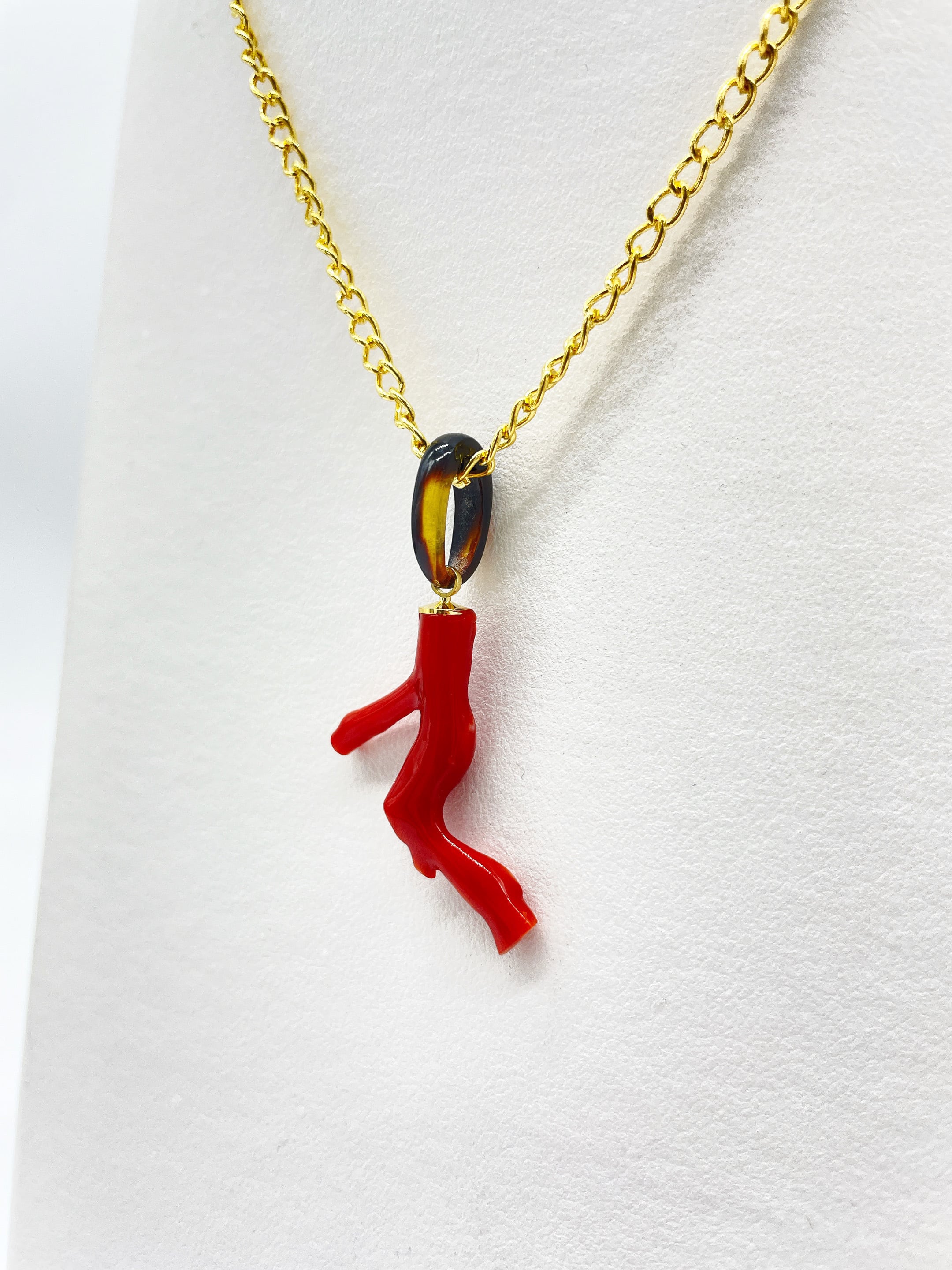 ●サイズ タテ約4.8cm×ヨコ約2.5cm(バチカン含む) ●説明 本べっ甲 バラフ(背甲)使用 本珊瑚使用 自然の恵みが織りなす、気品あるジュエリー。艶やかな本べっ甲のバチカンループに、鮮やかな赤色が美しい本珊瑚をあしらったペンダントは、和の趣とモダンな感性が融合した逸品です。赤口の枝珊瑚が、生命力と個性を感じさせ、べっ甲の深みある色合いが全体を上品に引き締めます。熟練の職人によって丁寧に仕上げられたこのペンダントは、日常使いはもちろん、特別な日の装いにもぴったり。べっ甲はとても軽いため重さを感じず疲れにくいです。こちらの金メッキの付属チェーンはサービスでお付けしておりますが、お手持ちのチェーンなどに通してもお使い頂ける商品です。画像にあるスピネルチェーン(別売り)と合わせて頂くと、より豪華な仕上がりになります。この機会に本物のべっ甲の良さを是非お試しください。このペンダントが、日々の装いに華やぎを添えます。商品はこちらの梱包にて大切に発送致します。天然素材の為、色目やサイズ感は多少異なる場合がございます。※べっ甲及び琥珀等の天然素材はすべて本物です。通常希望小売価格¥24,000