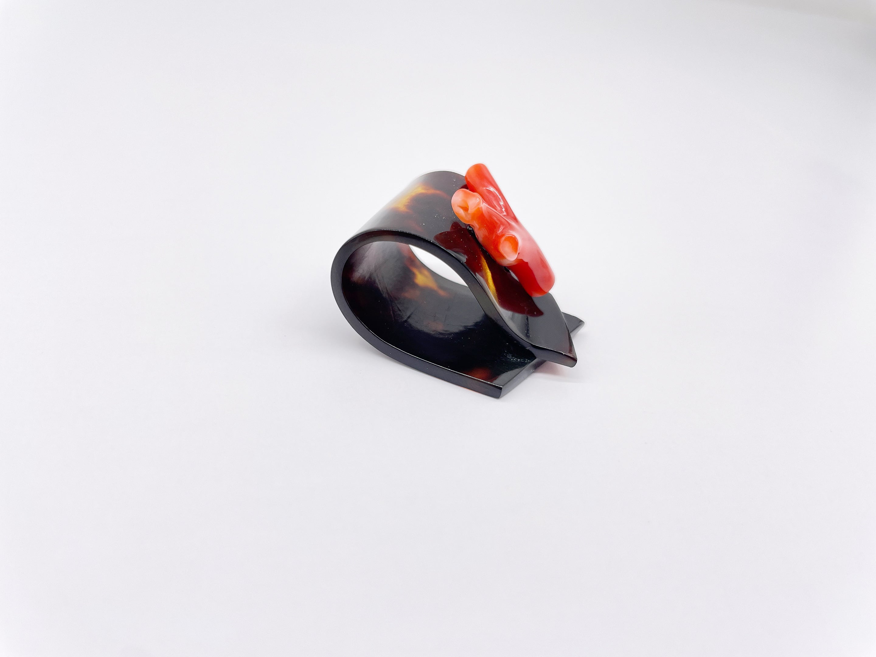 ●サイズ タテ約3.2cm×ヨコ約2.7cm ●説明 本べっ甲 バラフ(背甲)使用 本珊瑚使用 自然が育んだ素材の美しさを、洗練されたデザインで表現した逸品。艶やかな黒と茶の模様が美しい本べっ甲に、鮮烈な赤色が印象的な本珊瑚を組み合わせたペンダントは、和の伝統とモダンな感性が見事に融合しています。クルリと折り曲げられたデザインはペンダントトップまたは帯留めとしても使用いただけます、洋装、和装のツーウェイで使用できる便利アイテム!べっ甲の柔らかな曲線と、枝状の自然なフォルムを持つ珊瑚が織りなすコントラストは、胸元に上品な存在感を与えます。一点一点、職人の手によって丁寧に仕上げられたこのペンダントは、フォーマルな場面はもちろん、日常の装いにも華を添えるアクセントとして活躍します。べっ甲はとても軽いため重さを感じず疲れにくいです。こちらの金メッキの付属チェーンはサービスでお付けしておりますが、お手持ちのチェーンなどに通してもお使い頂ける商品です。画像にあるスピネルチェーン(別売り)と合わせて頂くと、より豪華な仕上がりになります。この機会に本物のべっ甲の良さを是非お試しください。自然素材ならではの個性と、永く愛されるクラシックな美しさをぜひご堪能ください。商品はこちらの梱包にて大切に発送致します。天然素材の為、色目やサイズ感は多少異なる場合がございます。※べっ甲及び琥珀等の天然素材はすべて本物です。通常希望小売価格¥23,000