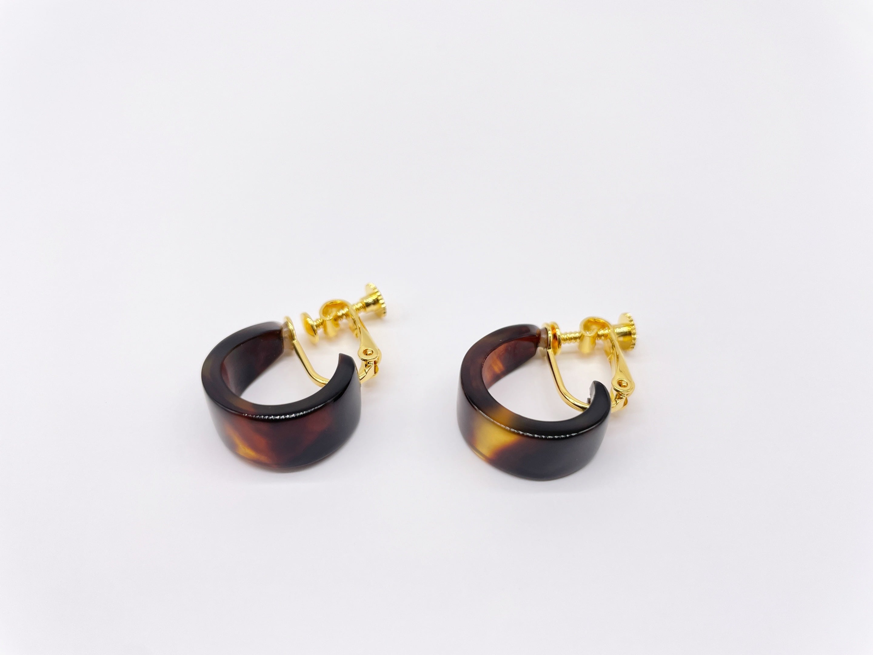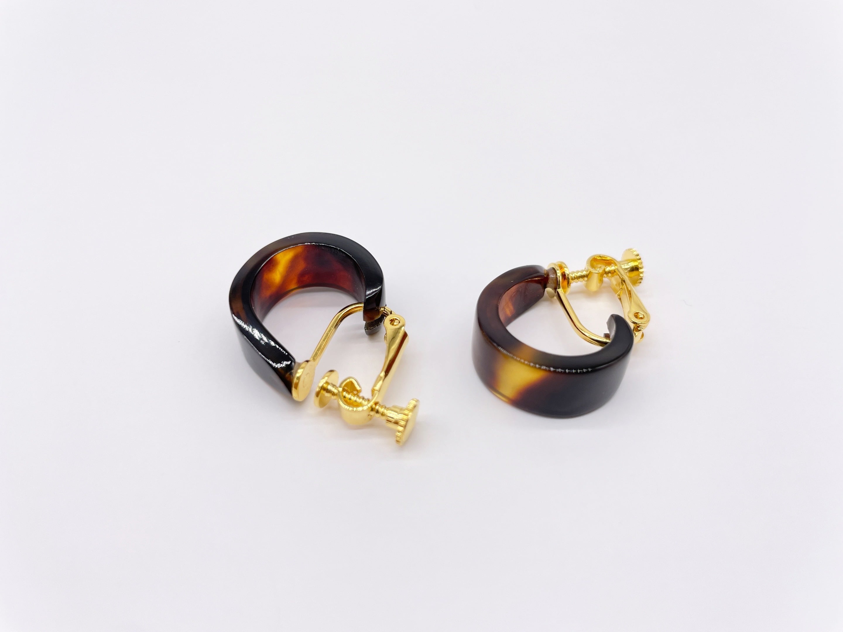 ●サイズ タテ約1.8cm×ヨコ幅約0.8cm ●説明 本べっ甲 バラフ甲(背甲)使用 金具 金メッキばね式使用 上質な本べっ甲を贅沢に使用した、クラシカルで上品なイヤリングです。深みのあるブラウンと黄金色の美しいグラデーションが、自然素材ならではの温かみを演出します。デザインは、程よいボリューム感のある半円形フープ型のC型イヤリング。丸みを帯びた立体的なフォルムが、顔まわりに柔らかさと高級感をプラスします。ネジバネ式のイヤリングなので、ピアスホールがない方でも安心してお使いいただけます。べっ甲はとても軽いため重さを感じず疲れにくいです。ピアスへの加工も無償でさせて頂きますのでメール、メッセージでお伝えください(但し金具はニッケルフリーのアレルギー対応チタンの直結タイプとなります)。自然な艶で、耳元をさりげなくアップデート。商品はこちらの梱包にて大切に発送致します。天然素材の為、色目やサイズ感は多少異なる場合がございます。※べっ甲及び琥珀等の天然素材はすべて本物です。通常希望小売価格¥14,000