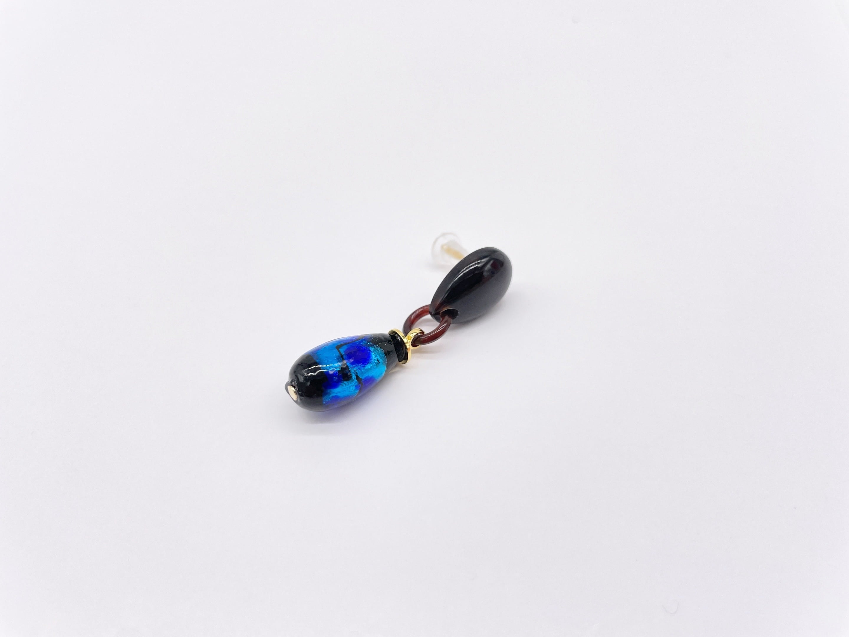 ●サイズ 縦約3.6cm(しずく型全長を含む)×横約0.8cm ●説明 本べっ甲 バラフ(背甲)使用 琉球ガラス(蛍ガラス)使用 金具 サージカルチタン(チタンメッキ)使用 直結タイプ キャッチシリコンゴム使用 希少な天然素材「本べっ甲」と、沖縄の伝統工芸「琉球ガラス(蛍ガラス)」を組み合わせた、唯一無二のピアス。深みのあるべっ甲の艶と、蛍ガラス特有の幻想的なブルーの輝きが、耳元に上質な彩りを添えます。光の角度によって変化するガラスの煌めきは、まるで海の中に差し込む光を閉じ込めたような美しさ。熟練職人による丁寧な仕上げで、特別な日の装いにもふさわしい逸品です。金具はサージカルチタンのニッケルフリーを使用しているのでアレルギーの方にも安心してご使用頂けます。海の輝きと自然の艶を耳元に。本べっ甲×蛍ガラスピアスで、特別な瞬間を。●べっ甲はとても軽いためお気軽にお付けいただけます。商品はこちらの梱包にて大切に発送致します。天然素材の為、色目やサイズ感は多少異なる場合がございます。※べっ甲及び琥珀等の天然素材はすべて本物です。通常希望小売価格¥15,000