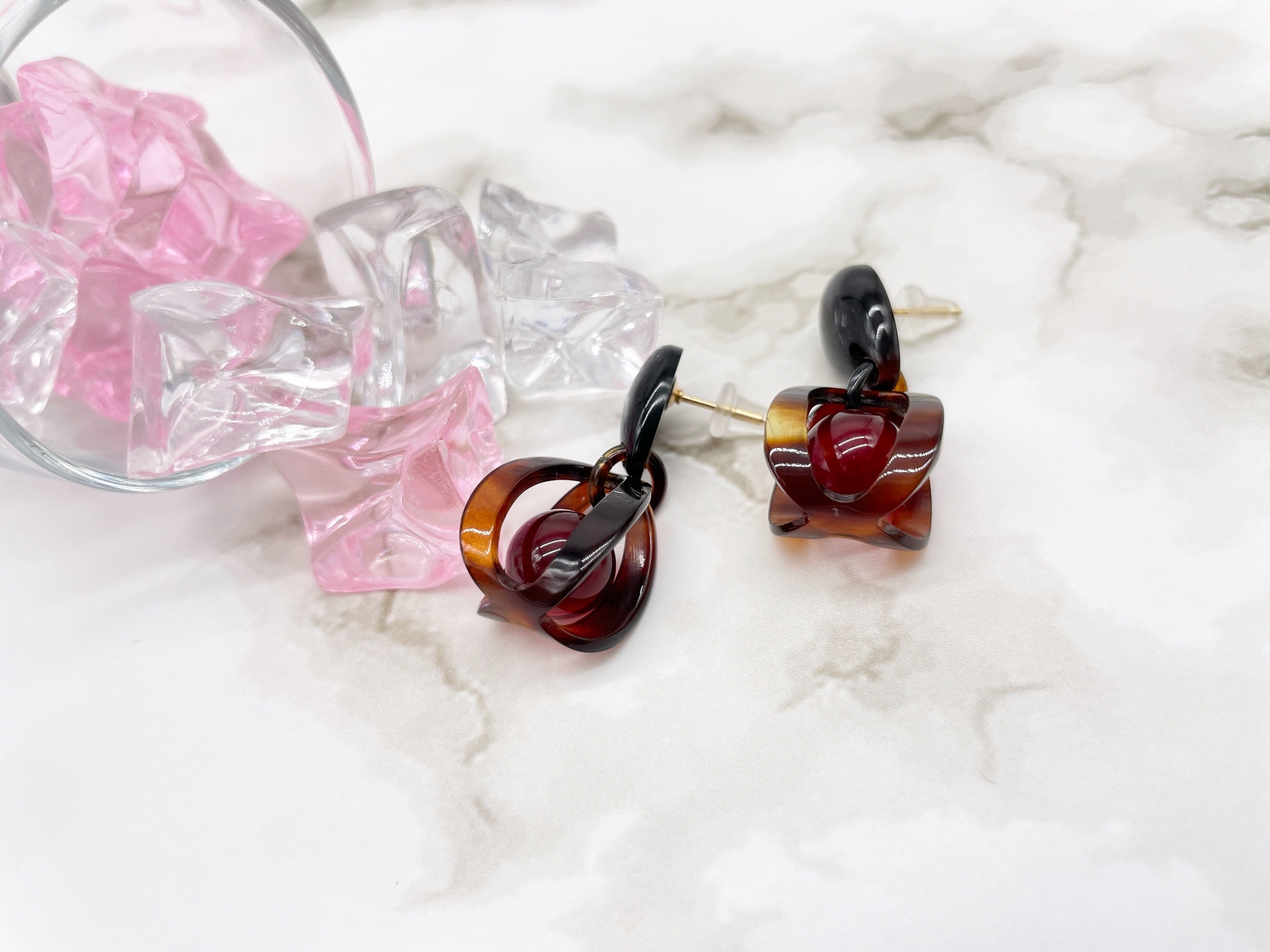本べっ甲 のしなやかな曲線が織りなす立体的なカゴ型フォルムに、レッドアンバーの琥珀が鮮やかなアクセントを添えるデザインピアス。光を受けてべっ甲 の艶と琥珀の透明感が美しく輝き、耳元に軽やかな動きを演出します。立体的なべっ甲 パーツにより、どの角度から見ても美しい表情を楽しめる逸品です。シンプルな装いにも存在感をプラスする、モダンで洗練されたデザインです。金具はサージカルチタンのニッケルフリーを使用しているのでアレルギーの方にも安心してご使用頂けます。自然が描く艶と赤。本べっ甲 ×レッドアンバー琥珀ピアスで、耳元に特別な輝きを。●べっ甲 はとても軽いためお気軽にお付けいただけます。商品はこちらの梱包にて大切に発送致します。天然素材の為、色目やサイズ感は多少異なる場合がございます。※べっ甲 及び琥珀等の天然素材はすべて本物です。通常希望小売価格¥23000