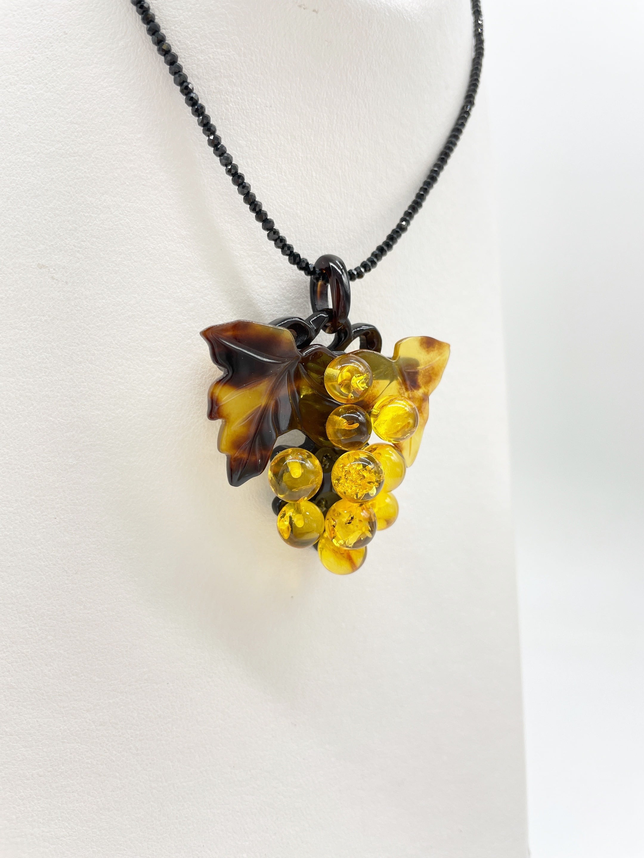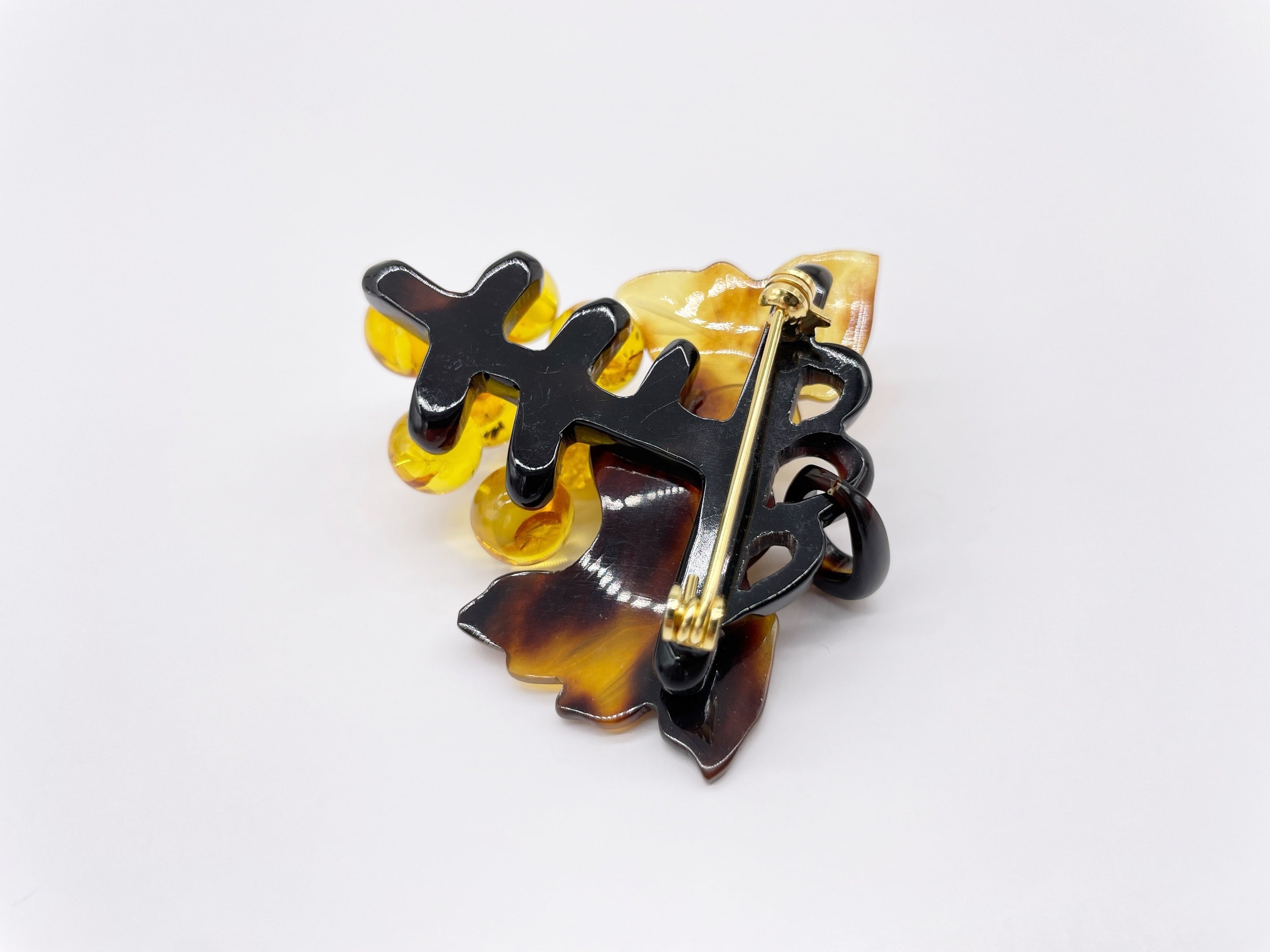 ●サイズ タテ約5.7cm(バチカン含む)×ヨコ約5.1cm ●説明 本べっ甲 バラフ(背甲)使用 本琥珀(バルティックアンバー)使用 希少な天然素材「本べっ甲」と「本琥珀(バルティックアンバー)」を贅沢に組み合わせた、華やかなブドウをモチーフにしたブローチペンダント。深みのあるべっ甲の艶やかな葉モチーフと、鮮やかな琥珀の丸玉が織りなすデザインは、自然の美しさをそのまま閉じ込めたような存在感。光を受けるたびにべっ甲独特のマーブル斑模様が柔らかく輝き、琥珀が透明感のある艶を放ちます。ブローチとしてジャケットやセーターなどに、またペンダントとしてネックレスに合わせても映える、2WAY仕様の逸品です。べっ甲はとても軽いためお洋服への負担も少なくお気軽にお使い頂けます。スピネルチェーン、べっ甲チェーン(別売り)と合わせて頂くと、より豪華な仕上がりになります。ブドウの葉と実の造形美を纏(まと)う。ブローチにもペンダントにもなる贅沢な逸品。商品はこちらの梱包にて大切に発送致します。天然素材の為、色目やサイズ感は多少異なる場合がございます。※べっ甲及び琥珀等の天然素材はすべて本物です。通常希望小売価格¥42,000