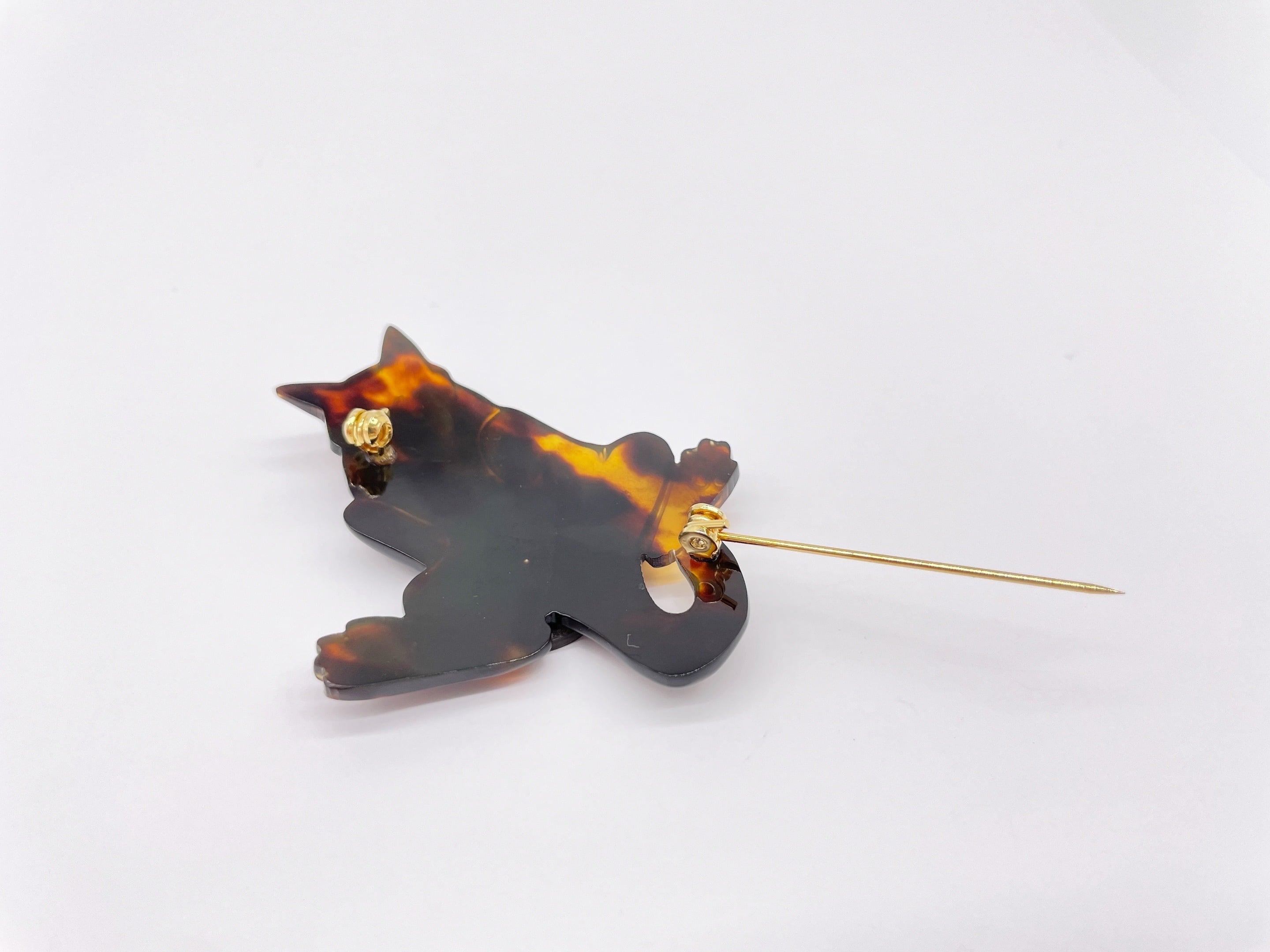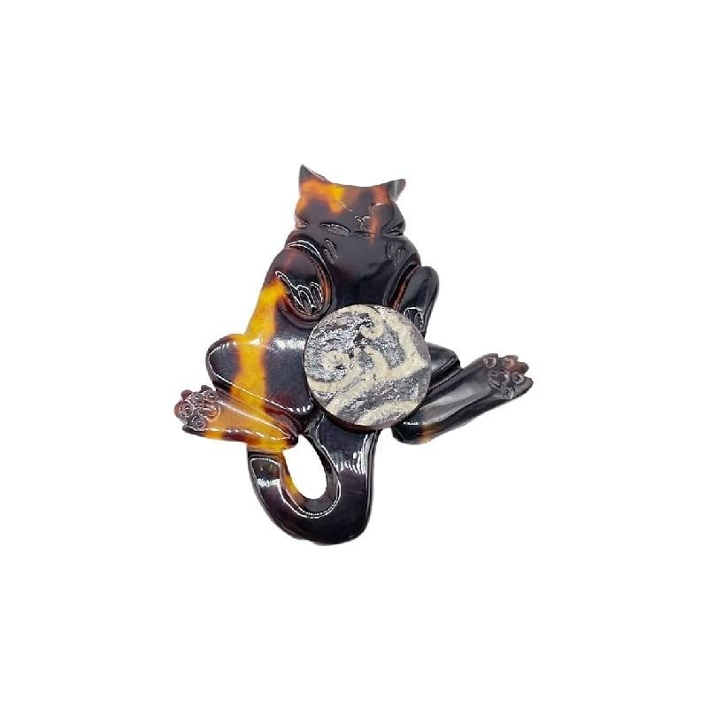●サイズ タテ約6.0cm×ヨコ約5.0cm ●説明 本べっ甲 バラフ(背甲)使用 本水目使用 希少な天然素材「本べっ甲」とその部位の「本水目」を組み合わせ、可愛いネコちゃんをモチーフにしたユニークなブローチ。べっ甲特有の深みある艶やかな模様に、本水目の自然な質感が加わり、遊び心と高級感を兼ね備えたデザインです。柔らかくしなやかなネコちゃんのフォルムを丁寧に彫刻し、肉球や尾の曲線まで繊細に表現。抱えた本水目の丸玉がアクセントとなり、立体感と個性を引き立てます。和装・洋装どちらにも映える、胸元に上質な存在感を添える逸品です。べっ甲はとても軽いためお洋服への負担も少なくお気軽にお使い頂けます。遊び心と上質をひとつに。ネコちゃんのモチーフブローチで、特別な装いを。商品はこちらの梱包にて大切に発送致します。天然素材の為、色目やサイズ感は多少異なる場合がございます。※べっ甲及び琥珀等の天然素材はすべて本物です。通常希望小売価格¥42,000