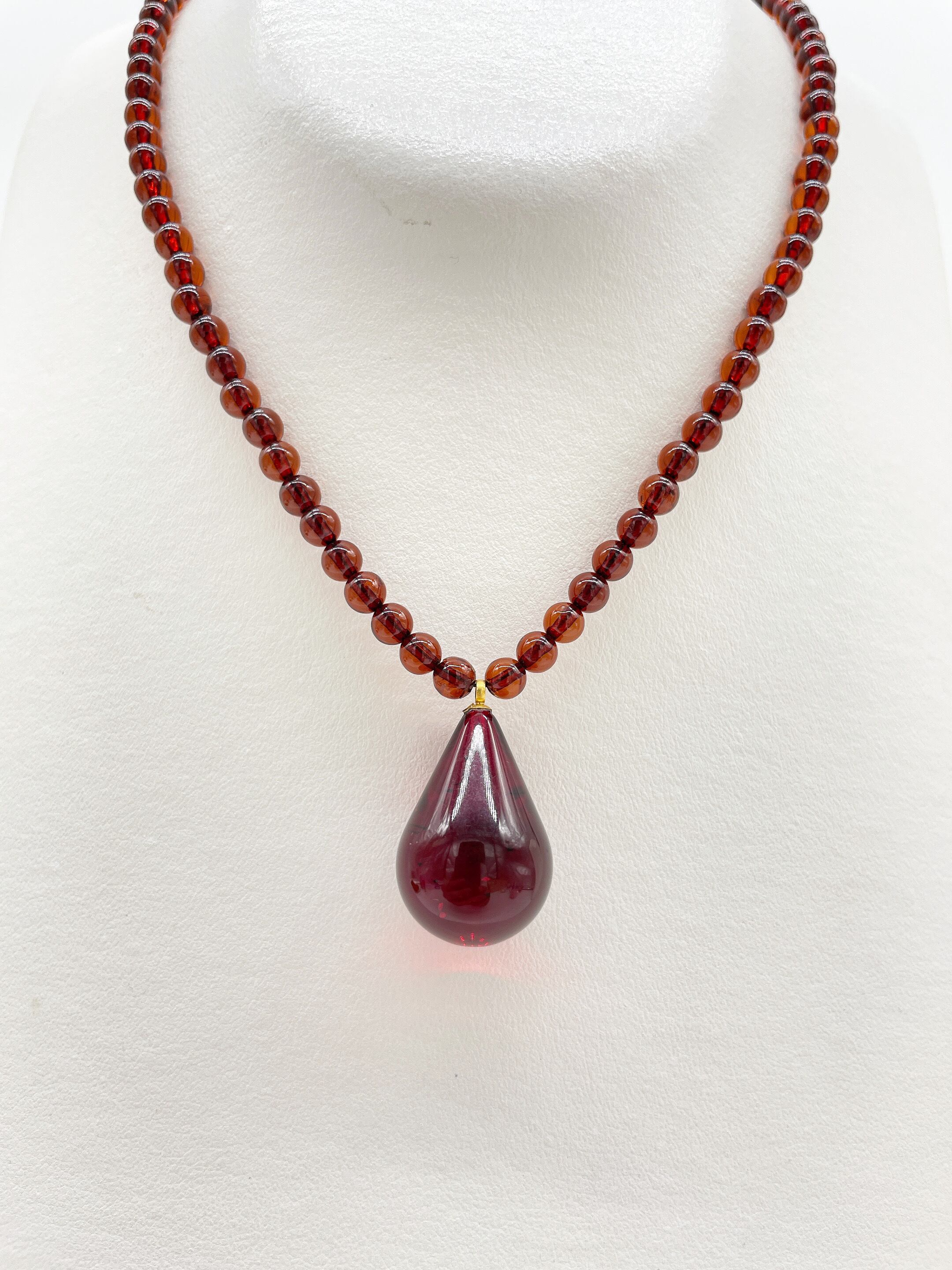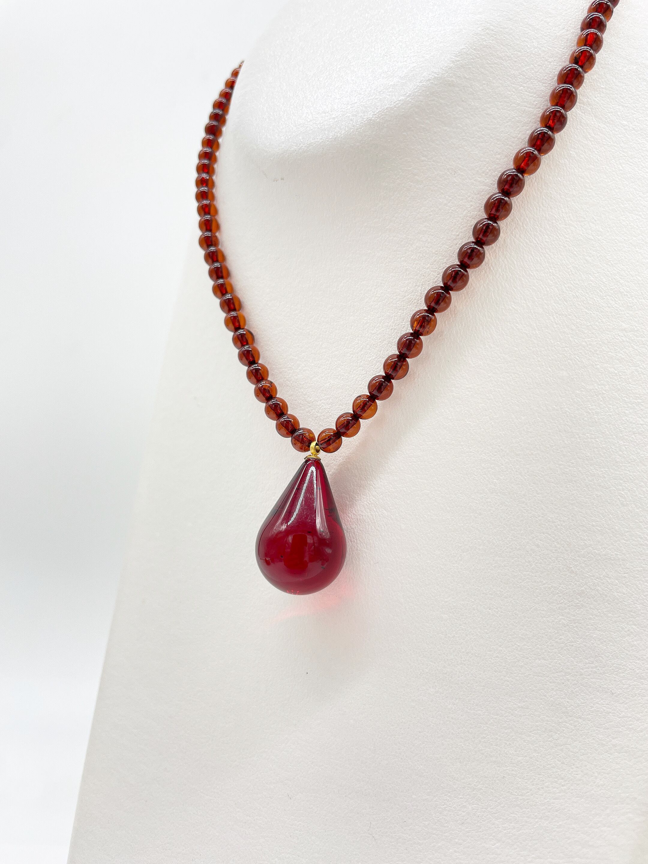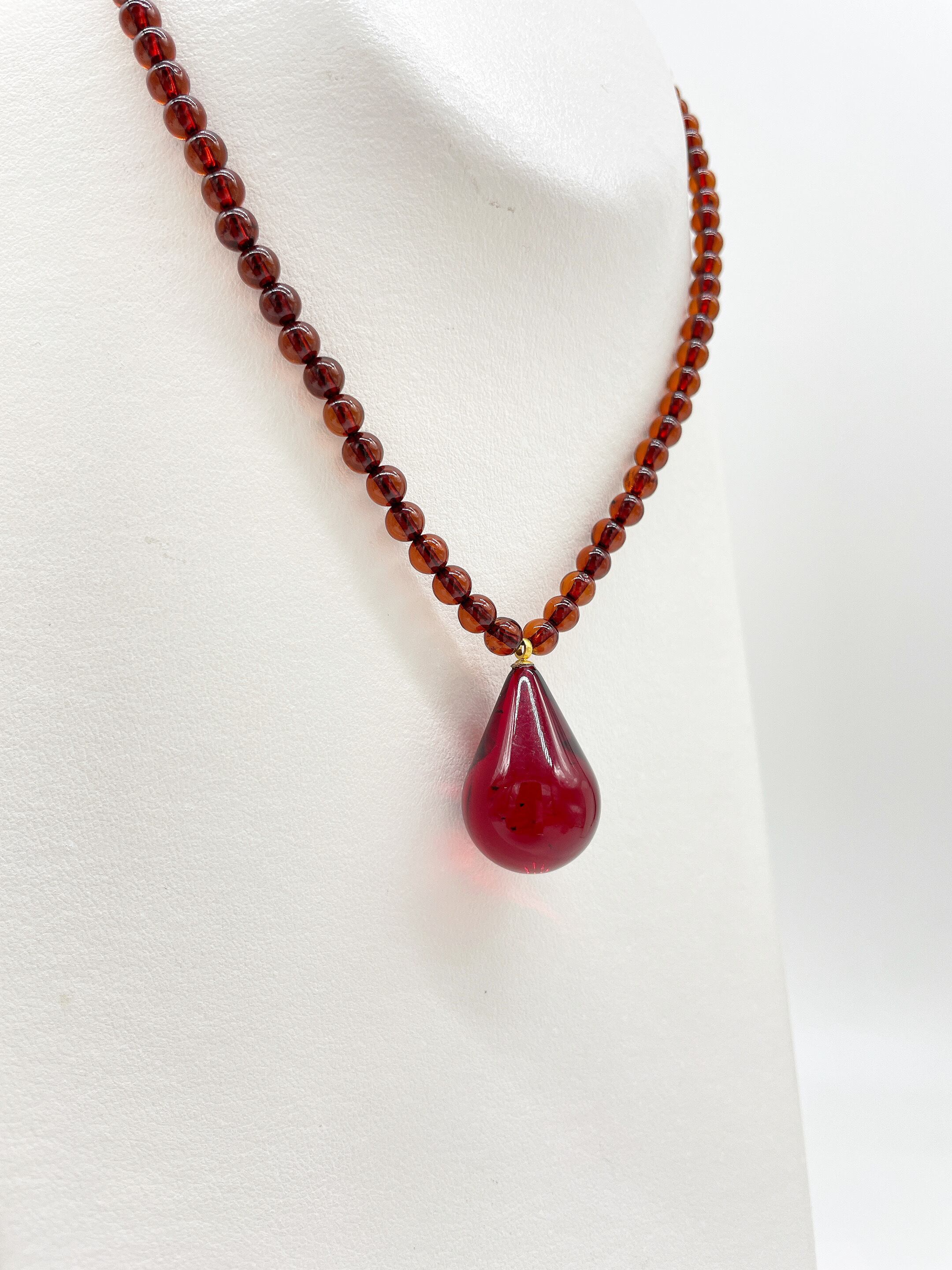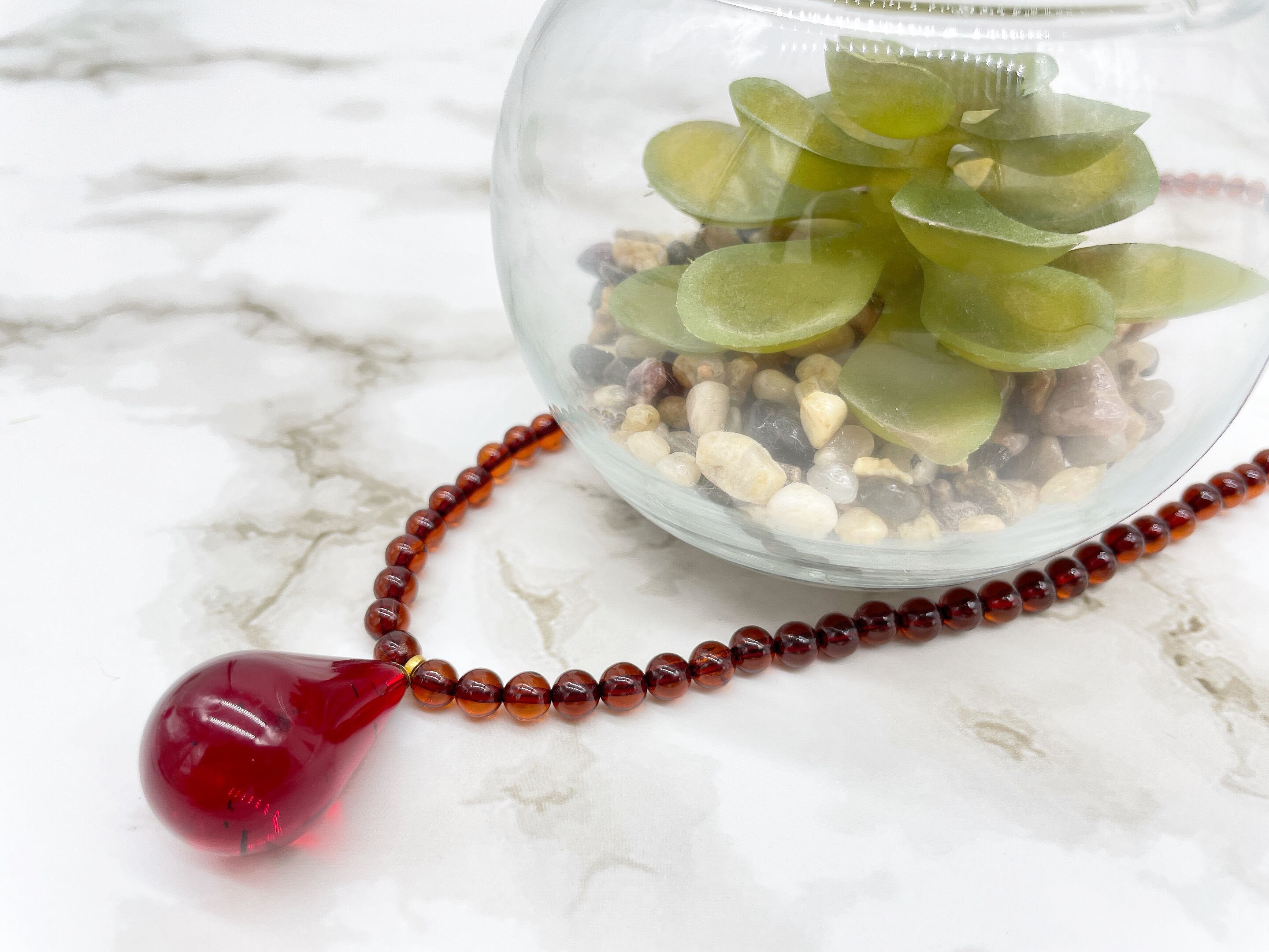 ●サイズ 全長約45.5cm(ペンダントトップ除く) ペンダントトップ(タテ約2.7cm×ヨコ約1.5cm) ●説明 本琥珀(レッドアンバー)使用 本琥珀(コニャックアンバー)使用 留め具 クラスプタイプ使用 深みのある赤色が印象的なレッドアンバーと、温かみのあるコニャックアンバーを組み合わせた、上品でクラシカルなネックレスです。トップには存在感のある大粒のレッドアンバー。透明感のある赤色は、光を受けるたびに艶やかに輝き、胸元に華やかなアクセントを添えます。チェーン部分には、温かみのあるコニャックアンバーの本琥珀が丁寧に連なり、クラシカルで落ち着いた雰囲気を演出できます。商品はこちらの梱包にて大切に発送致します。身に着けるたびに、時を超えたロマンを感じてください。天然素材の為、色目やサイズ感は多少異なる場合がございます。※べっ甲及び琥珀等の天然素材はすべて本物です。通常希望価格¥26,000