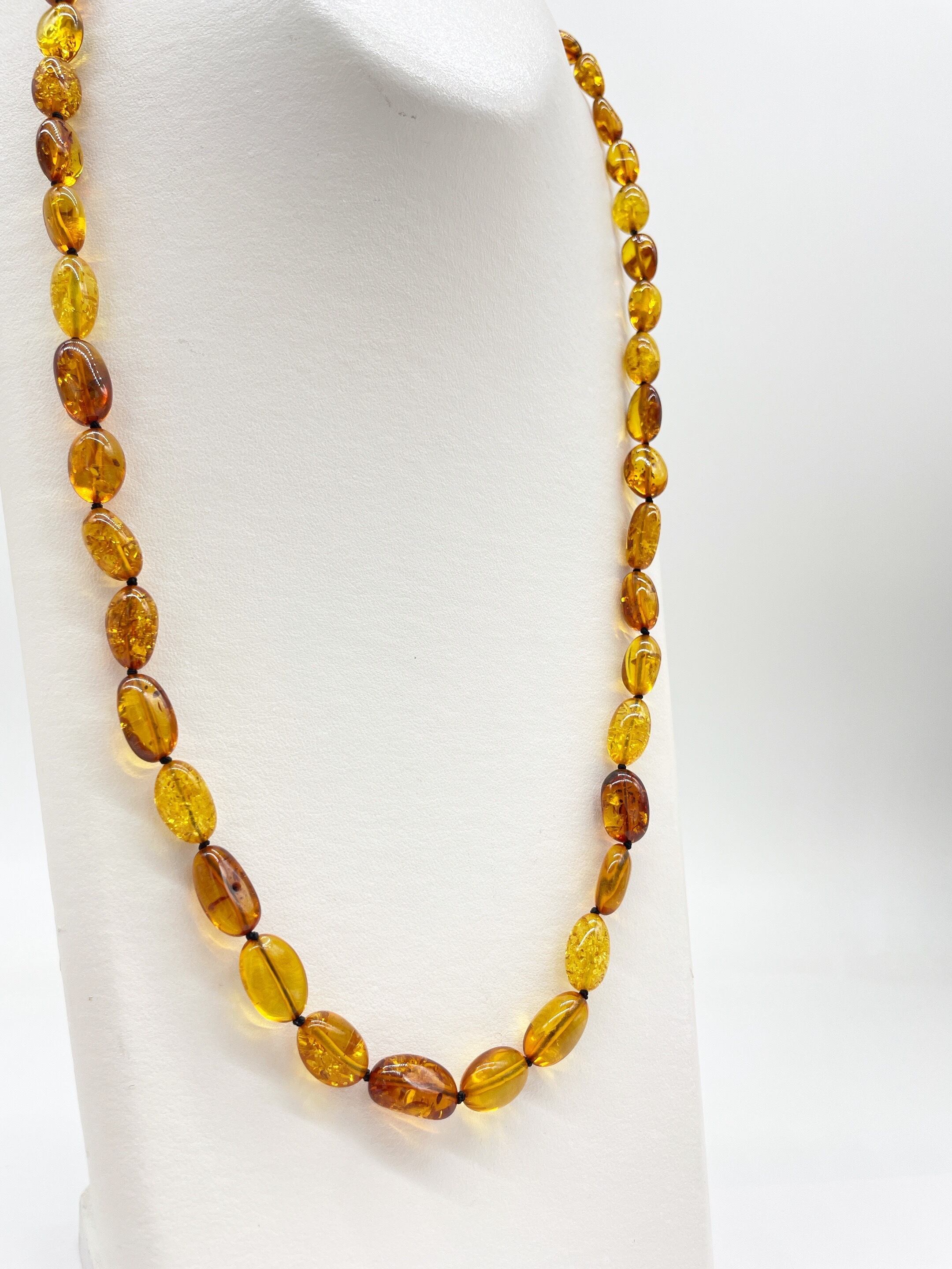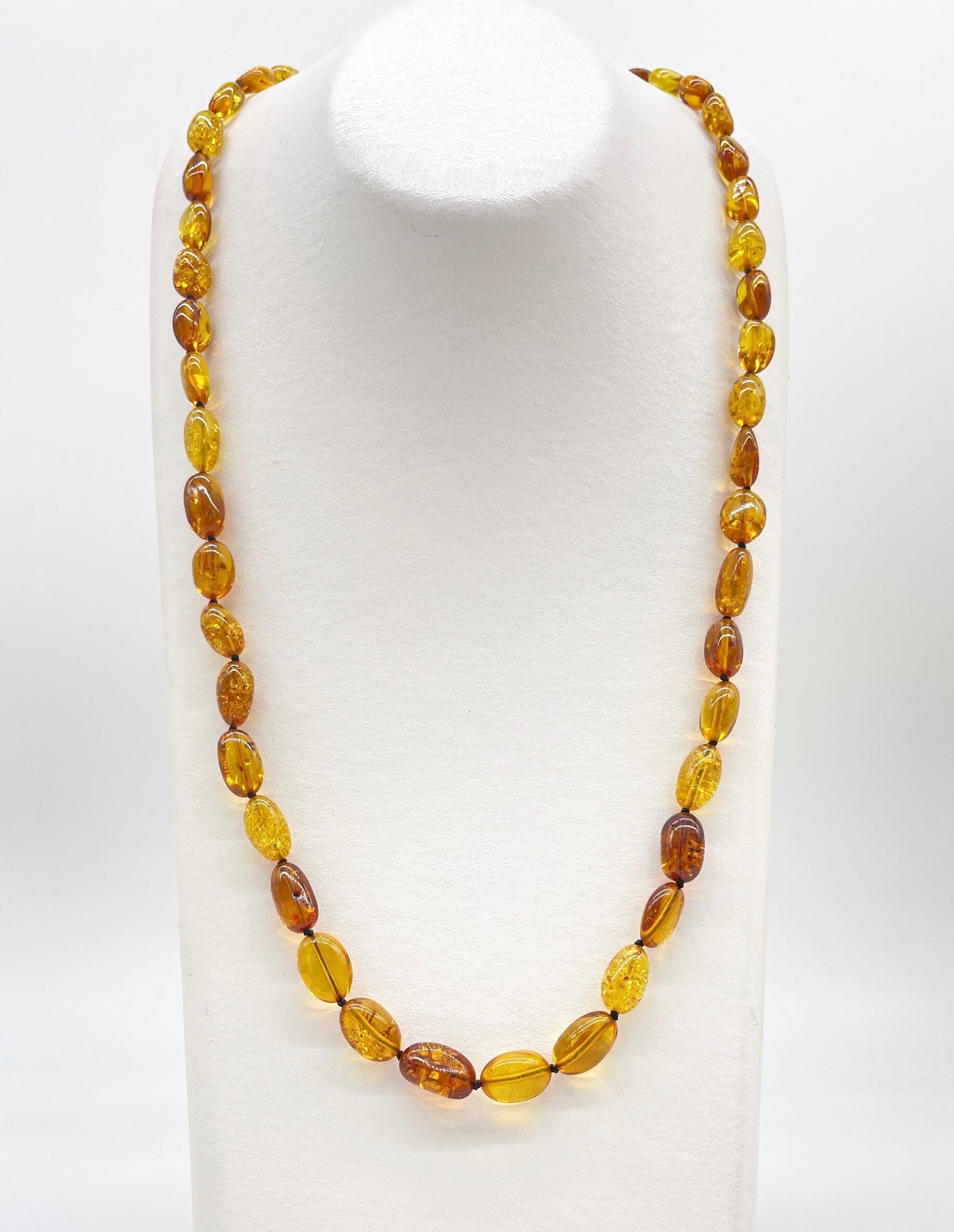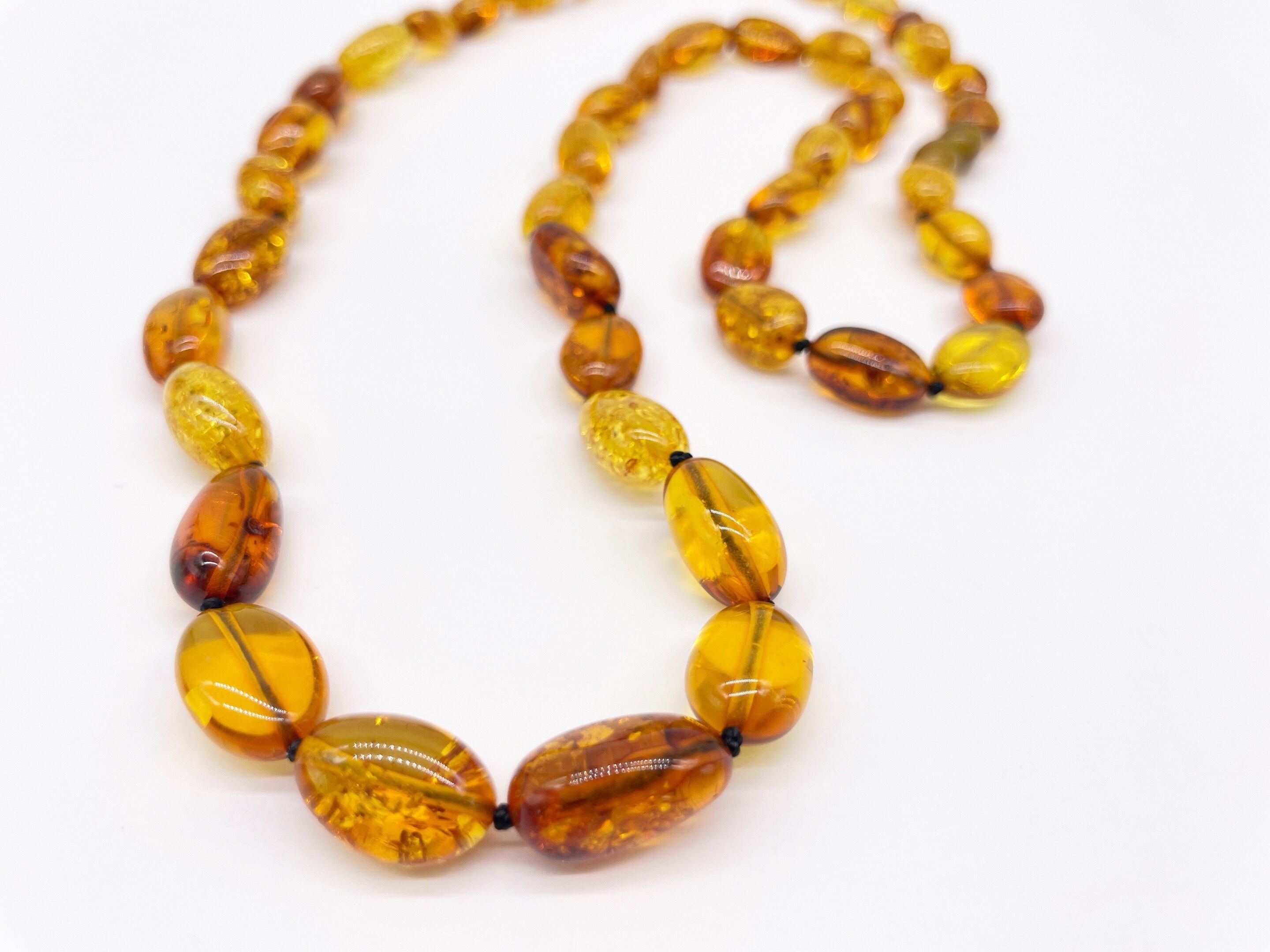 ●サイズ 全長約71cm ●説明 本琥珀(バルティックアンバー)使用 留め具 クラスプタイプ使用 世界的に評価される本琥珀「バルティックアンバー」を贅沢に使用したネックレスです。黄金色から深みのあるブラウンまでの自然なグラデーションが、胸元に温かみと上品さを添えます。楕円形の琥珀を中心に、大小の琥珀がリズミカルに並ぶことで、動きのあるデザインが生まれ、光を受けるたびに透明感と自然の模様が輝き、唯一無二の存在感を放ちます。天然琥珀ならではの軽やかな着け心地は、長時間の使用でも快適。フォーマルなシーンはもちろん、シンプルな装いに合わせるだけで、洗練されたアクセントを演出します。商品はこちらの梱包にて大切に発送致します。世界にひとつだけの美しさを、今あなたに。天然素材の為、色目やサイズ感は多少異なる場合がございます。※べっ甲及び琥珀等の天然素材はすべて本物です。通常希望価格¥46,000