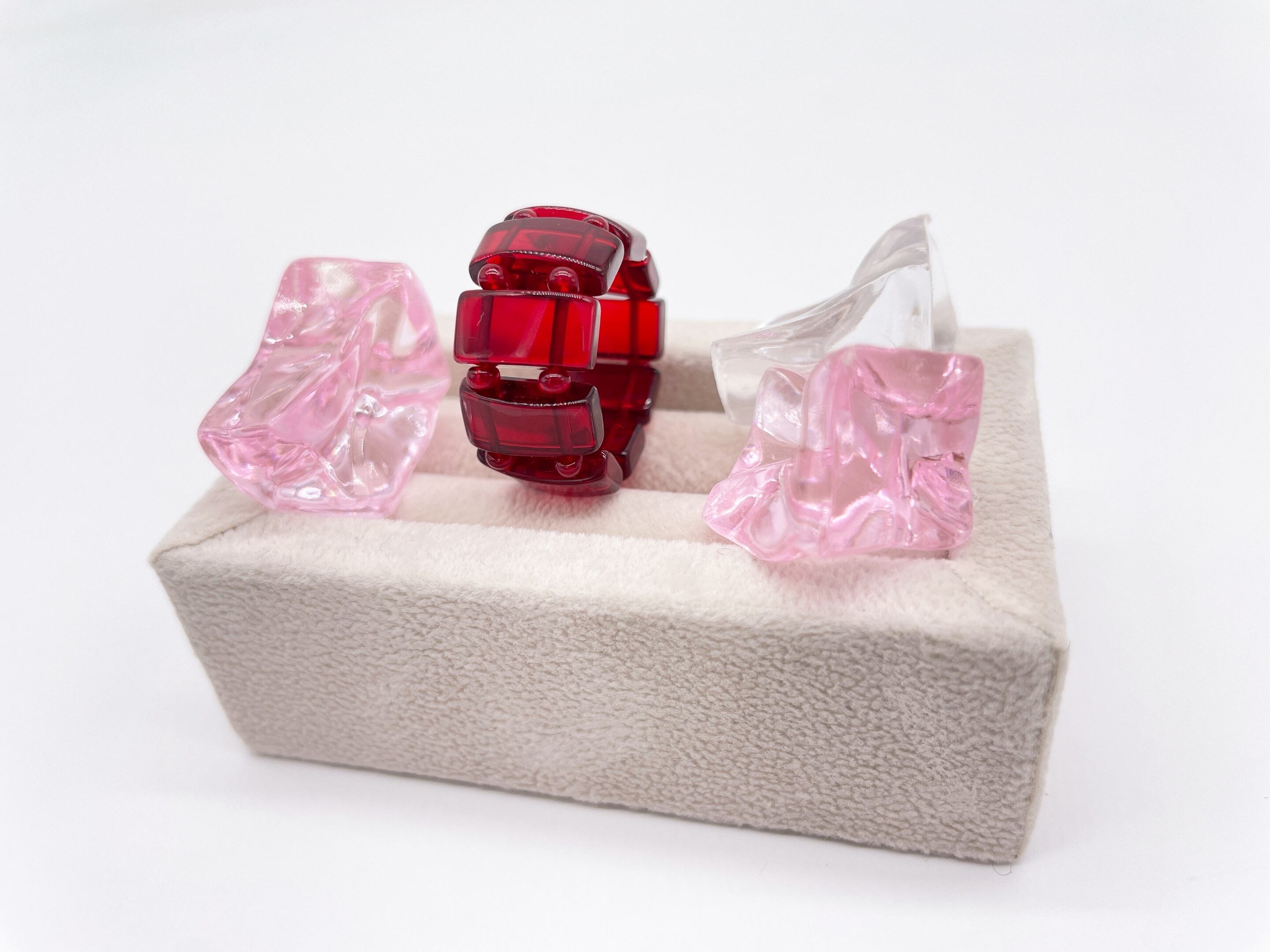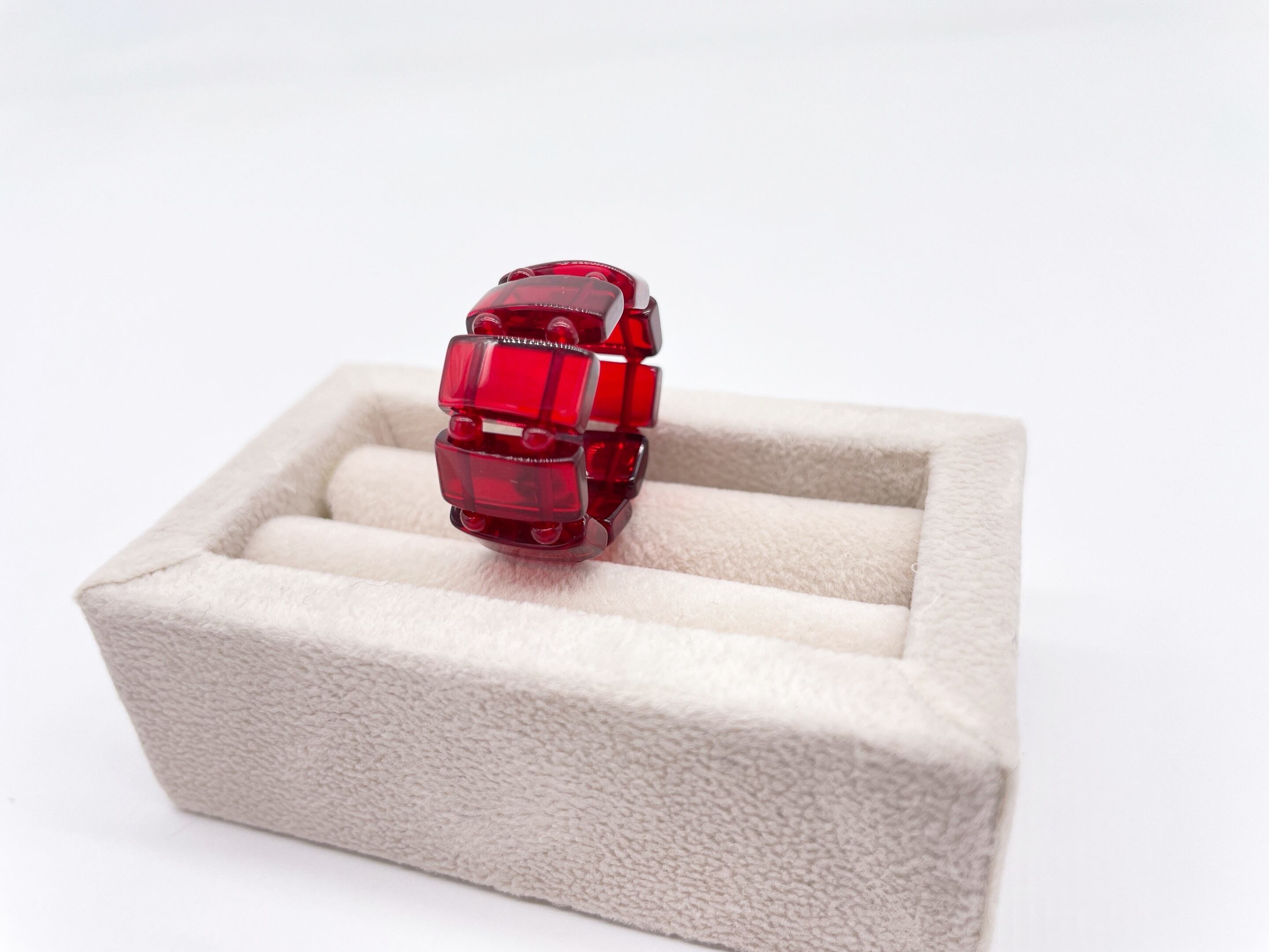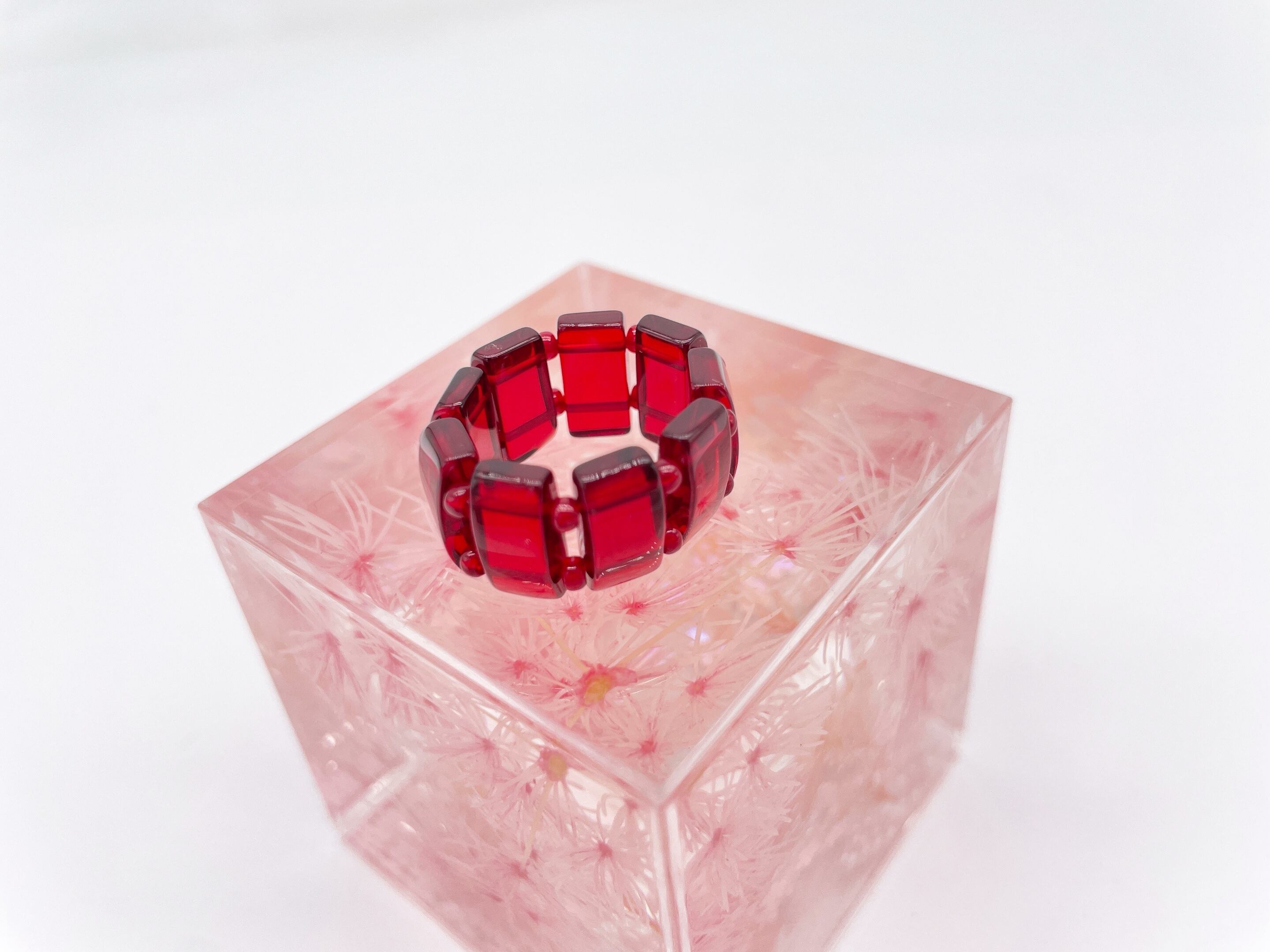 ●サイズ #11〜#13 (フリー)琥珀 幅約10ミリ ●説明 本琥珀(レッドアンバー)使用 シリコンゴム使用 燃えるような赤が印象的なレッドアンバーを贅沢にあしらったリング。透明感のある深紅の輝きは、光を受けるたびに鮮烈な存在感を放ち、指先にドラマティックな彩りを添えます。スクエアカットを連ねたデザインは、クラシックな美しさにモダンなエッセンスを加え、シンプルな装いにも華やぎをプラス!シリコンゴムを使用しているので伸縮性があり、指にやさしくフィットし、長時間の着用も快適。自然の力強さと洗練されたデザインが融合した逸品を、ぜひお楽しみください。本琥珀は天然素材の為、非常に付け心地が良いですしアレルギーの心配も無いので安心です。指先に、燃えるような赤の輝きを。商品はこちらの梱包にて大切に発送致します。天然素材の為、色目やサイズ感は多少異なる場合がございます。※べっ甲 及び琥珀等の天然素材はすべて本物です。希望小売価格\5,500