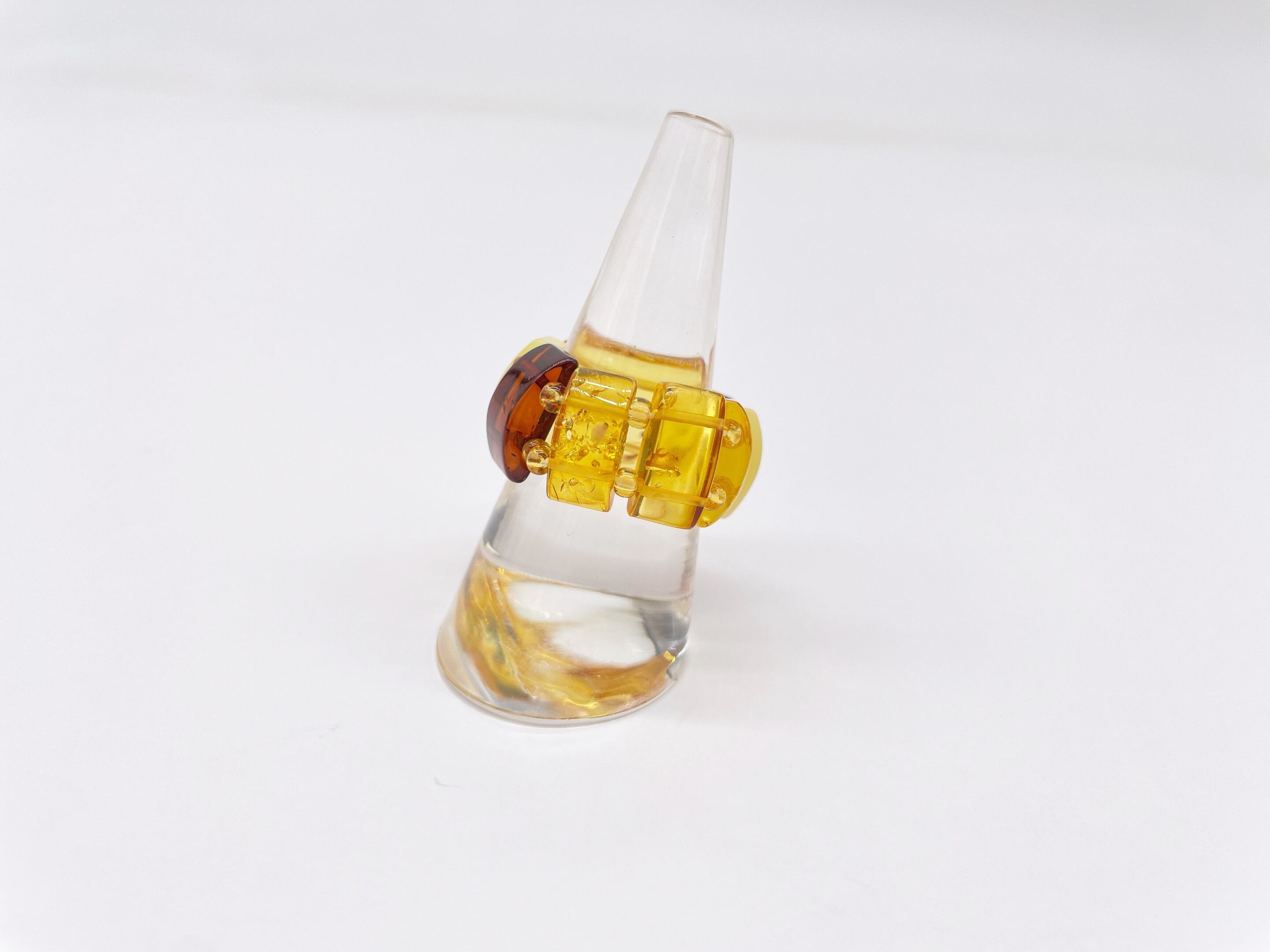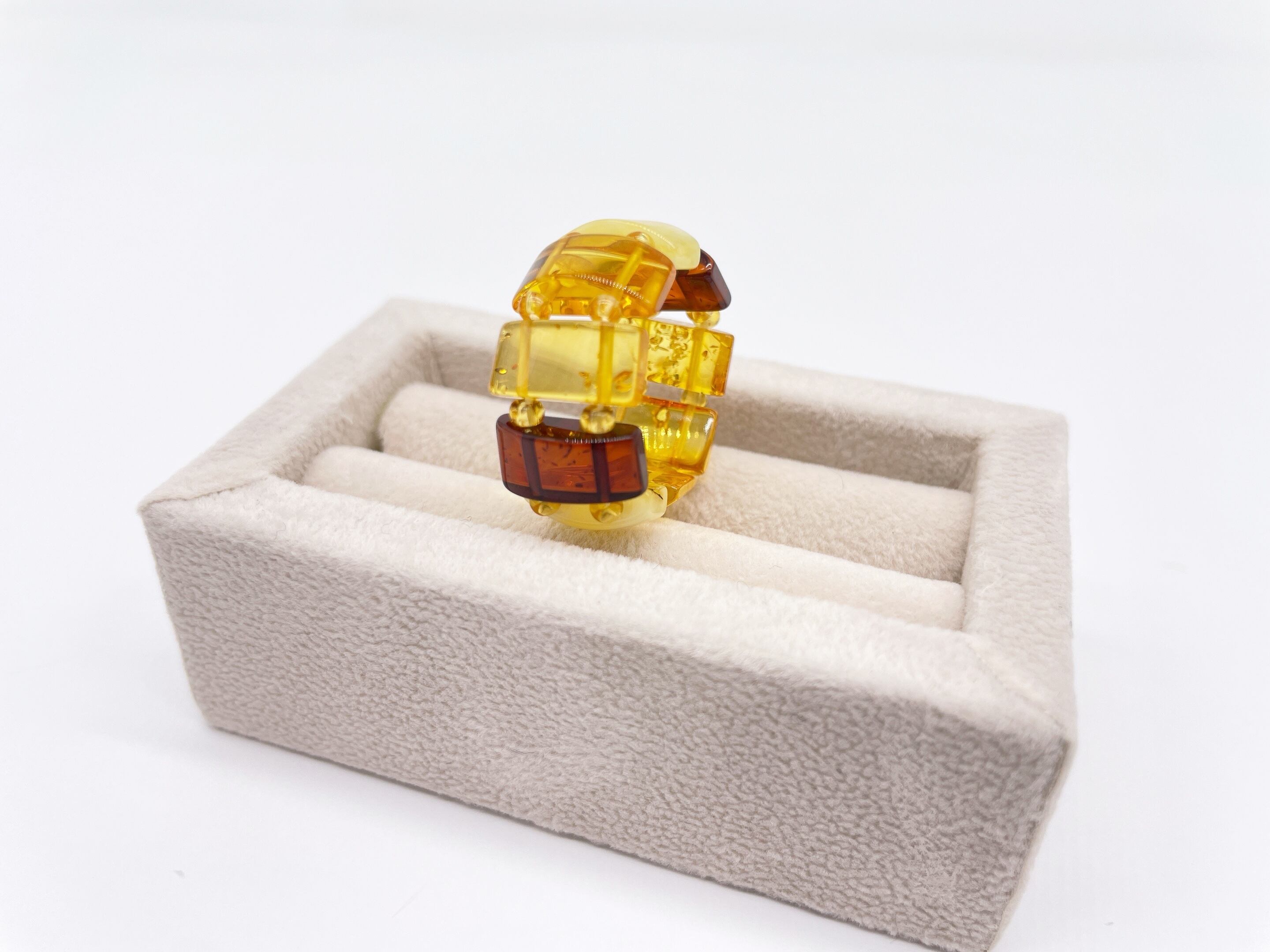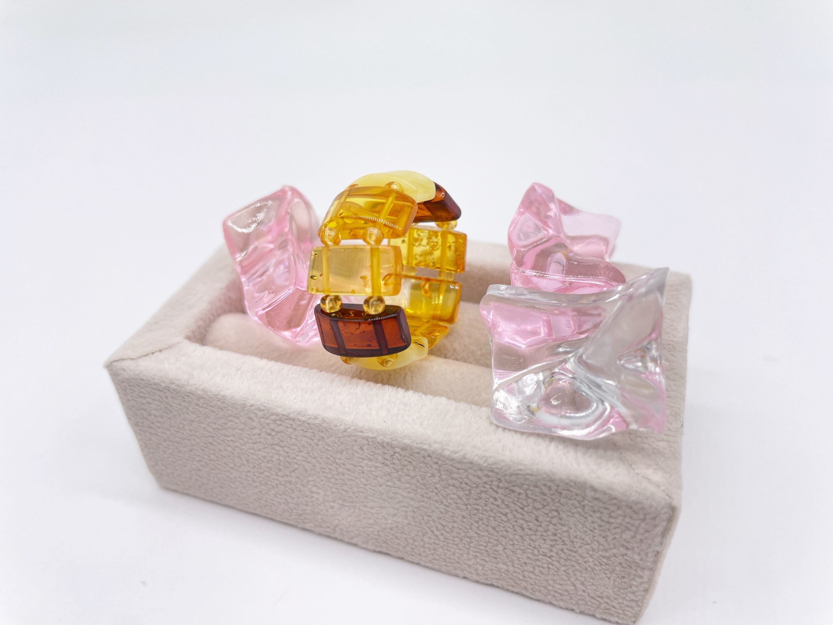 ●サイズ #14〜#16 (フリー)琥珀 幅約10ミリ ●説明 本琥珀(バルティックアンバー)使用 本琥珀(乳白ミルキー)使用 本琥珀(コニャックアンバー)使用 シリコンゴム使用 バルティックアンバーをメインに、柔らかな乳白ミルキーと深みのあるコニャックアンバーを組み合わせた、贅沢なリングです。バルティックアンバーを、リング全体の輝きを引き立てる主役としてふんだんに使用したことで、光を受けるたびに温かみのある煌めきを放ちます。そこに乳白ミルキーとコニャックアンバーを加えることで、存在感アップ!3色の本琥珀が織りなすコントラストは、自然が生み出した色彩のハーモニー。スクエアカットを連ねたデザインは、クラシックな美しさにモダンな要素を加え、シンプルな装いにも華やぎをプラスします。シリコンゴムを使用しているので伸縮性があり、指にやさしくフィットし、長時間の着用も快適。本琥珀は天然素材の為、非常に付け心地が良いですしアレルギーの心配も無いので安心です。商品はこちらの梱包にて大切に発送致します。指先に、三重奏の輝き。天然素材の為、色目やサイズ感は多少異なる場合がございます。※べっ甲 及び琥珀等の天然素材はすべて本物です。希望小売価格\7,500