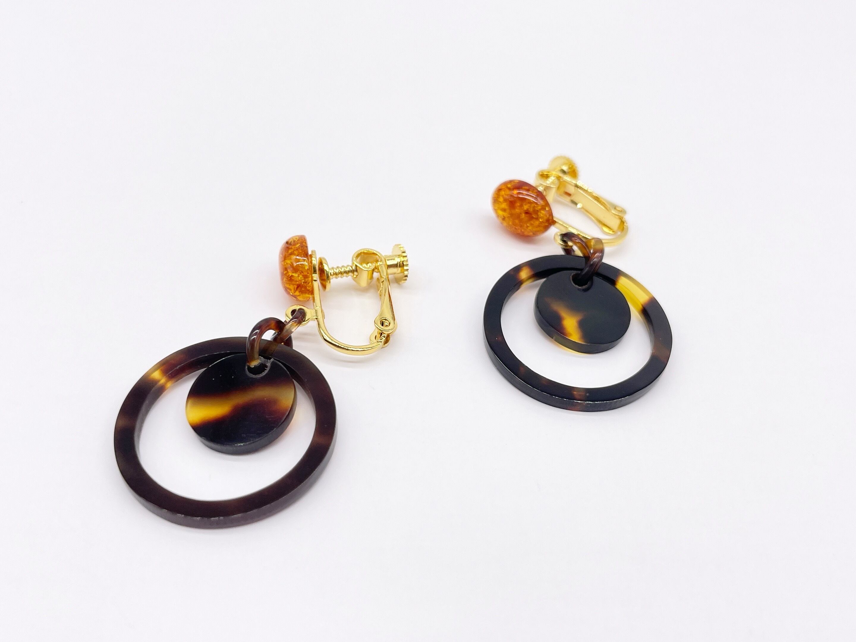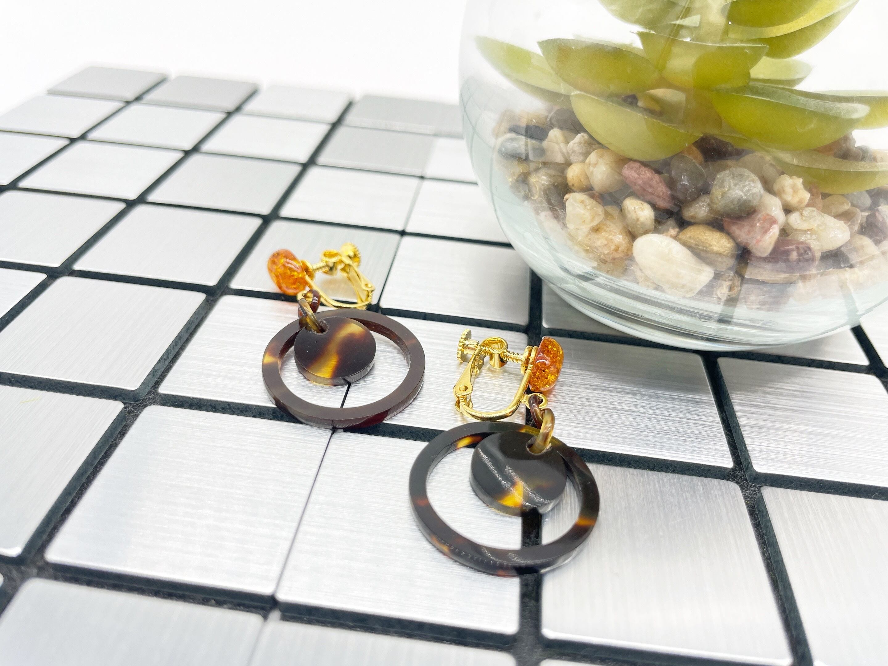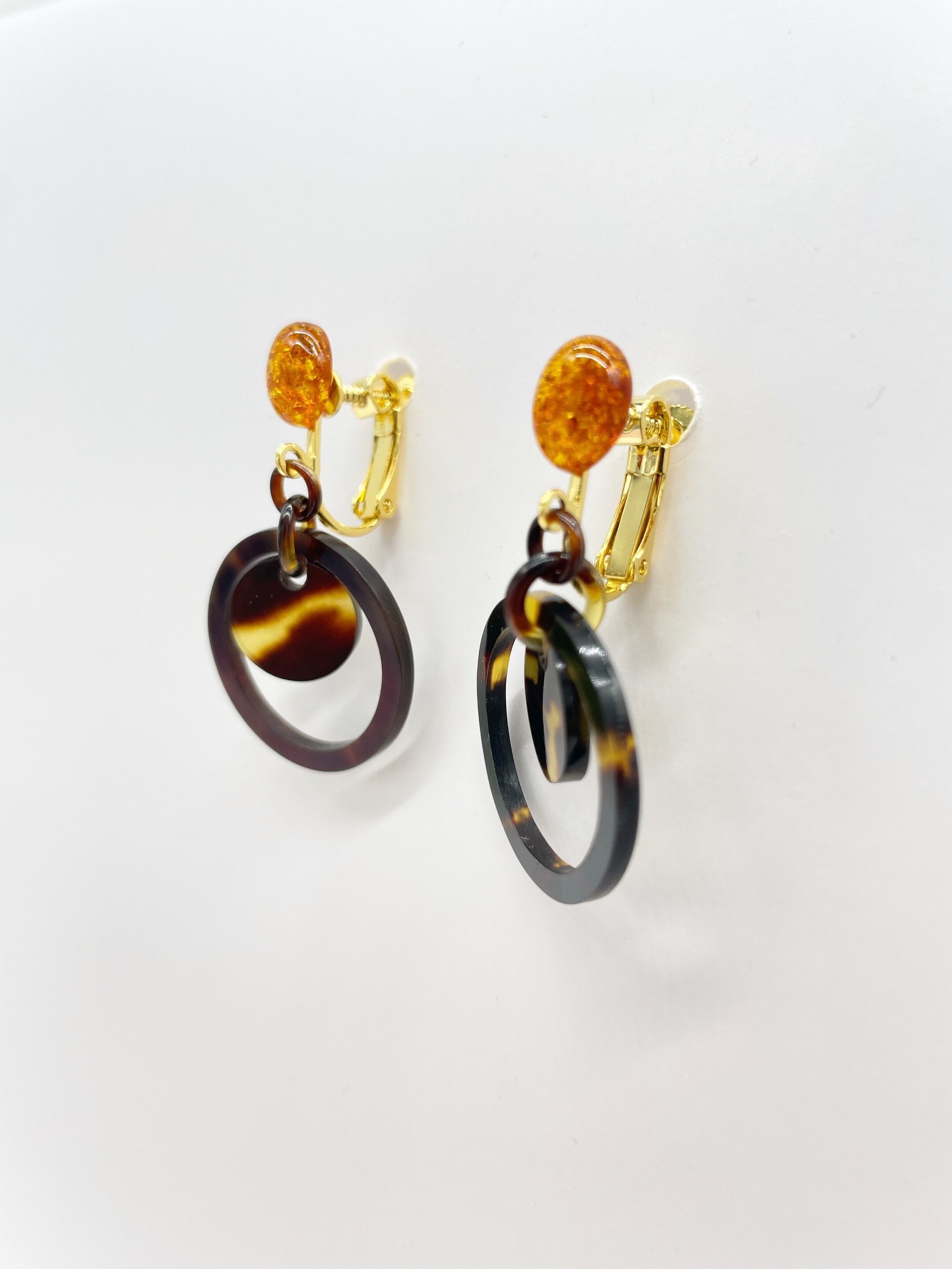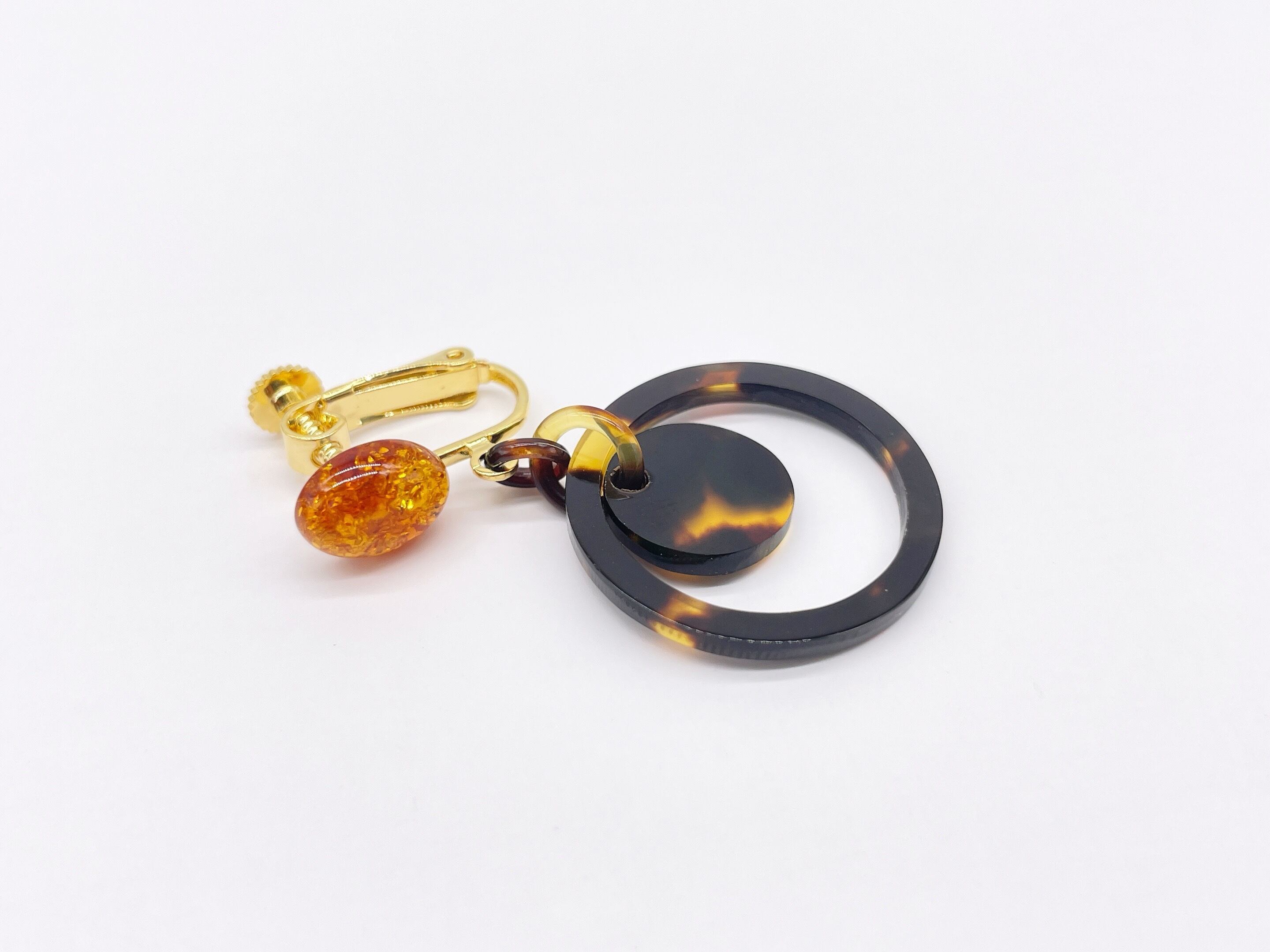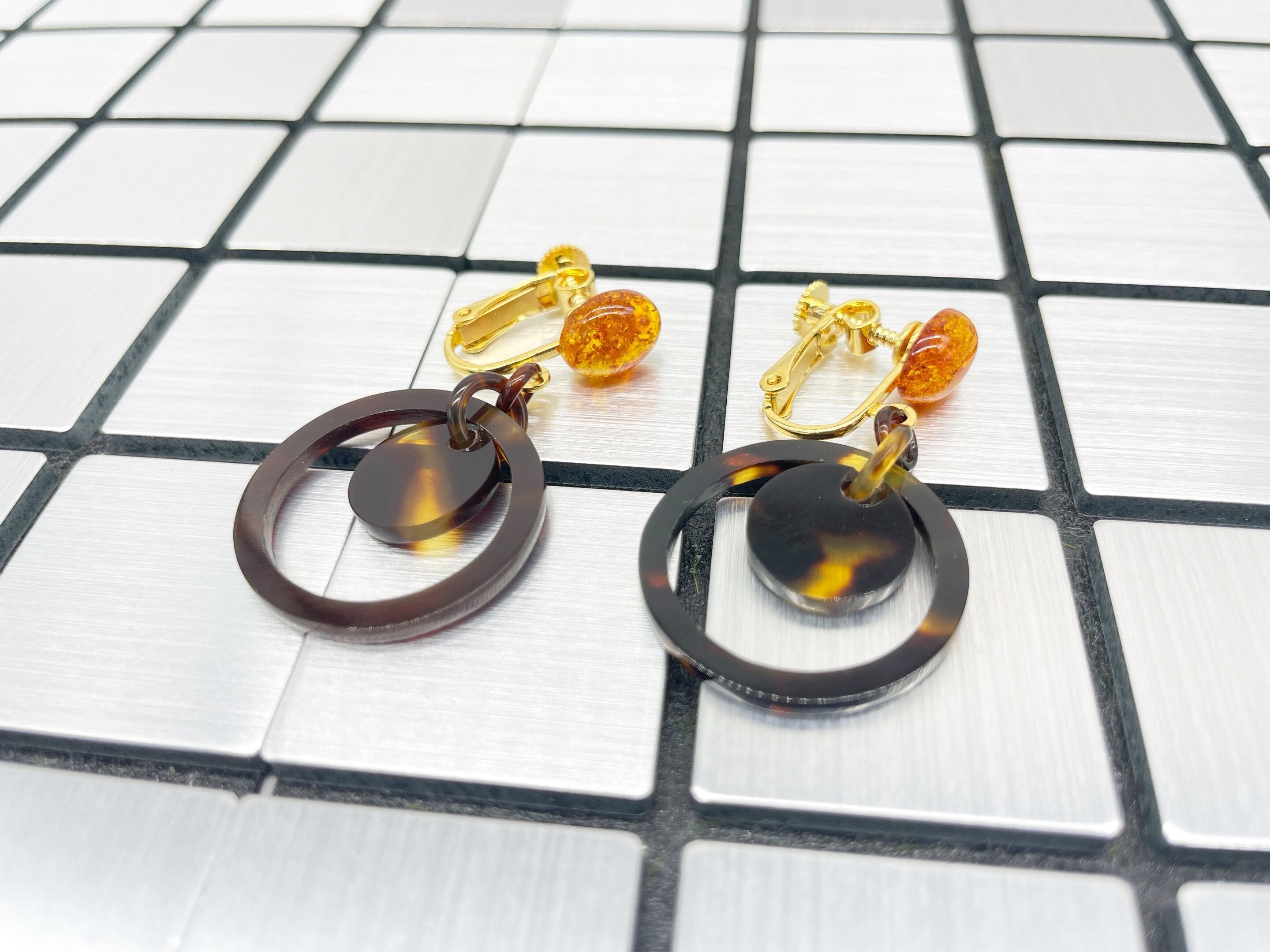 ●サイズ タテ約4.0cm(留め具込み)×ヨコ幅約2.2cm ●説明 本べっ甲 バラフ甲(背甲)使用 金具 金メッキばね式使用 天然の本べっ甲と、希少なバルティックアンバー(本琥珀)を組み合わせた、上質なイヤリングです。サークルタイプのべっ甲の外側にリングのべっ甲が合わさることで立体感が生まれ、本べっ甲ならではの深みのあるグラデーションが、耳元に上品な輝きを添えます。そして、そこに添えられた小ぶりながらも存在感マックスな本琥珀の温かみあるバルティックアンバーが、耳元に華やぎと柔らかな光をもたらします。フォーマルな場面はもちろん、シンプルな装いのアクセントとしてもおすすめです。べっ甲はとても軽いため重さを感じず疲れにくいです。ピアスへの加工も無償でさせて頂きますのでメール、メッセージでお伝えください(但し金具はニッケルフリーのアレルギー対応チタンの直結タイプとなります)。耳元に、自然の艶と琥珀のぬくもりを。商品はこちらの梱包にて大切に発送致します。天然素材の為、色目やサイズ感は多少異なる場合がございます。※べっ甲及び琥珀等の天然素材はすべて本物です。通常希望小売価格¥13,500