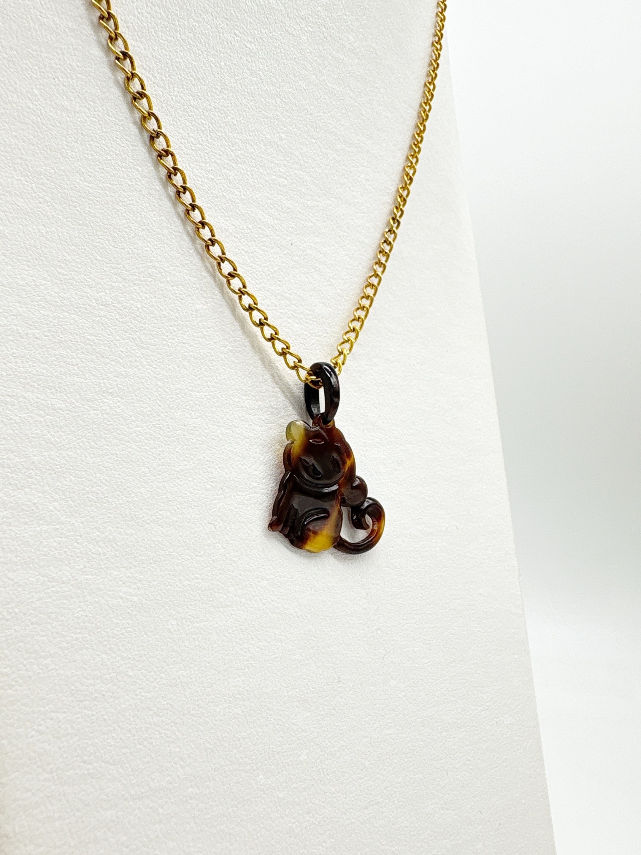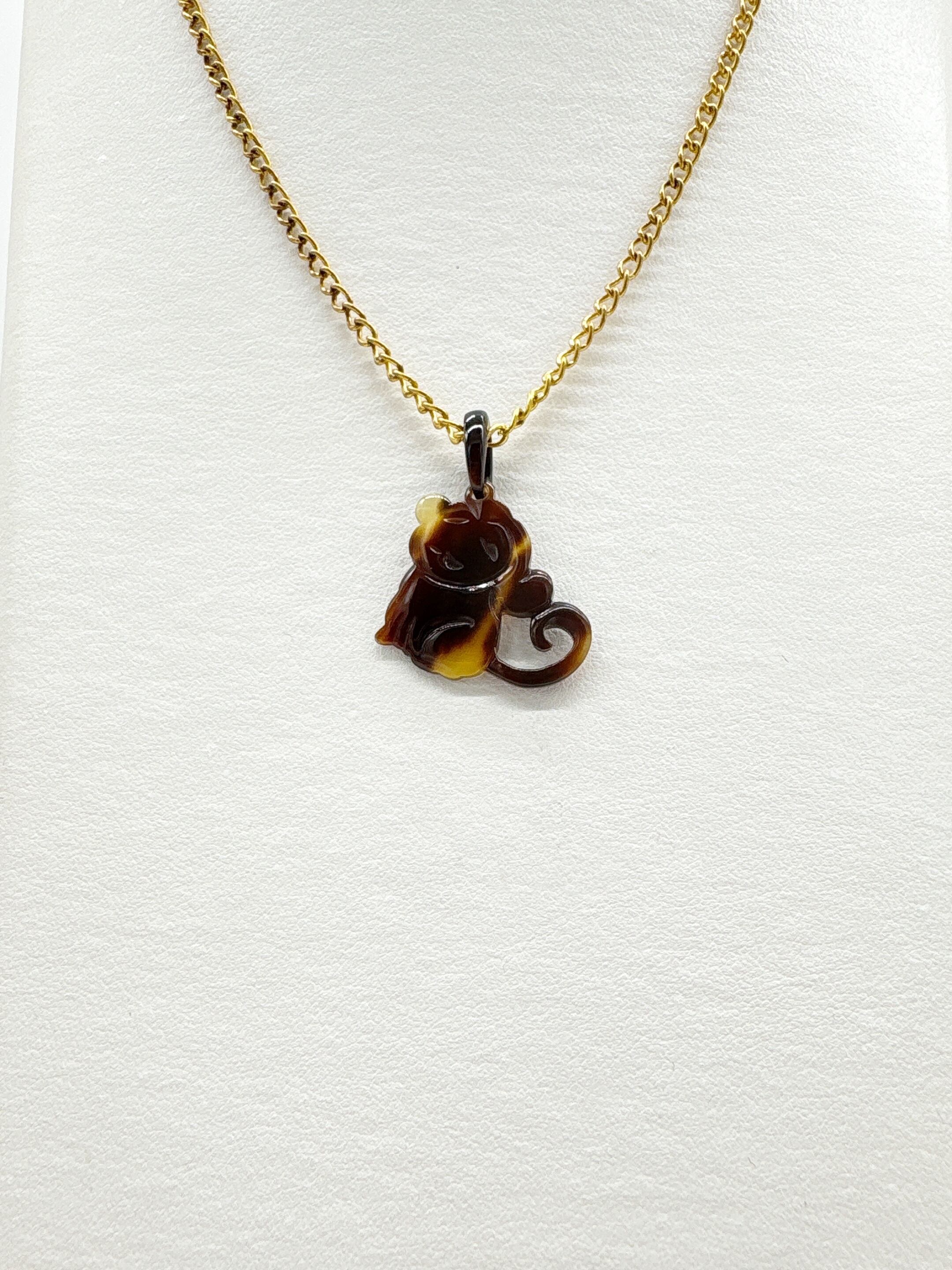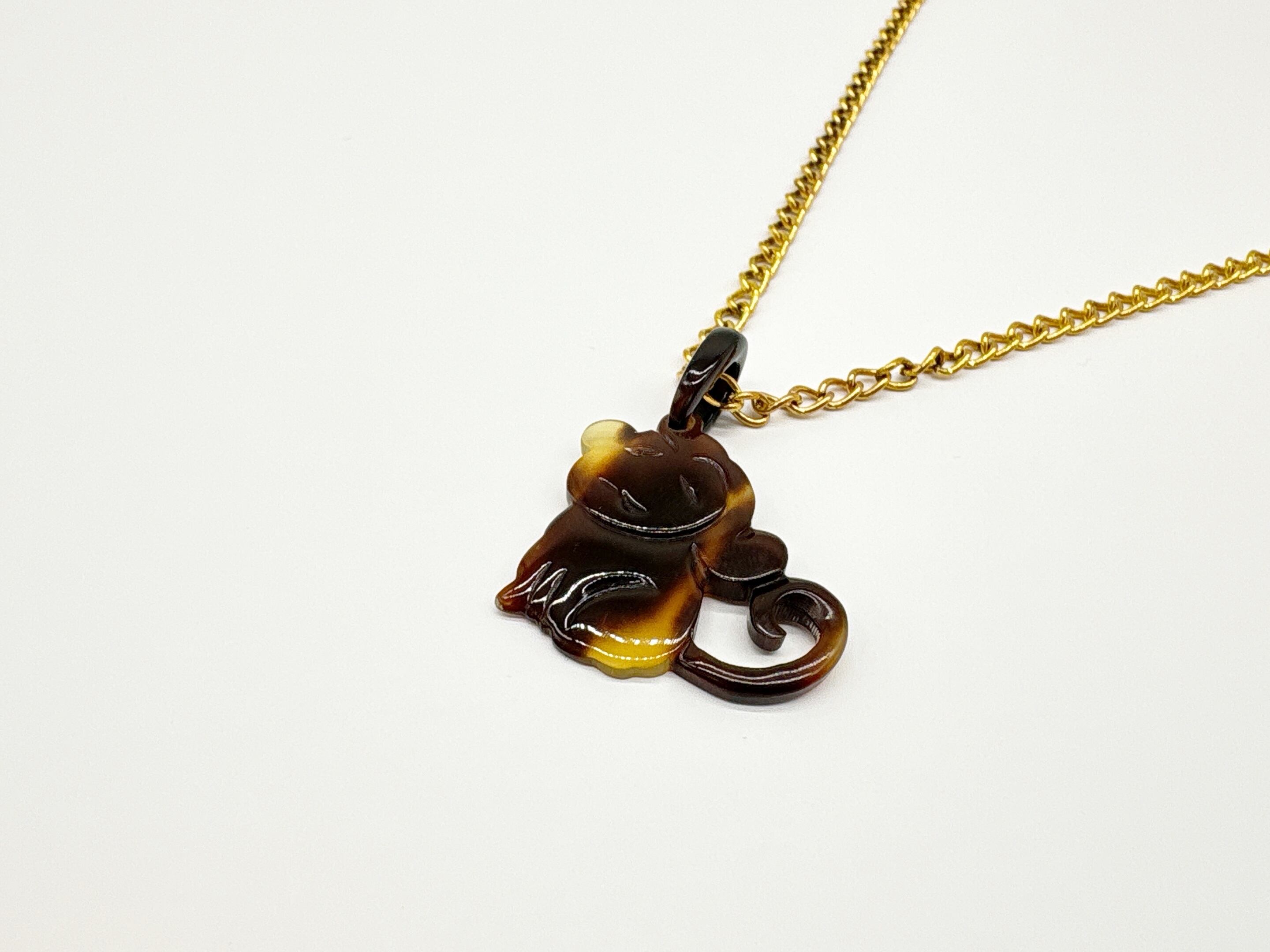 職人が一つひとつ手作業で仕上げた、本べっ甲のおサルさんペンダントです。べっ甲の自然な濃淡が生み出す色合いと透明感のある美しい模様が織りなす、唯一無二の輝きが魅力。愛らしい表情のおサルさんが職人の手によって柔らかい曲線で表現され、身に着けるだけで温かみを感じられるデザインです。軽量で肌なじみがよく、アクセサリーとしてはもちろん、お守りとしてもお使いいただけます。おサルさんは「厄が去る」「幸福を招く」などの縁起物としても親しまれています。ほっとするような優しい顔立ちがポイントで、見る人の気持ちを和ませてくれますので、プレゼントにもぴったりです!天然素材ならではの風合いと、手彫りならではの繊細さを感じられる逸品です。こちらの金メッキの付属チェーンはサービスでお付けしておりますが、お手持ちのチェーンなどに通してもお使い頂ける商品です。画像にあるスピネルチェーン(別売り)と合わせて頂くと、より豪華な仕上がりになります。日常にそっと寄り添う、小さな相棒となるでしょう。商品はこちらの梱包にて大切に発送致します。天然素材の為、色目やサイズ感は多少異なる場合がございます。※べっ甲及び琥珀等の天然素材はすべて本物です。通常希望小売価格¥11,000
