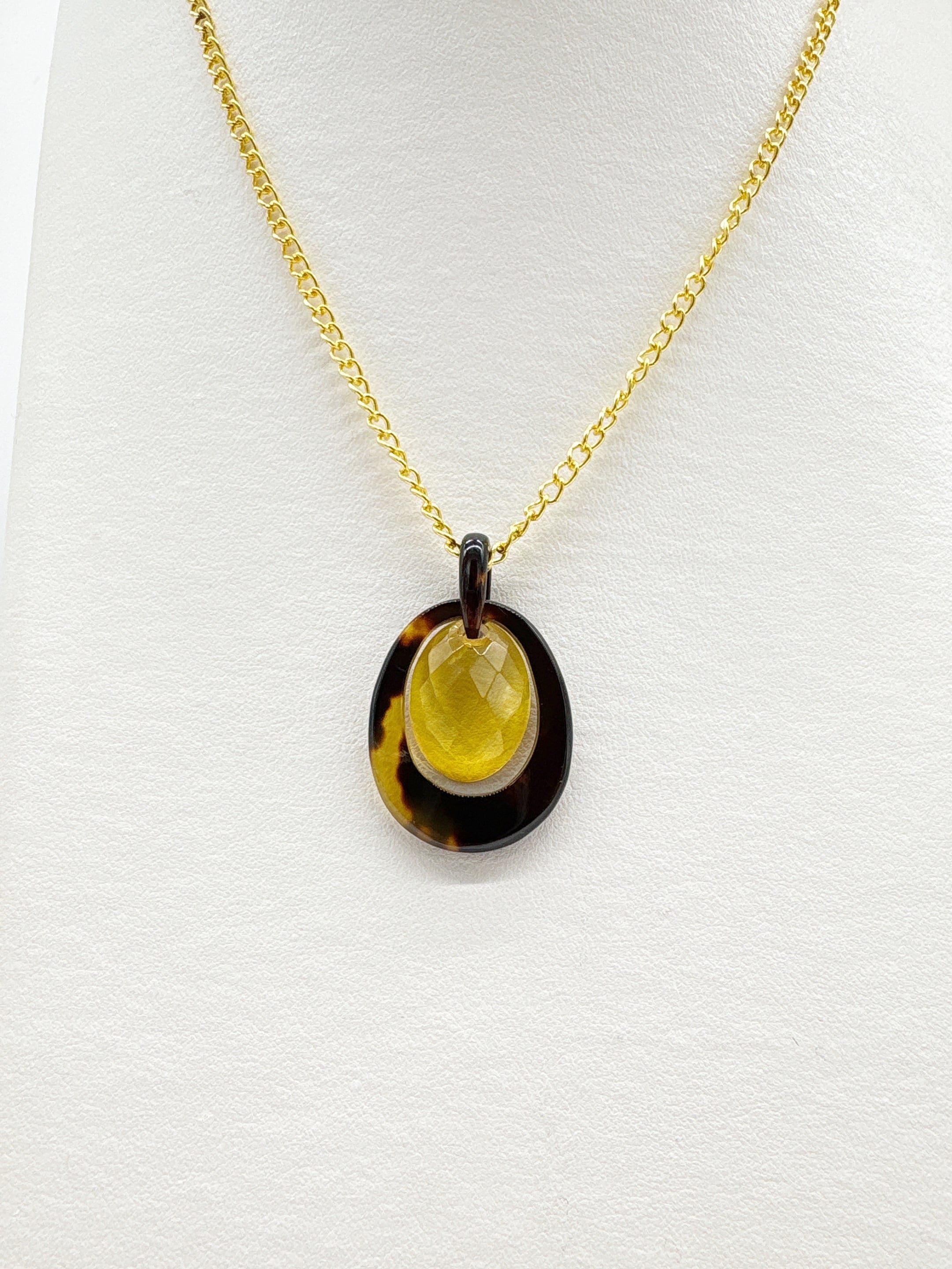 本べっ甲の滑らかな曲線に、本琥珀バルティックアンバーを組み合わせた、透明感とフォルムの美しさが際立つペンダントです。オーバルタイプに加工した本べっ甲は、空間を包み込むような開放的なデザインが特徴。表面に宿る自然なラインは、角度を変えるたびに陰影を生み、素材本来の柔らかさと上質さを静かに引き立てます。中央に組み合わせたバルティックアンバーは、内部に光を取り込みながら、カット面が細やかにきらめき、まるで小さな光の粒が閉じ込められているかのような奥行きを感じさせます。べっ甲の落ち着いた風合いと琥珀の明るい透明感が調和し、印象的な存在感を放つ仕上がりです。軽やかでありつつ、素材の上質さと作り手の繊細な仕事が息づくデザインは、日常の装いにそっと個性を添え、特別なシーンにも自然に寄り添います!長く楽しめる、美しさを宿した一点です。こちらの金メッキの付属チェーンはサービスでお付けしておりますが、お手持ちのチェーンなどに通してもお使い頂ける商品です。画像にあるスピネルチェーン(別売り)と合わせて頂くと、より豪華な仕上がりになります。光をまとう、静かな品格をあなたに。商品はこちらの梱包にて大切に発送致します。天然素材の為、色目やサイズ感は多少異なる場合がございます。※べっ甲及び琥珀等の天然素材はすべて本物です。通常希望小売価格¥18,000