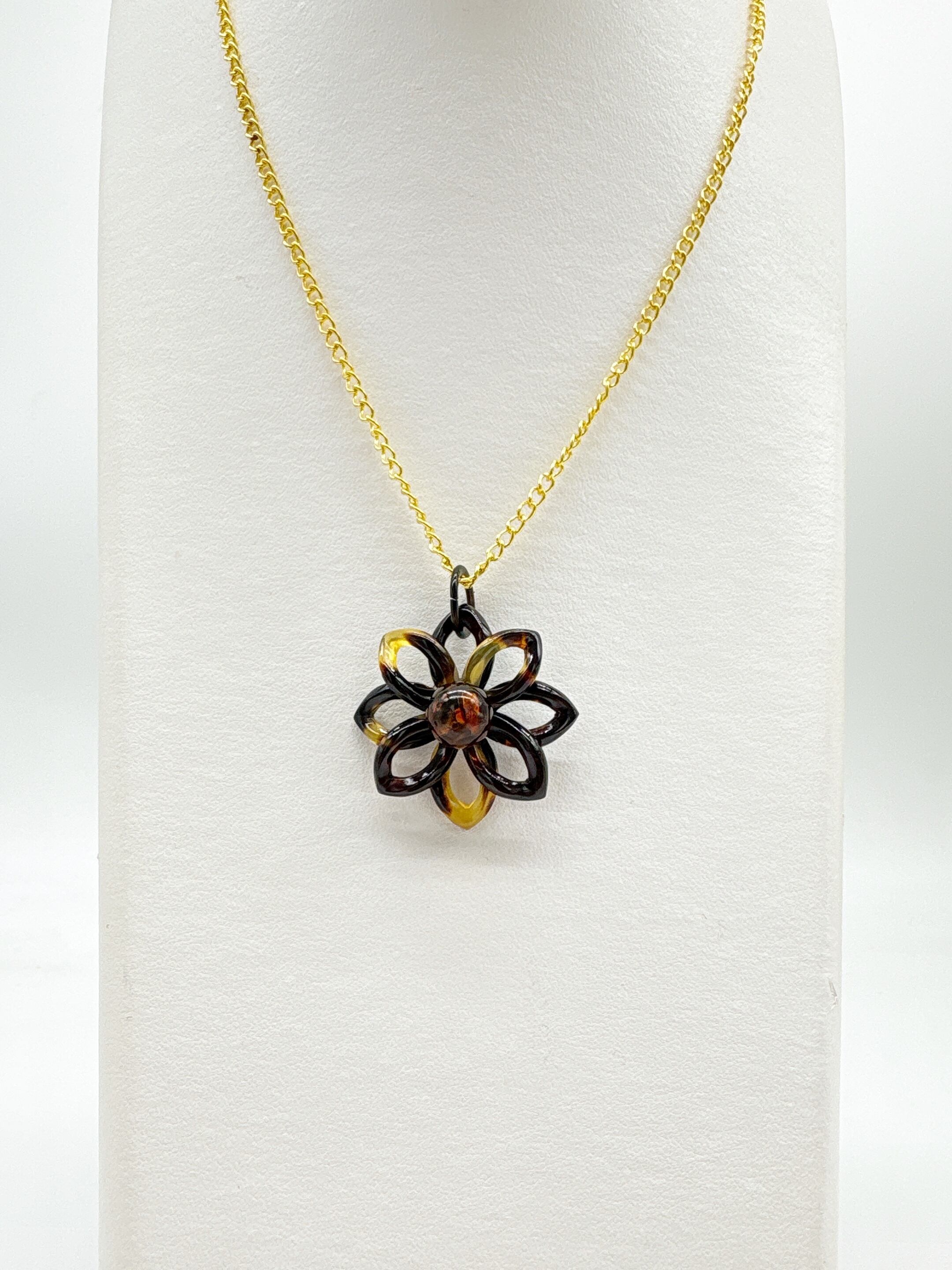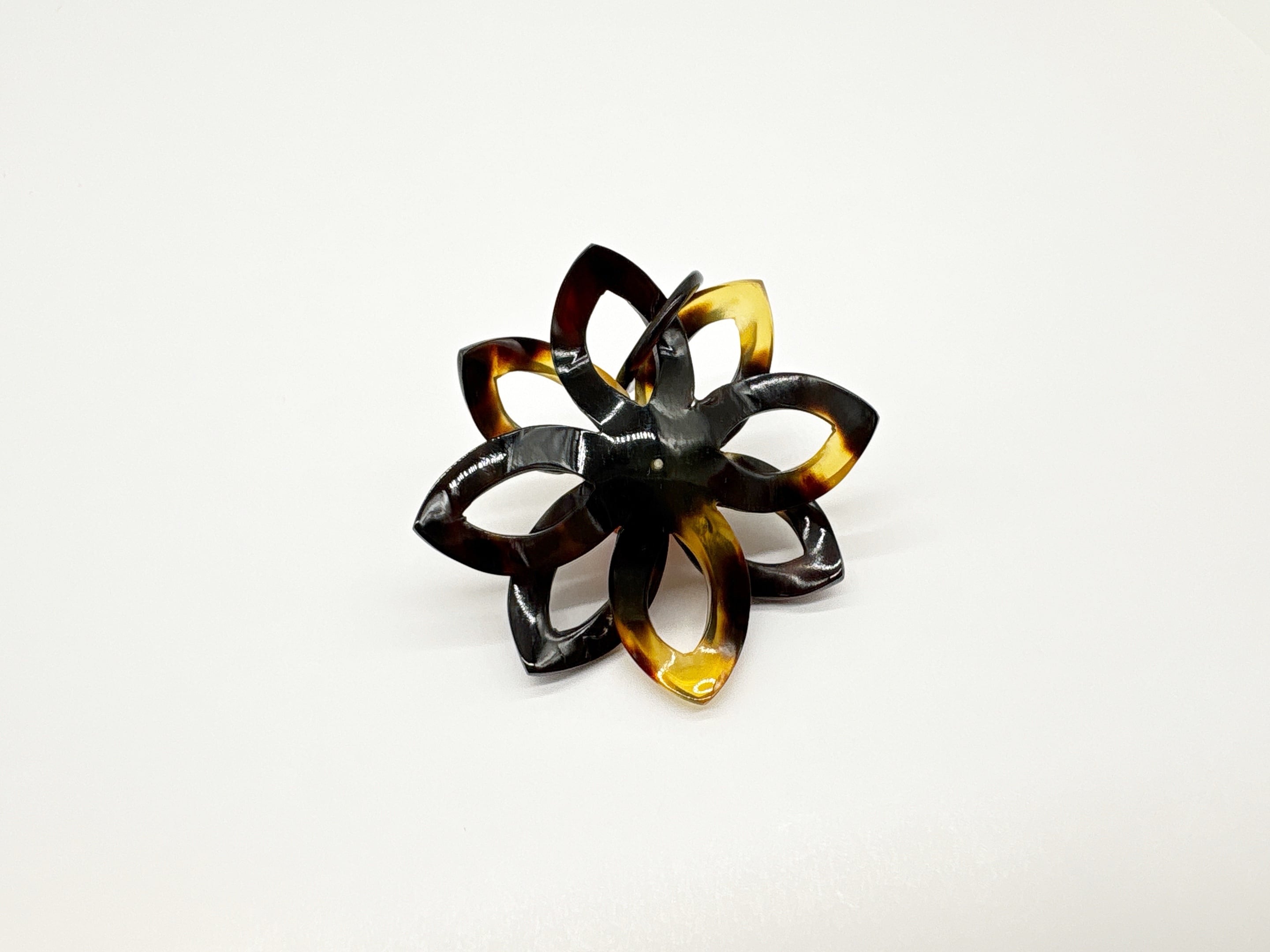 本べっ甲を花のように重ねて組み上げ、その中心に本琥珀コニャックアンバーを据えた、立体的な美しさが際立つペンダントです。花弁を思わせるべっ甲のパーツは細かな技術によって一つひとつ丁寧に作られ、緩やかな曲線が自然に重なり合うことで、柔らかい広がりと奥行きを生み出しています。バラフの濃淡が花弁の表情に変化を与え、光の角度によって陰影が揺らぎ、立体感をより鮮明に引き立てます。中央に添えられたコニャックアンバーは、深みのある透明感を湛えた仕上がりになった丸玉を使用。内部の自然なゆらぎが光を受けて優しく輝き、まるで花の芯が柔らかく息づくような存在感を放ちます。本べっ甲の滑らかな質感と本琥珀の温かみが互いを引き立て合い、ひとつのモチーフの中に自然の美しさが静かに宿ります。立体的でありながら軽やかな印象のデザインは、首元に上品なアクセントを添え、日常にも特別なシーンにも自然に馴染む仕上がり。素材の魅力と手仕事の丁寧さを感じられる、長く大切にしたい一点です。こちらの金メッキの付属チェーンはサービスでお付けしておりますが、お手持ちのチェーンなどに通してもお使い頂ける商品です。画像にあるスピネルチェーン(別売り)と合わせて頂くと、より豪華な仕上がりになります。花の息づかいを感じる、そっと心に咲く美しさを胸元に。商品はこちらの梱包にて大切に発送致します。天然素材の為、色目やサイズ感は多少異なる場合がございます。※べっ甲及び琥珀等の天然素材はすべて本物です。通常希望小売価格¥21,000