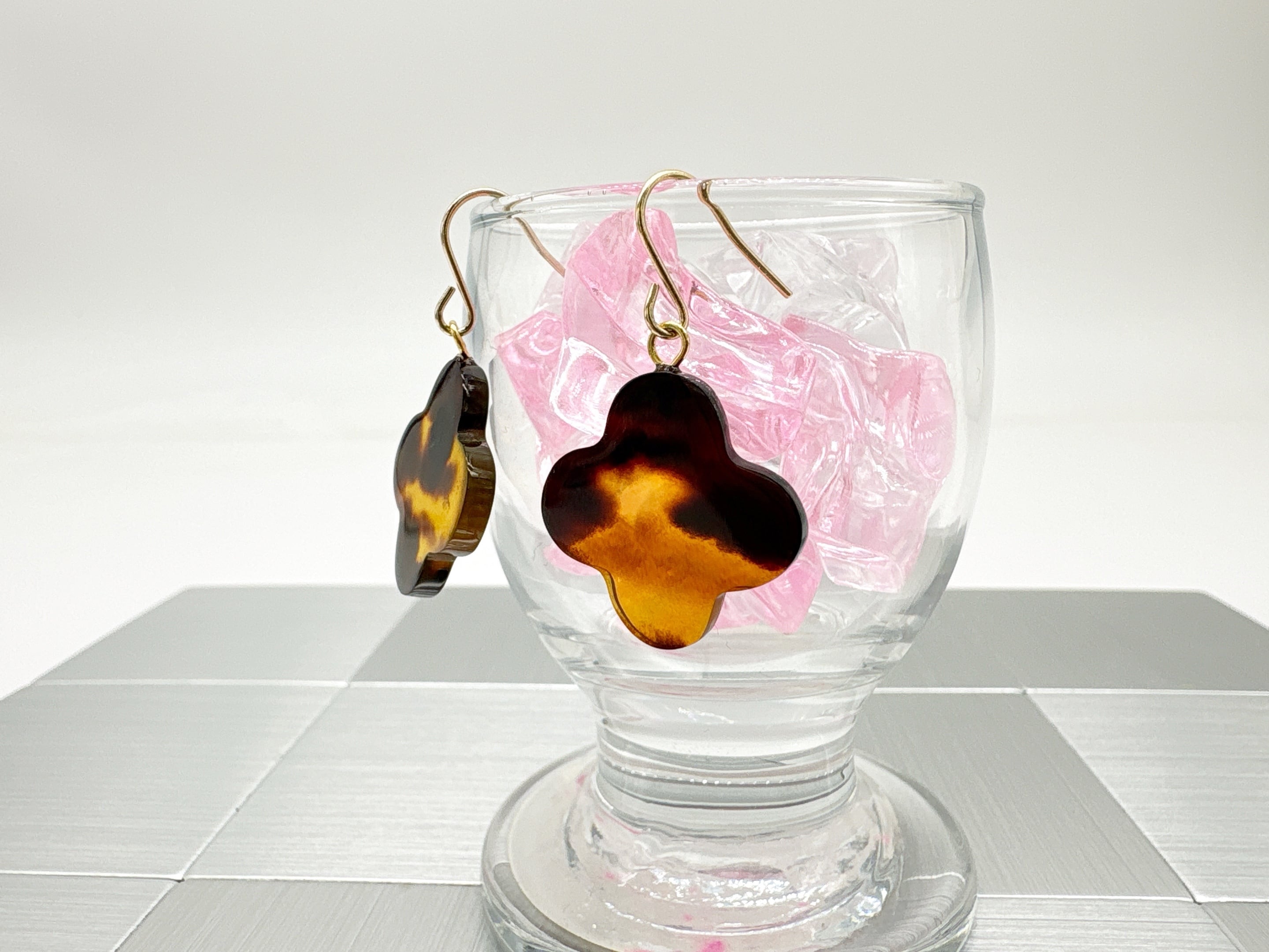 職人が丁寧に磨き上げ、柔らかな丸みを帯びたクローバーシルエットの本べっ甲が特徴の、可憐で上品なピアスで、耳元にふんわりと優しい印象を添えてくれます。シンプルでありながら存在感のあるデザインは、自然素材ならではの温かみを感じられる仕上がりです。本べっ甲は驚くほど軽く、長時間着けていても負担になりにくいのも魅力のひとつ。揺れるたびに光を受けてさりげなく輝き、お顔まわりを明るく見せてくれます。金具部分は上品なゴールドカラーのアメリカンフックタイプで、べっ甲の美しさをより引き立てる組み合わせとなっています。カジュアルなデニムスタイルにはナチュラルなアクセントとして、ワンピースやブラウスなど女性らしいコーディネートには上品な華やかさをプラス!シーンを問わず使いやすいため、日常使いはもちろん、特別な日の装いにもぴったりです。金具はサージカルチタンのニッケルフリーを使用しているのでアレルギーの方にも安心してご使用頂けます。耳元に、さりげないぬくもりを。●べっ甲はとても軽いためお気軽にお付けいただけます。商品はこちらの梱包にて大切に発送致します。天然素材の為、色目やサイズ感は多少異なる場合がございます。※べっ甲及び琥珀等の天然素材はすべて本物です。通常希望小売価格¥9,000
