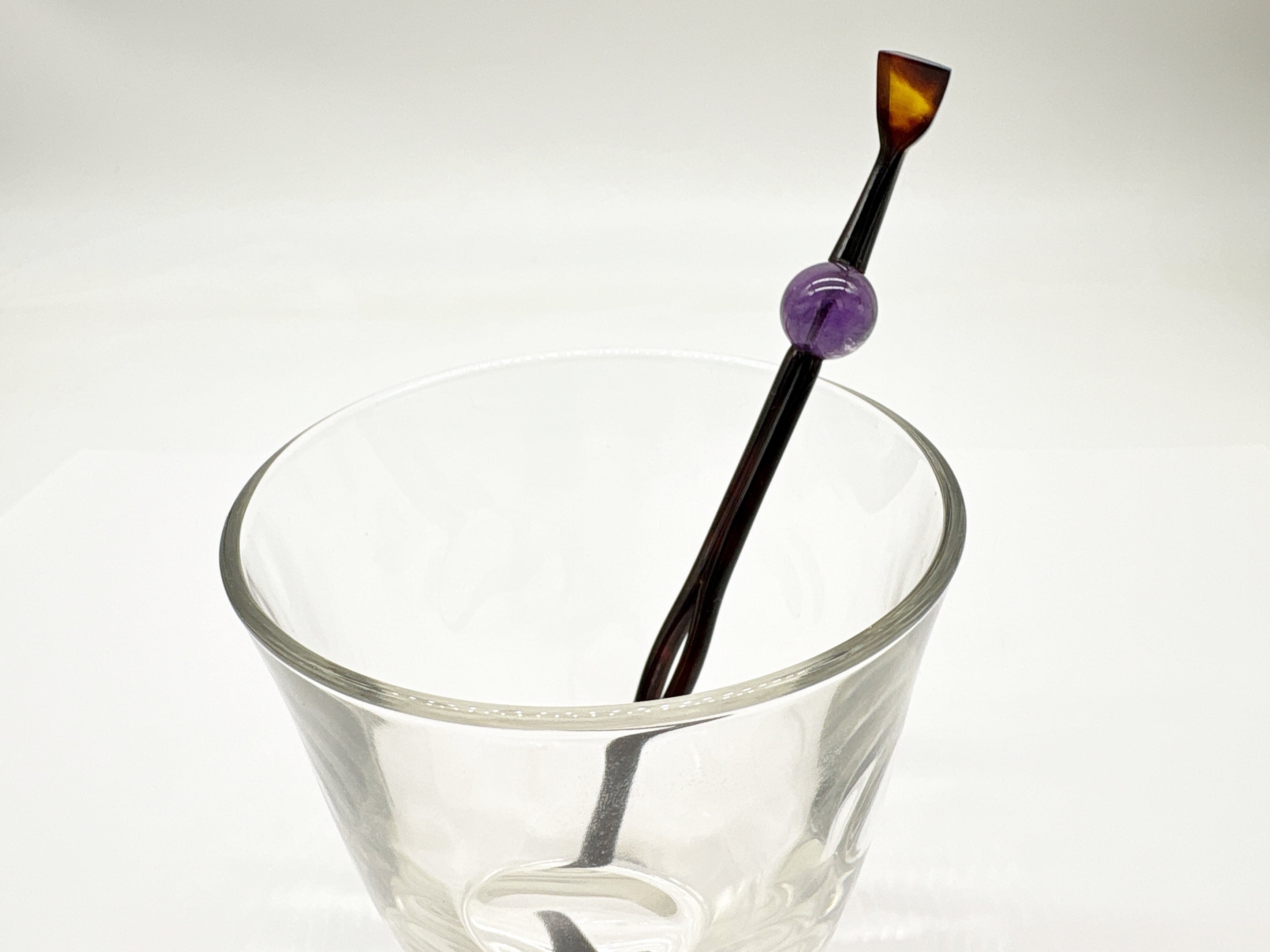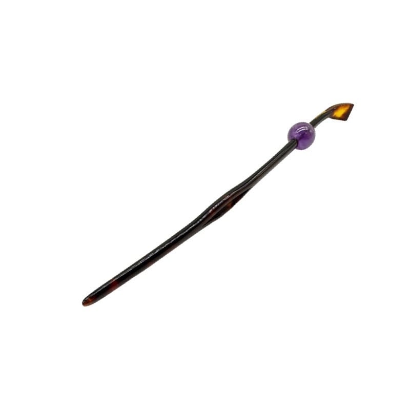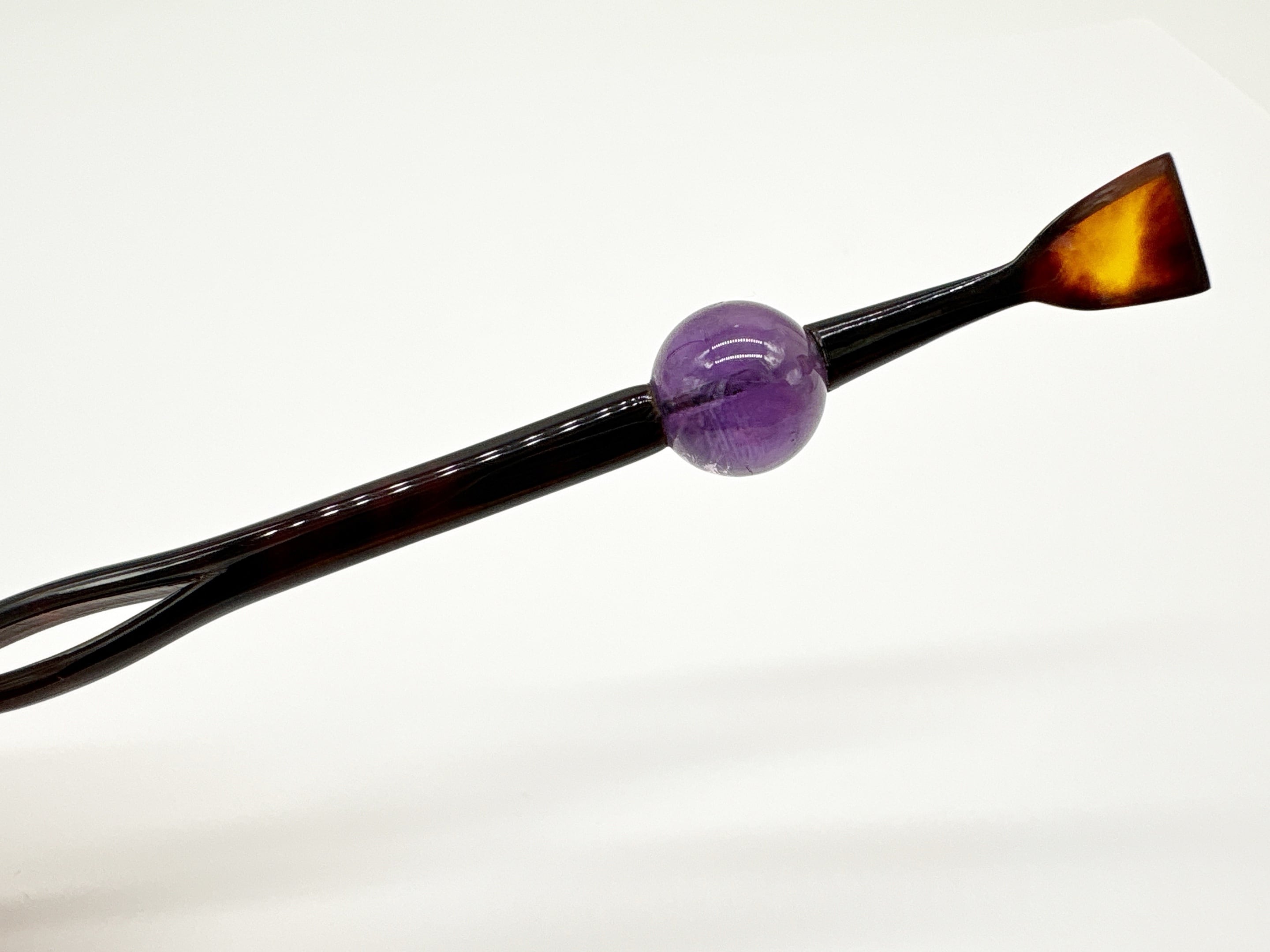 本べっ甲を贅沢に用い、一本挿しの美しさを引き立てるように仕立てた玉簪です。適度な弾力と滑らかな質感を持つべっ甲ならではの使い心地が、髪に心地よく馴染みます。細身の軸には自然の曲線を活かした緩やかなひねりが施され、横顔に上品な動きを添えるデザインが魅力です。飾り玉にはアメシストを使用し、落ち着いた透明感がそっと華やぎを添えています。アメシストは古くから「心を落ち着かせる石」として親しまれ、奥ゆかしい美しさが魅力です。べっ甲の温かみとアメシストの清らかな輝きが調和し、控えめながらも確かな存在感を放つ仕上がりとなっています。和装にピッタリの上品な商品となっており、特別な日に着けて頂くとまとめ髪のアクセントとして大活躍!自然素材がもたらすしなやかな質感と、手作業による優雅なフォルムを堪能できる玉簪です。伝統工芸品、オーガニック素材の良さを味わって頂きたい一品です!商品はこちらの梱包にて大切に発送致します。天然素材の為、色目やサイズ感は多少異なる場合がございます。※べっ甲及び琥珀等の天然素材はすべて本物です。通常希望小売価格¥21,000