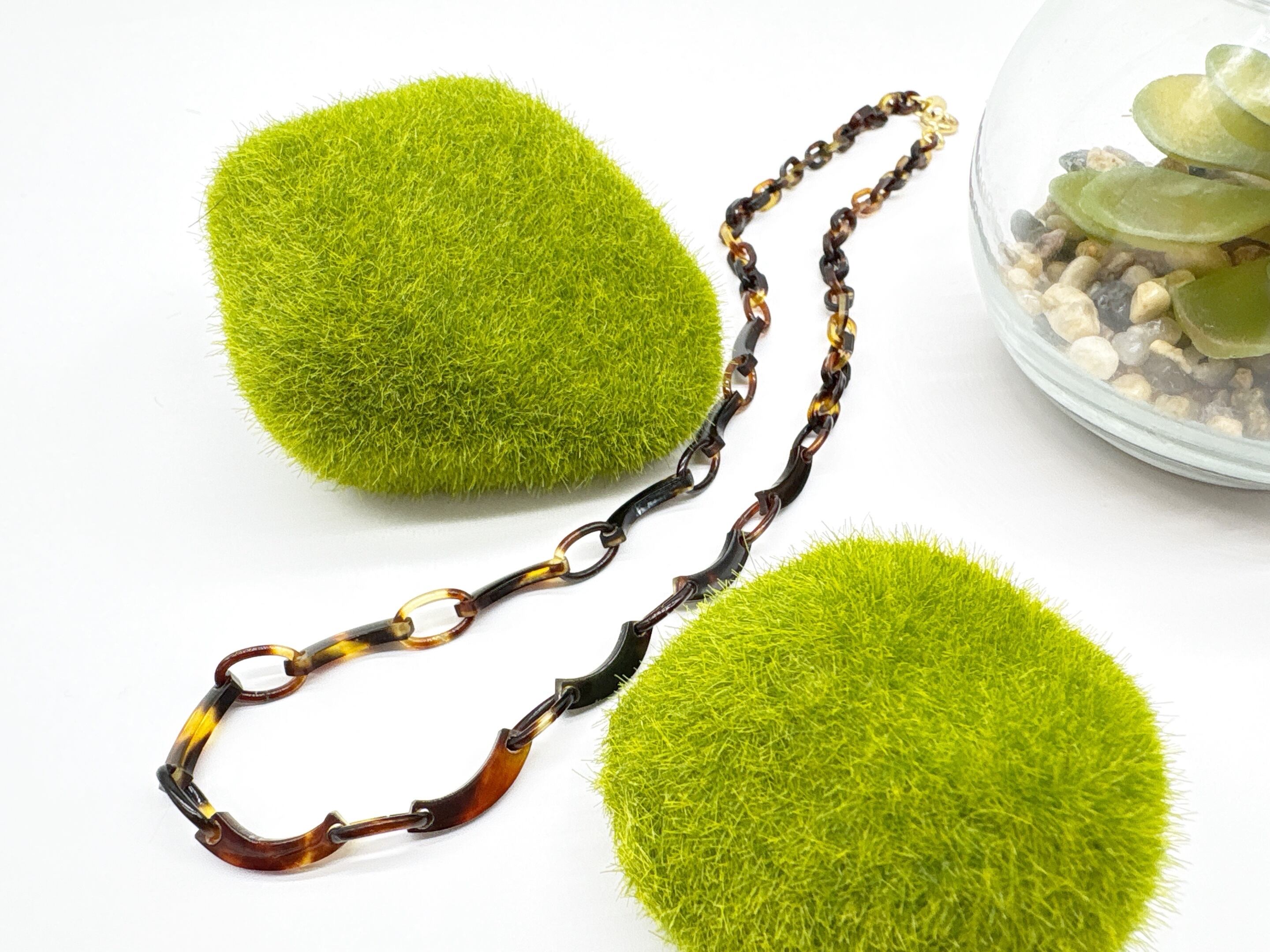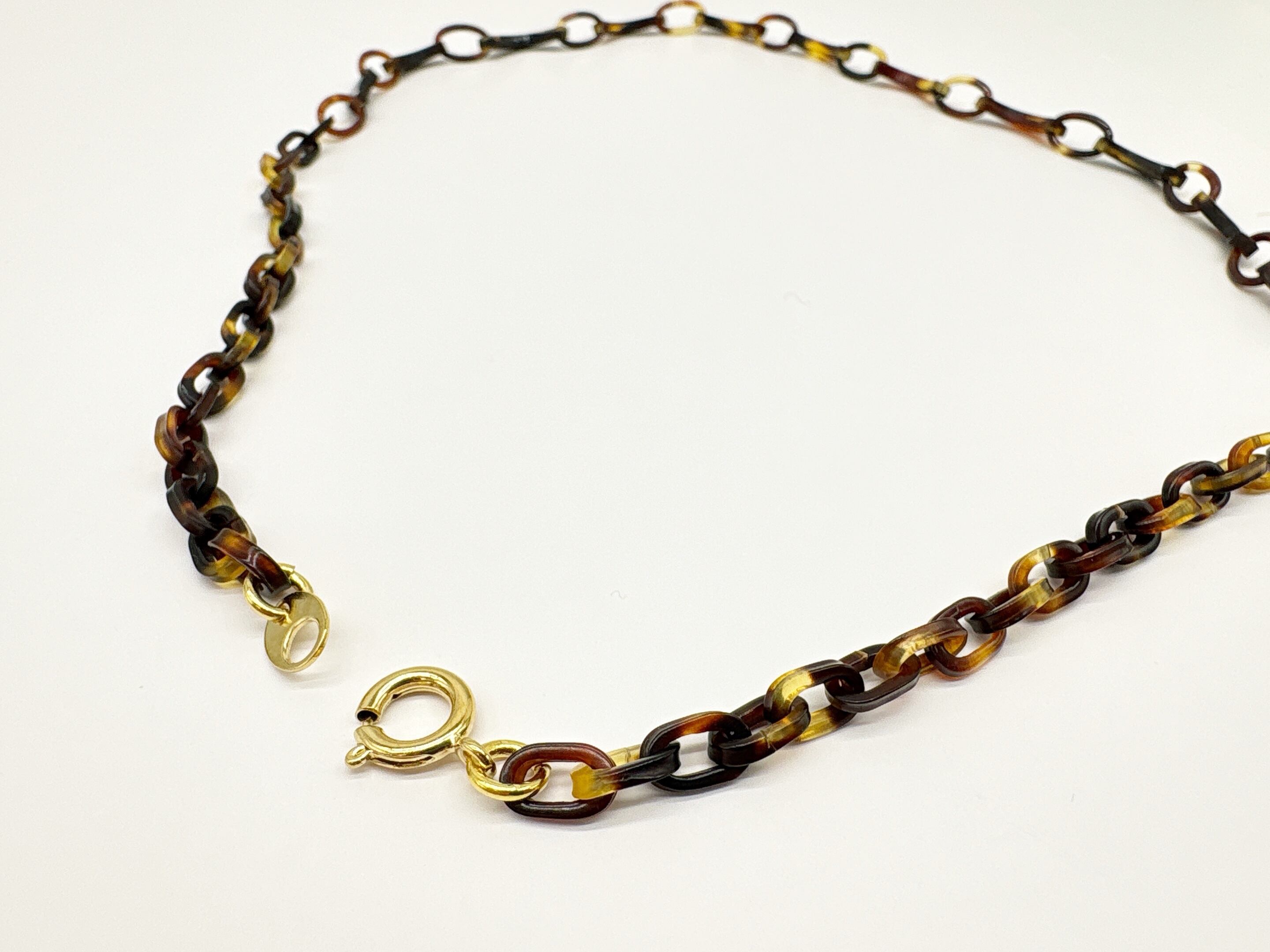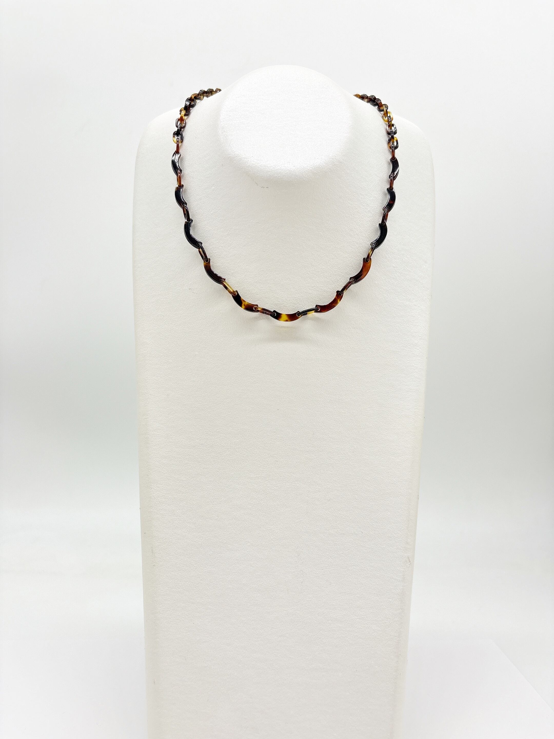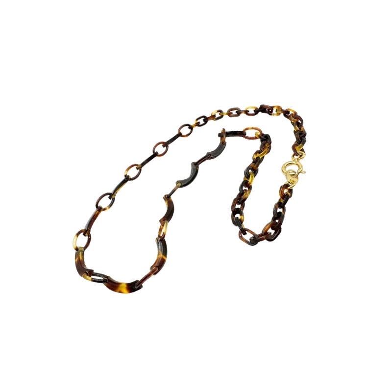 ●サイズ 全長約47.1cm ●説明 本べっ甲 バラフ(背甲)使用 留め具 金メッキカギセット式使用 本べっ甲の魅力を活かしつつ、軽やかなデザインにまとめ上げたネックレスです。全体は、大小の輪を組み合わせたチェーンパーツを基調とし、その間にゆるやかなカーブを描く特徴的なパーツをリズミカルに配置しています。この曲線パーツは、ほどよい立体感と動きを生み、シンプルな構成でありながらも、表情豊かなシルエットを作り出します。表面は丁寧に磨き上げられており、肌に触れた時の滑らかさと軽やかさが魅力です。べっ甲特有の軽い素材感と優しい肌当たりにより、長時間の着用でも負担が少なく、日常使いにも取り入れやすい一本となっています。首元に沿って自然に流れるようなラインは、カジュアルな装いはもちろん、落ち着いたコーディネートにも馴染み、幅広いシーンで活躍するスタッフ一押しの商品!形の美しさと工芸的な質感が調和した、長く愛用できる上質なネックレスです。商品はこちらの梱包にて大切に発送致します。大切な方への贈り物としても喜ばれる逸品。天然素材の為、色目やサイズ感は多少異なる場合がございます。※べっ甲及び琥珀等の天然素材はすべて本物です。通常希望価格¥22,000
