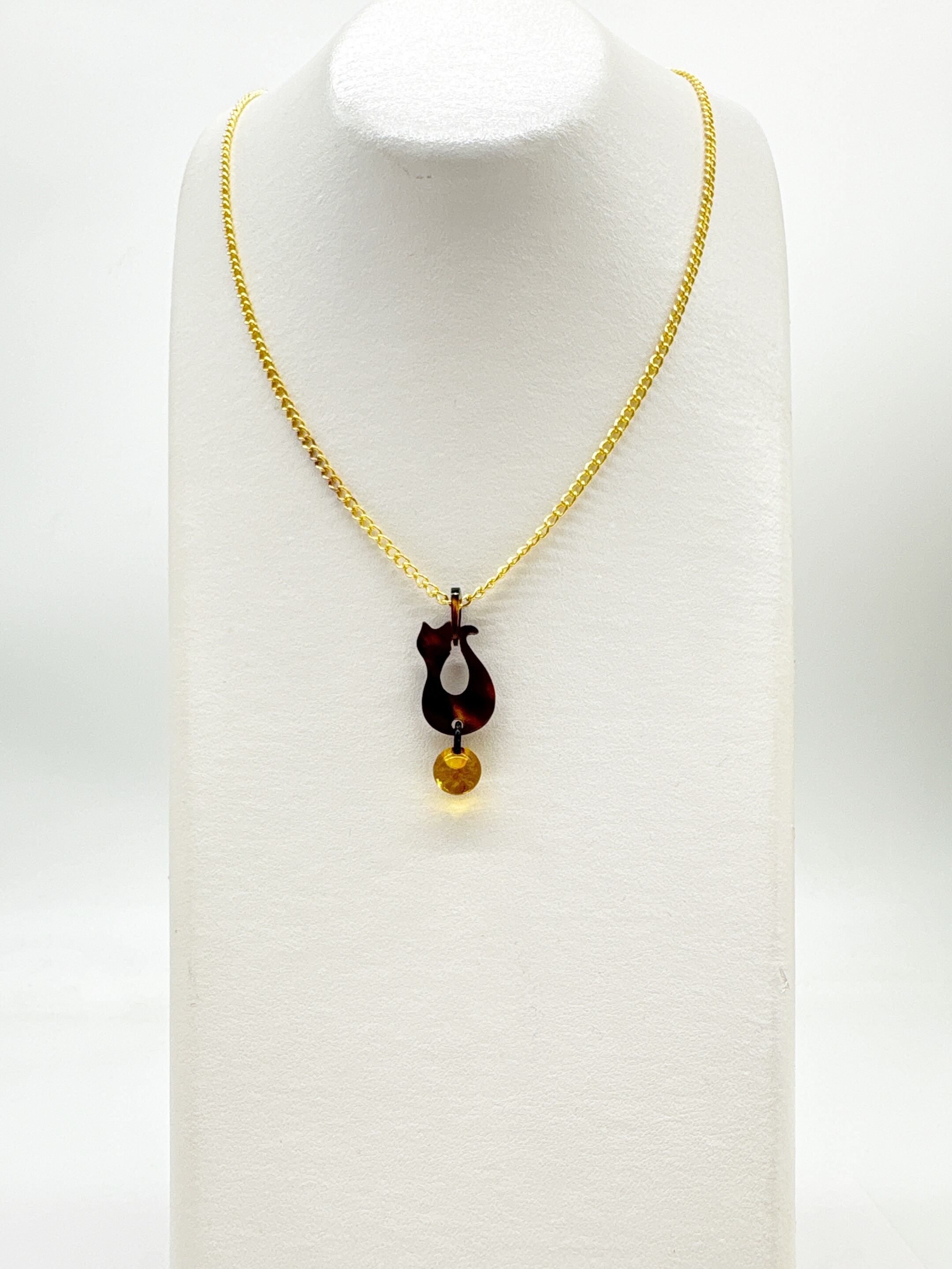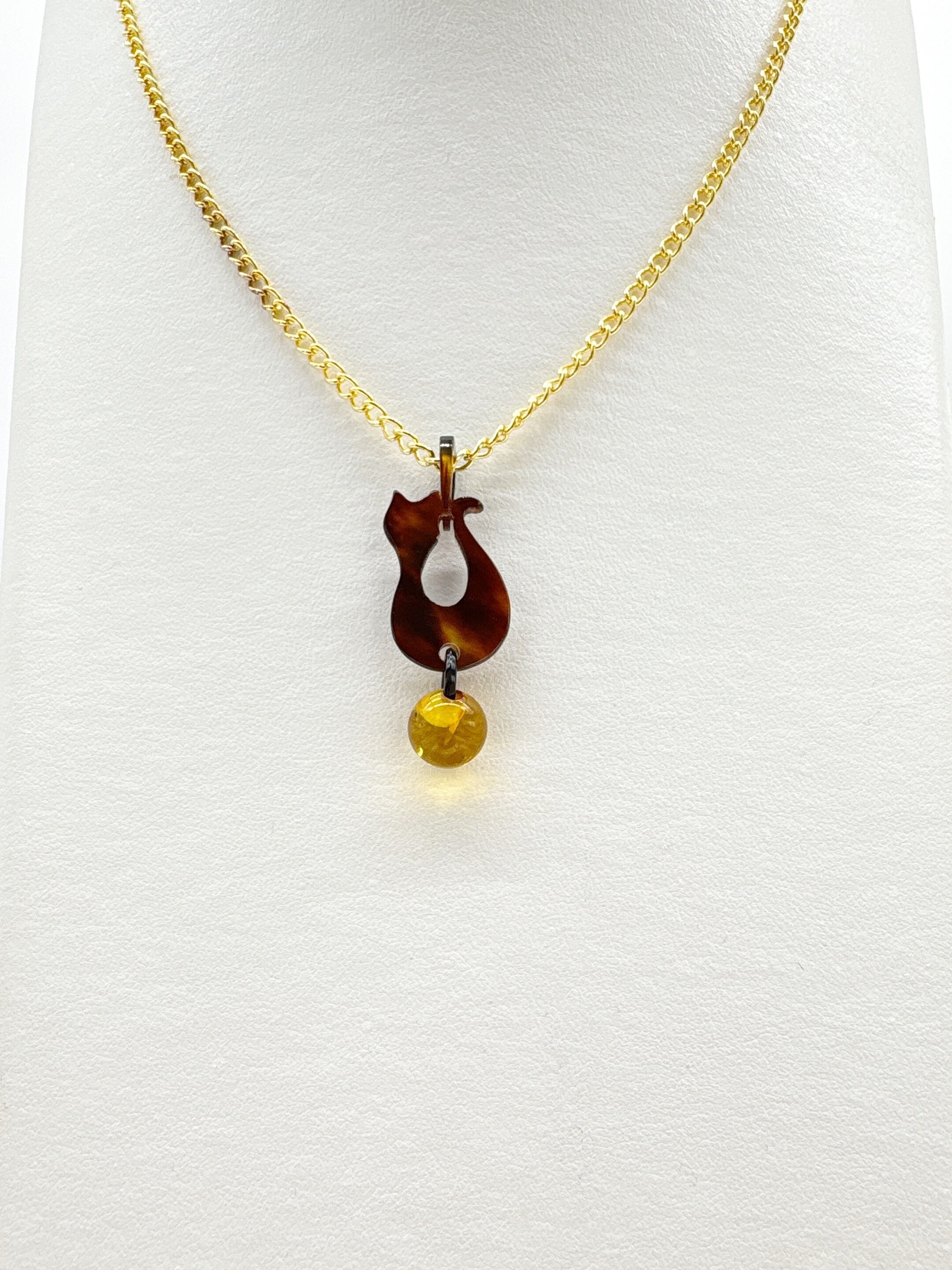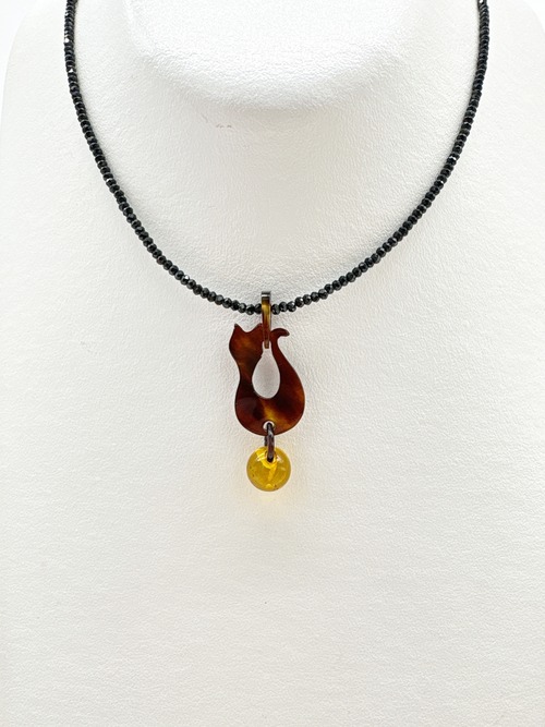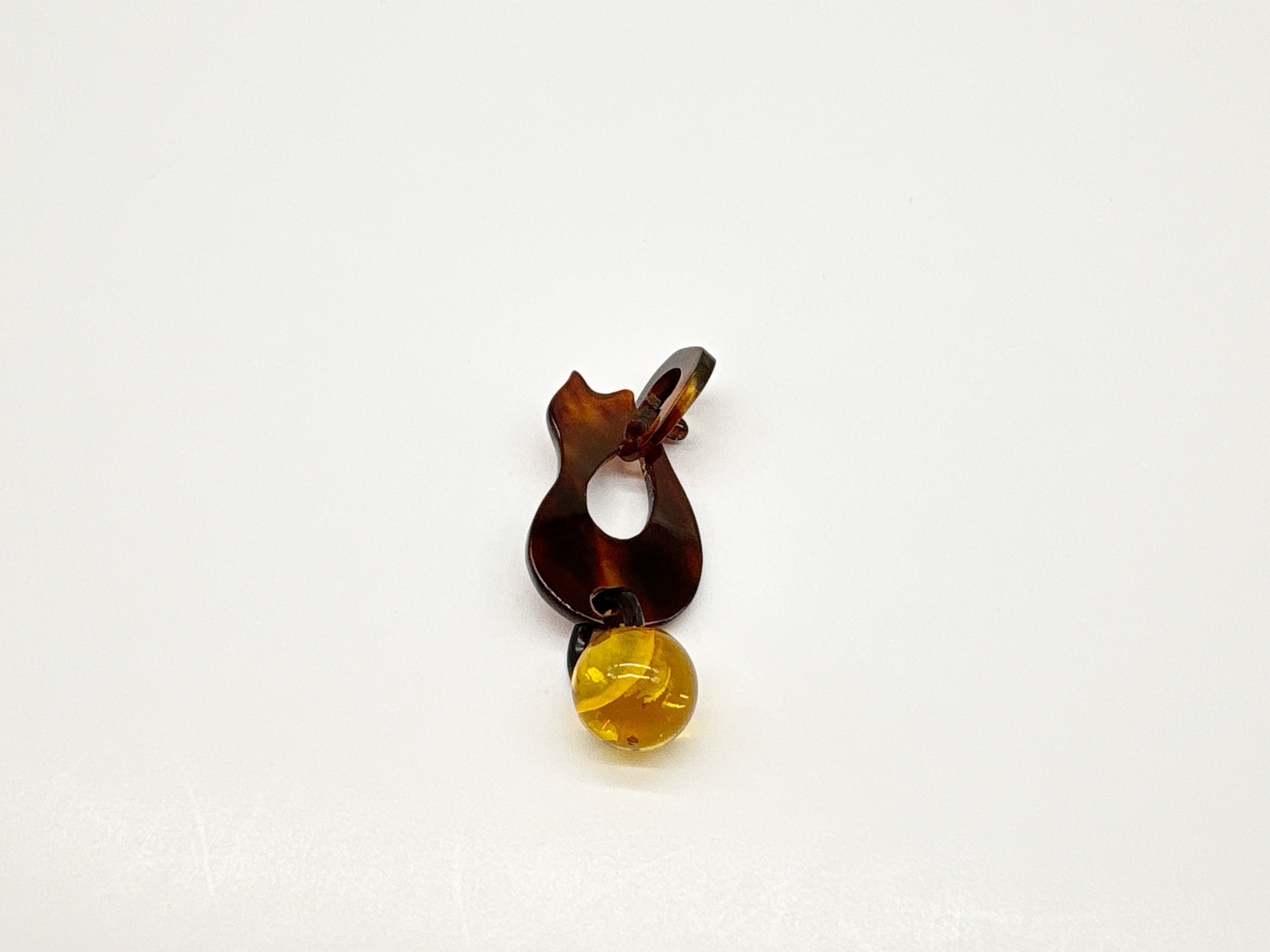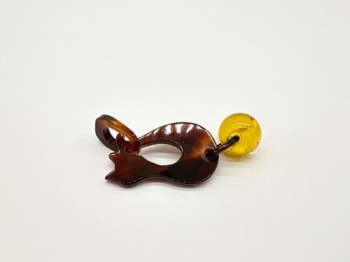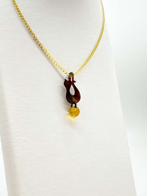 ●サイズ タテ約4.0cm×ヨコ約1.6cm(バチカン含む) ●説明 本べっ甲 バラフ(背甲)使用 本琥珀(バルティックアンバー)使用 本べっ甲と本琥珀で作られた、ちょこんと座ったネコちゃんのシルエットがなんとも愛らしいペンダントです。丸みのある背中のラインや、小さくとがったお耳など、シンプルな中に“かわいさ”がぎゅっと詰め込まれています。首元に施したくり抜きが軽やかなアクセントとなり、デザイン全体をふんわりと優しい印象にしてくれます。ネコちゃんの足元には内包物(グリッター)が含まれた鮮やかなバルティックアンバーの丸いパーツを添え、ころんとした形がまるでお気に入りのおもちゃを大事に抱えているよう。揺れるたびにちょっとした表情の変化が生まれ、思わず見つめたくなるキュートな仕上がりです。天然素材を組み合わせているため、一つひとつ異なる質感と風合いを楽しめるのも魅力。派手になりすぎず、さりげなく愛らしさをプラスしてくれるため、普段使いはもちろん、ちょっと気分を上げたい日のワンポイントとしてもぴったりです。大人だからこそ似合う、上品でほんのり可愛いネコちゃんモチーフアクセサリー。自分へのご褒美にも、ネコ好きの方への贈り物にもおすすめです。こちらの金メッキの付属チェーンはサービスでお付けしておりますが、お手持ちのチェーンなどに通してもお使い頂ける商品です。画像にあるスピネルチェーン(別売り)と合わせて頂くと、より豪華な仕上がりになります。この子が、そっと笑顔を運ぶ。商品はこちらの梱包にて大切に発送致します。天然素材の為、色目やサイズ感は多少異なる場合がございます。※べっ甲及び琥珀等の天然素材はすべて本物です。通常希望小売価格¥11,000