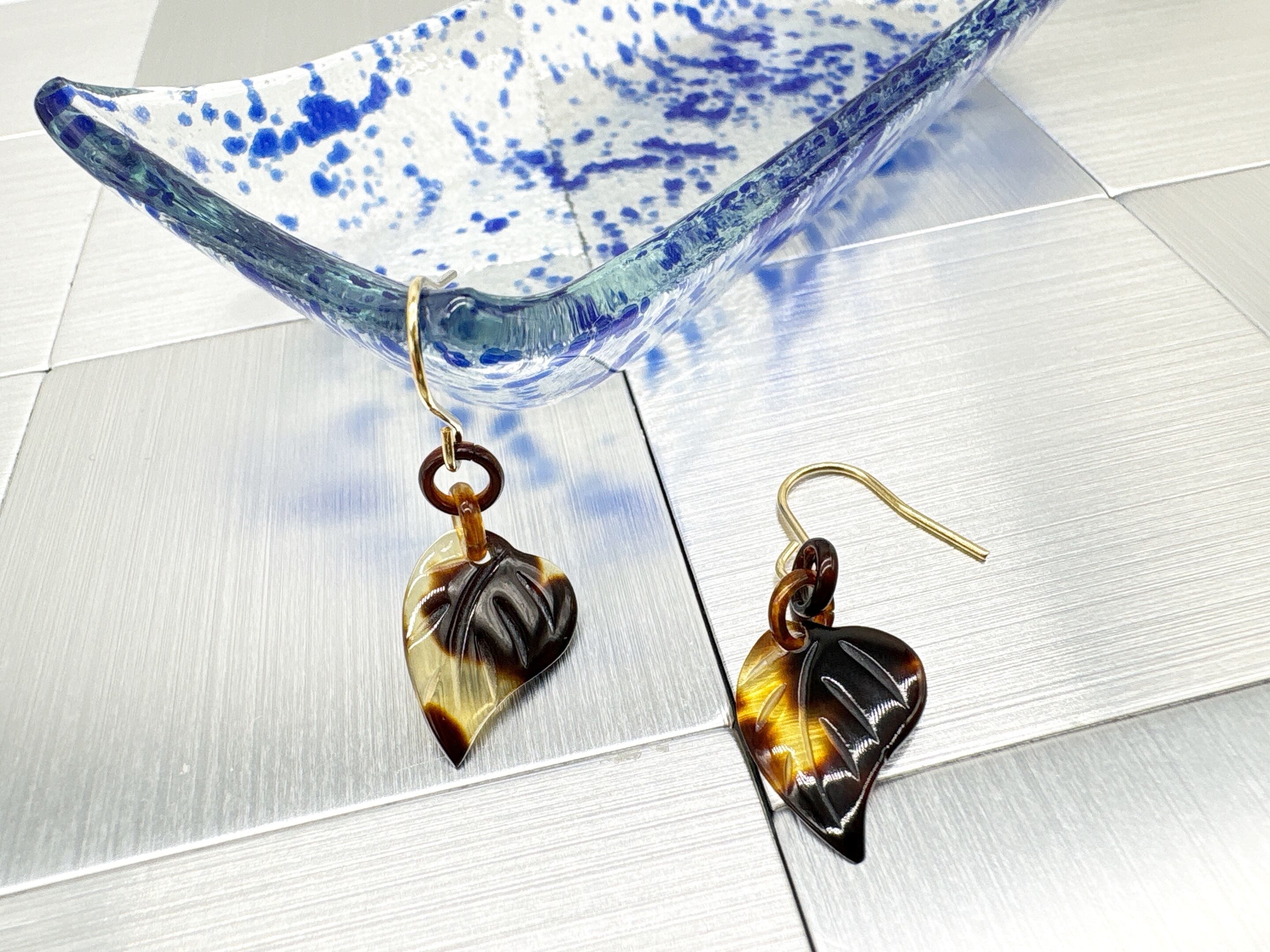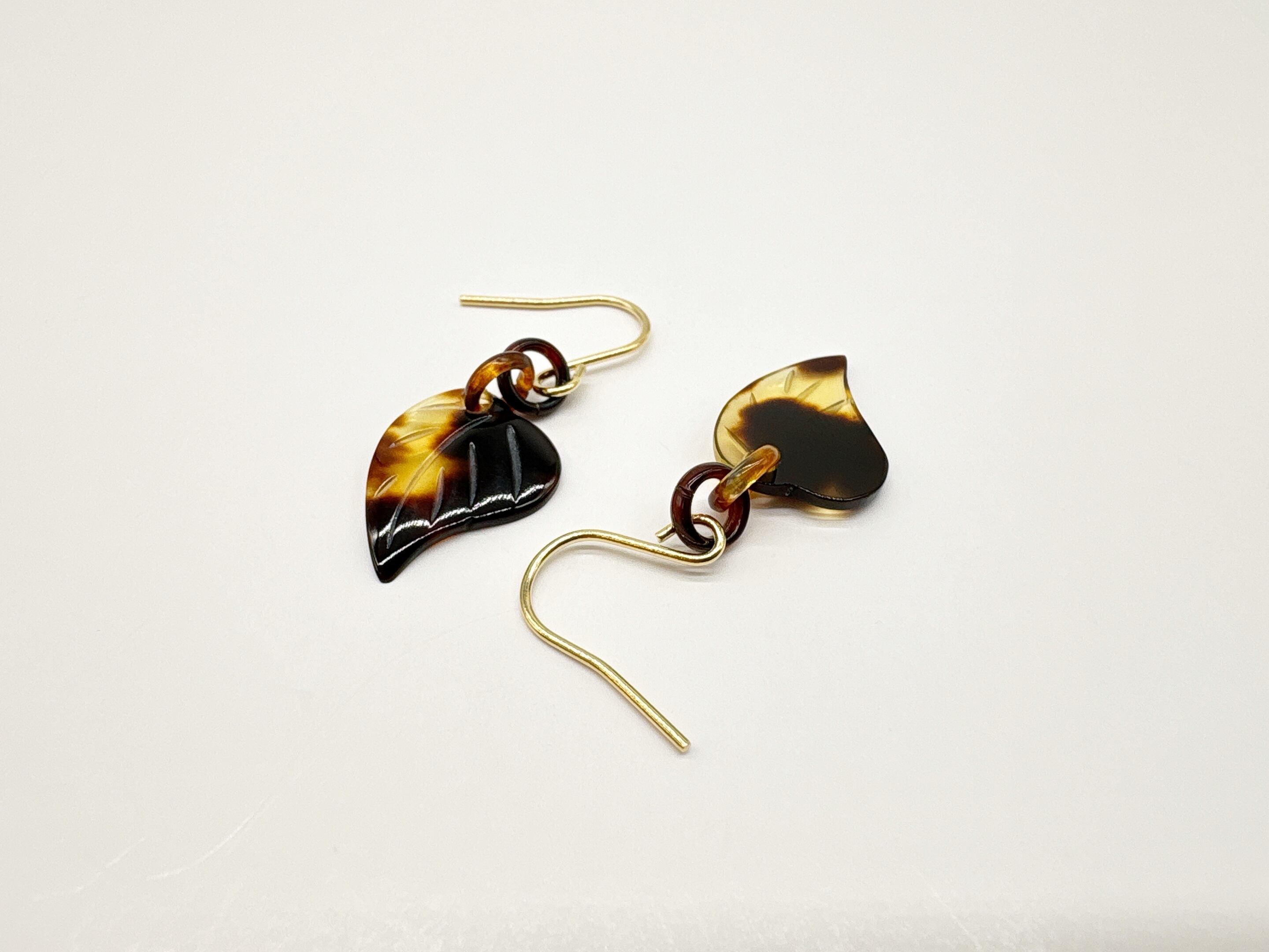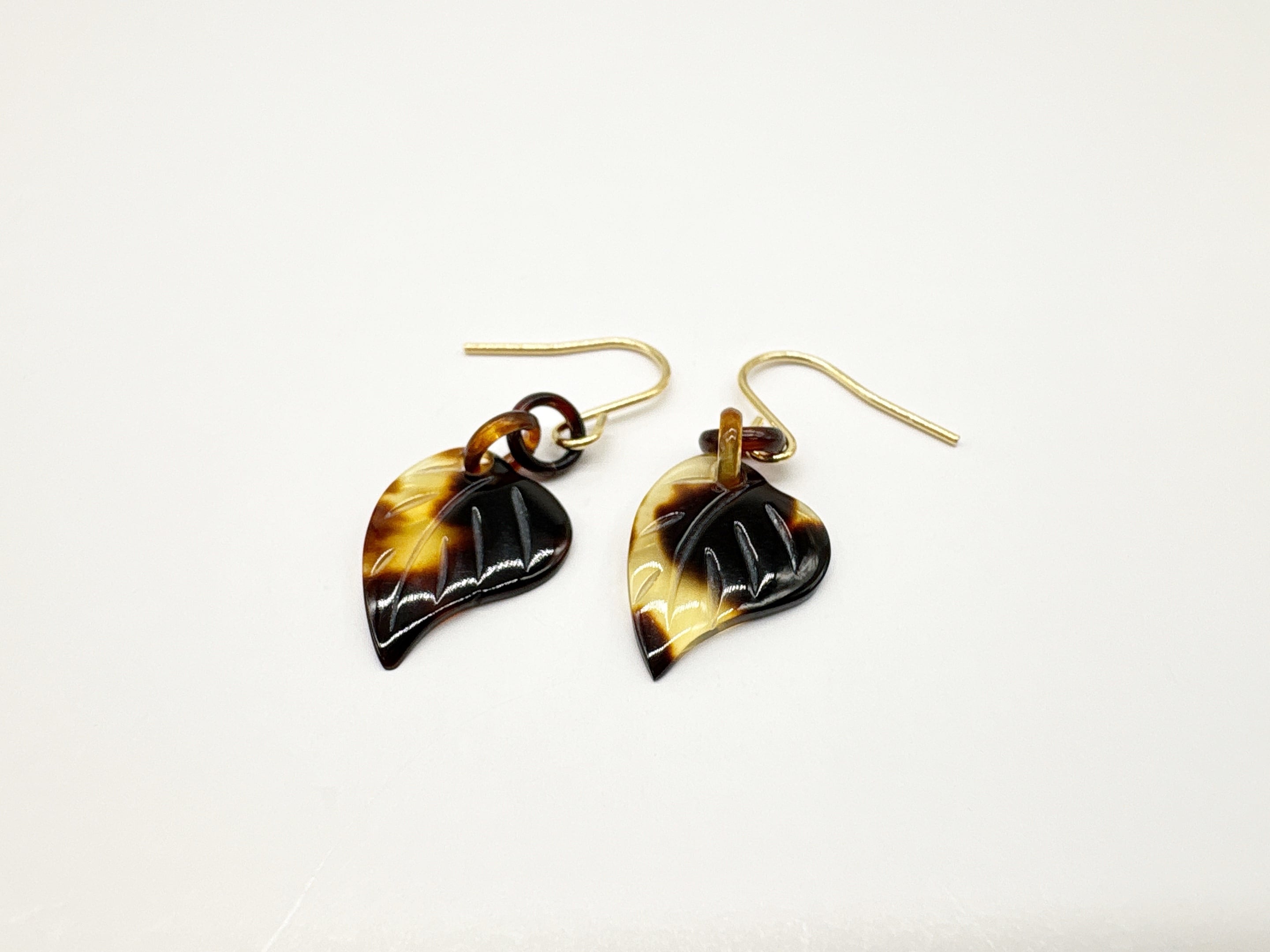 ●サイズ 縦約3.0cm(金具フック部分含む)×横約1.2cm ●説明 本べっ甲 バラフ(背甲)使用 金具 サージカルチタン使用 アメリカンフックタイプ 本べっ甲を用い、やわらかなリーフ(葉)をモチーフに仕立てたピアスです。自然の葉を思わせる、緩やかな曲線と先端に向かって細くなるフォルムが、耳元に軽やかな動きを添えます。リーフ部分には立体的な起伏を持たせ、べっ甲ならではの艶が陰影を生み、奥行きのある表情を引き出しています。一つひとつ異なる自然な表情が、過度に主張することなく、装いにさりげない存在感をもたらします。アメリカンフックタイプの金具を合わせることで、揺れ感を生かしたデザインに。顔まわりに沿ってやさしく動き、日常の装いからフォーマルな装いまで幅広くお使い頂ける万能な商品です!素材とデザインの美しさを大切にした、上品で落ち着いた佇まいのピアスです。金具はサージカルチタンのニッケルフリーを使用しているのでアレルギーの方にも安心してご使用頂けます。自然のかたちを映した、静かな美しさを耳元に。●べっ甲はとても軽いためお気軽にお付けいただけます。商品はこちらの梱包にて大切に発送致します。天然素材の為、色目やサイズ感は多少異なる場合がございます。※べっ甲及び琥珀等の天然素材はすべて本物です。通常希望小売価格¥11,000