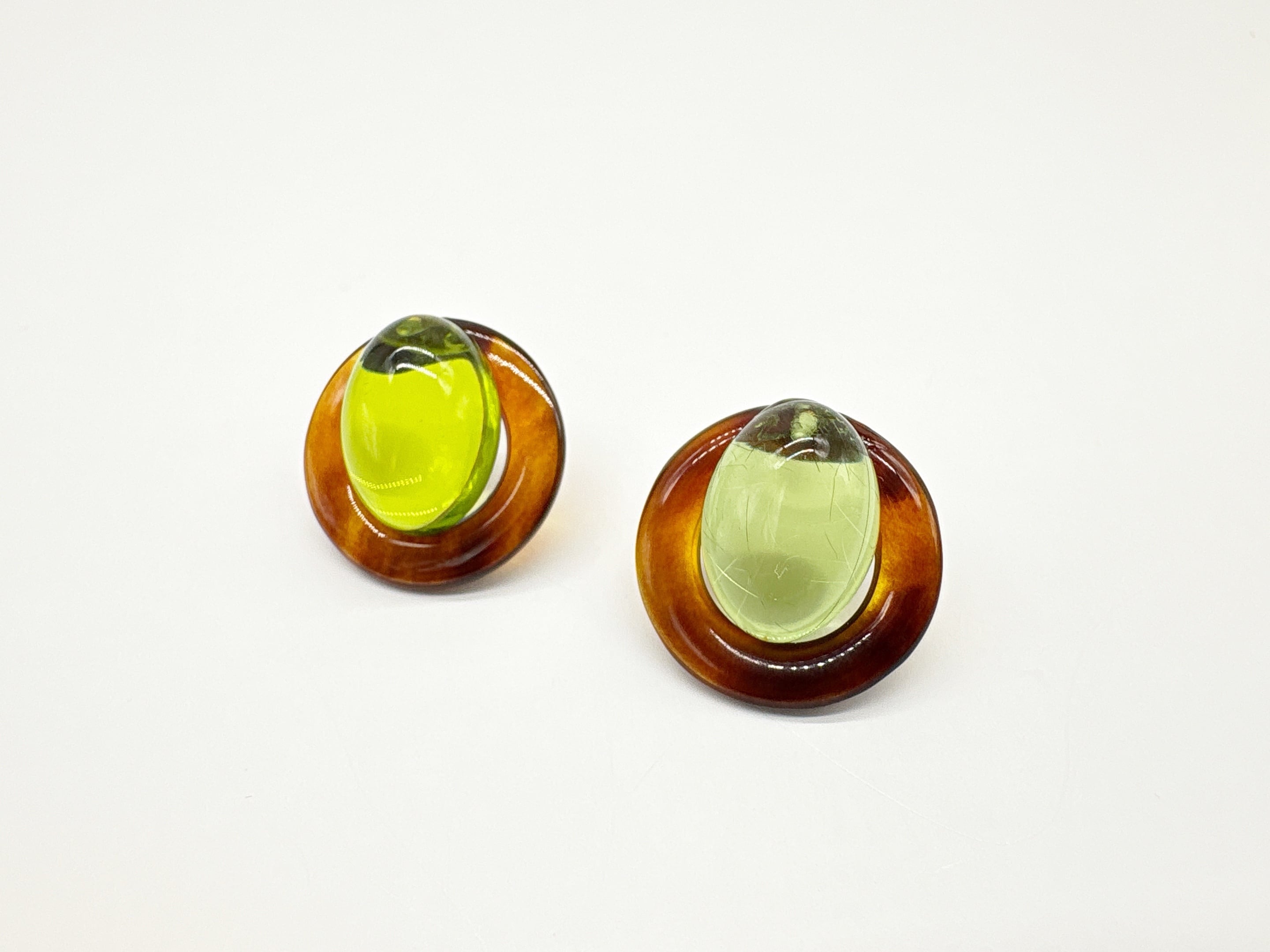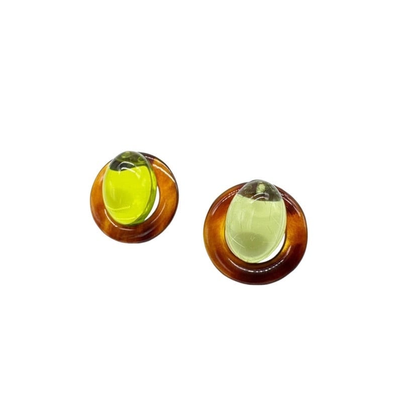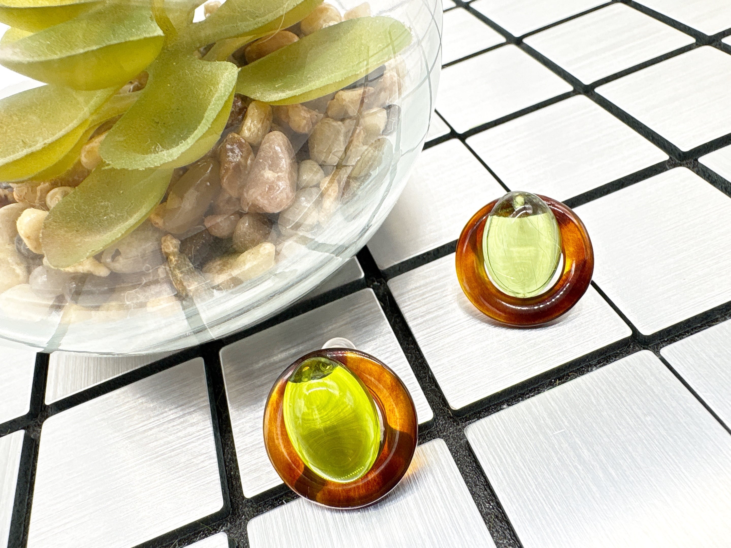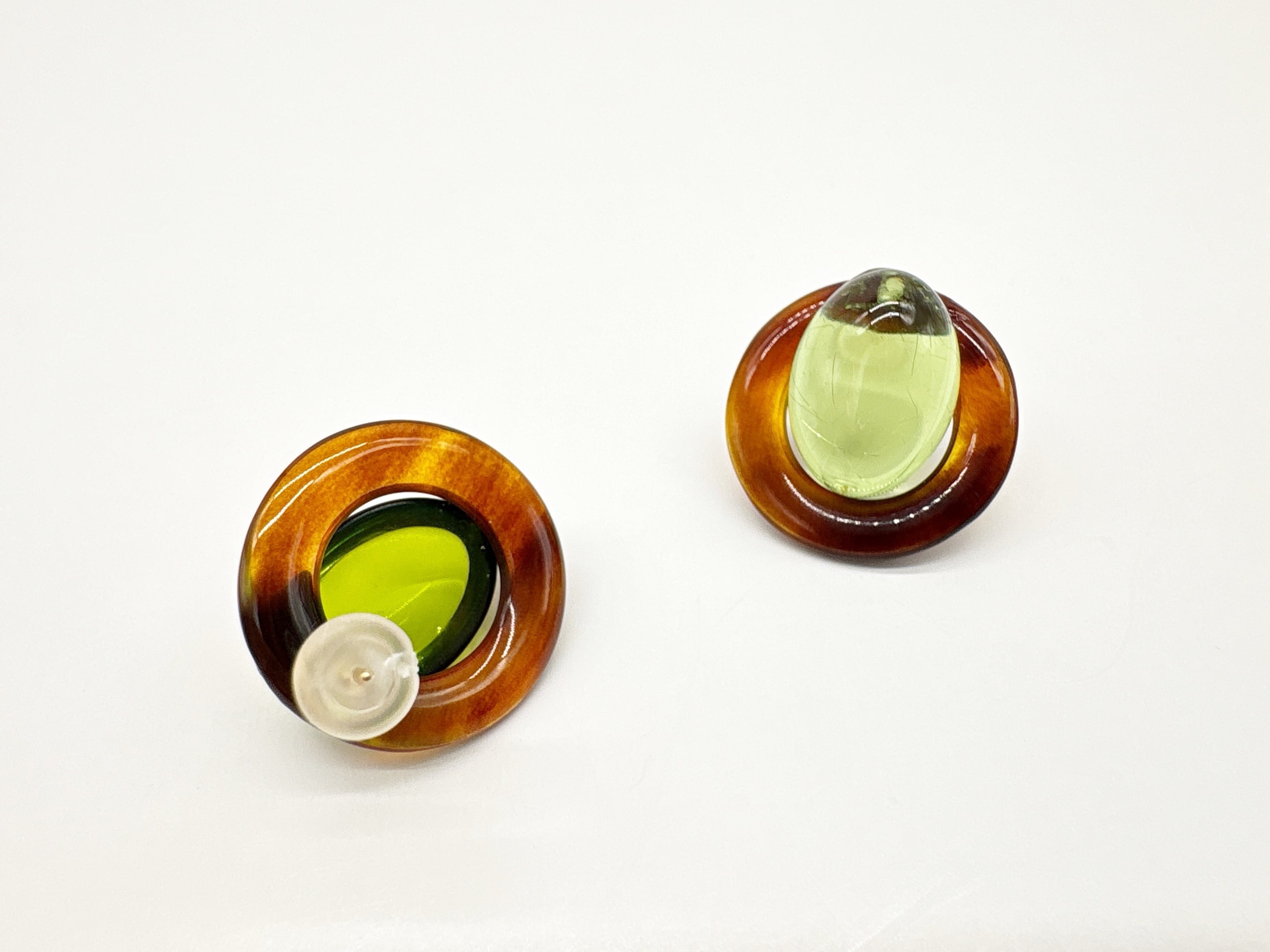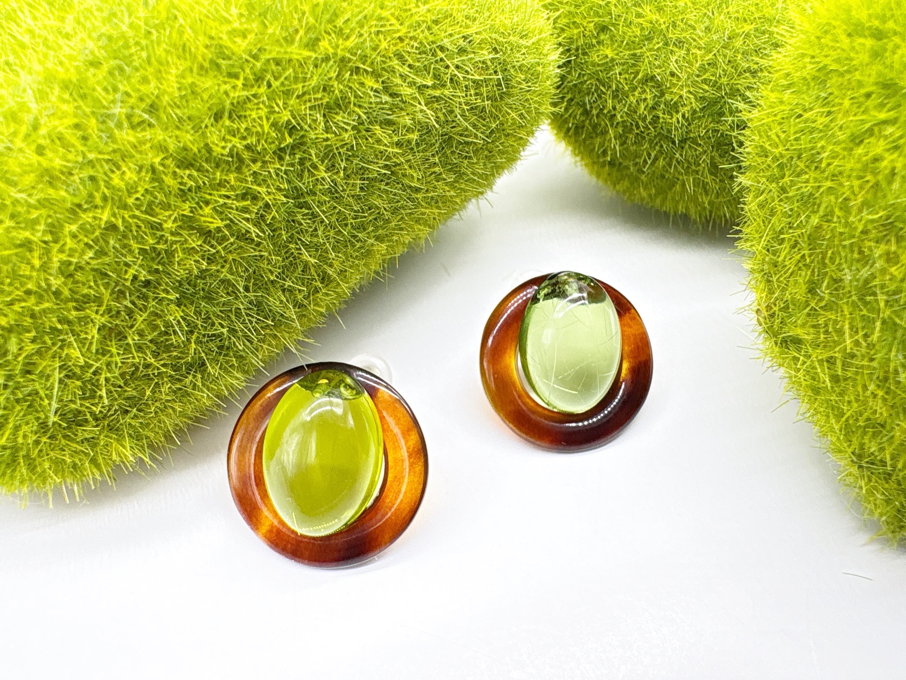 ●サイズ 縦約1.8cm×横約1.7cm ●説明 本べっ甲 バラフ(背甲)使用 本琥珀(カリビアングリーン)使用 金具 サージカルチタン使用 直結タイプ キャッチシリコンゴム使用 本べっ甲に本琥珀カリビアングリーンを重ねるようにあしらった、奥行きのある表情が特徴のピアスです。丸みを持たせたべっ甲の上に、なめらかなオーバルタイプの琥珀を添え、異なる素材同士の質感の違いを楽しめる一対に仕上げています。べっ甲のしっかりとした輪郭が全体を引き締め、その上にのるカリビアングリーンが柔らかな印象を添えることで、落ち着きと軽やかさをあわせ持つ佇まいとなっています。正面から見るとすっきりとまとまり、角度を変えることで素材の重なりや立体感が感じられる点も魅力です!大きさはほどよく、耳元に自然におさまりながらも、存在感はしっかりと感じられます。装いを選ばず、普段のコーディネートにはさりげかいアクセントとして、また落ち着いた場面や和装にも静かに寄り添います。素材の組み合わせと形が生み出す、奥深い味わいをお楽しみください。金具はサージカルチタンのニッケルフリーを使用しているのでアレルギーの方にも安心してご使用頂けます。異なる素材が重なり合い、静かな奥行きを感じさせる一品。●べっ甲はとても軽いためお気軽にお付けいただけます。商品はこちらの梱包にて大切に発送致します。天然素材の為、色目やサイズ感は多少異なる場合がございます。※べっ甲及び琥珀等の天然素材はすべて本物です。通常希望小売価格¥14,000