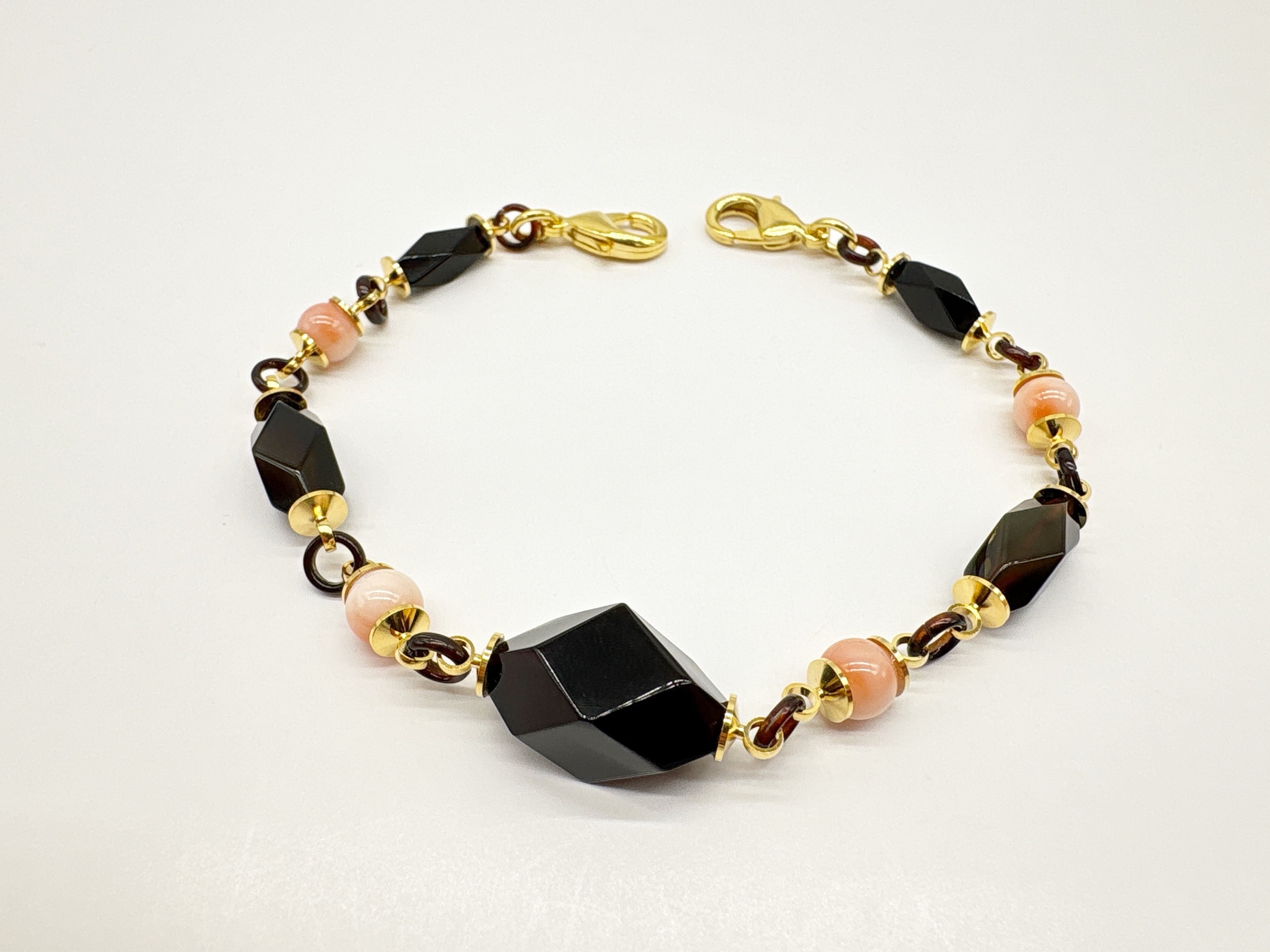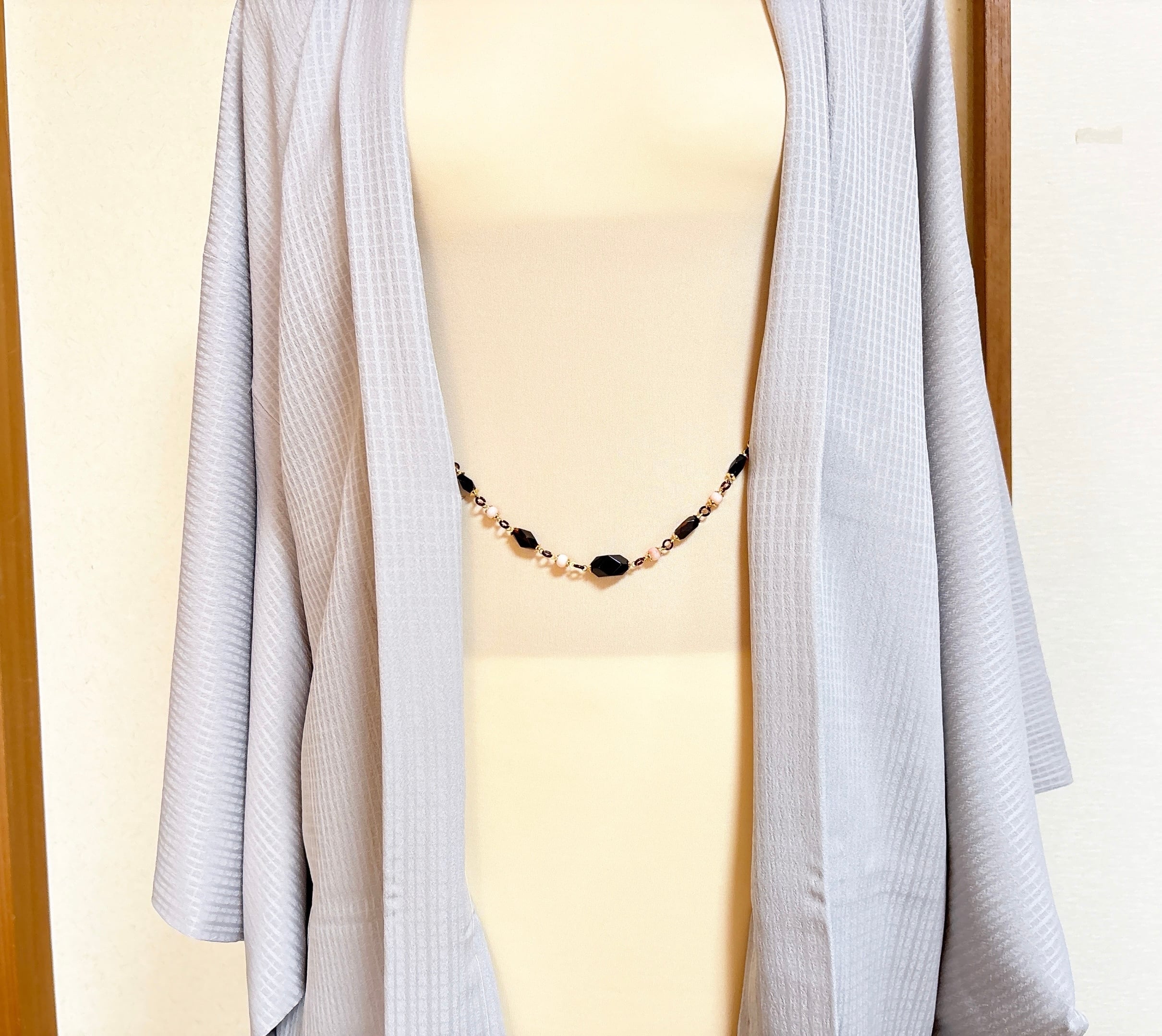 ●サイズ 全長約22.3cm(金具含む)●説明 本べっ甲 バラフ(背甲)使用 もも珊瑚使用 留具メッキカギフック使用 ユニセックス対応 艶やかに磨かれた本べっ甲をふんだんに使用し、もも珊瑚をバランスよく組み合わせた羽織紐です。中央だけでなく全体に多面カットを施した存在感のあるべっ甲パーツを用い、胸元の印象をほどよく引き締めています。そこに小ぶりで愛らしいもも珊瑚をリズムよく連ね、単調にならないよう動きのある表情に仕上げました。多面カットのべっ甲は、光の当たり方や見る角度によって表情を変え、羽織の動きに合わせて立体感を生み出します。要所にあしらったもも珊瑚がやわらかなアクセントとなり、全体の調和を整えています。程よいボリューム感のため、日常の羽織姿にはもちろん、装いを整えたい場面にも取り入れやすく、装いを選ばず幅広くお使いいただけます。天然素材ならではの質感と、丁寧な仕立てによる安定した美しさが魅力の一品。胸元に上品な存在感を添え、長くご愛用いただける羽織紐です。商品はこちらの梱包にて大切に発送致します。多面に映る素材の美しさが、装いに静かな奥行きを添えます。天然素材の為、色目やサイズ感は多少異なる場合がございます。※べっ甲及び琥珀等の天然素材はすべて本物です。通常希望小売価格¥27,000