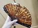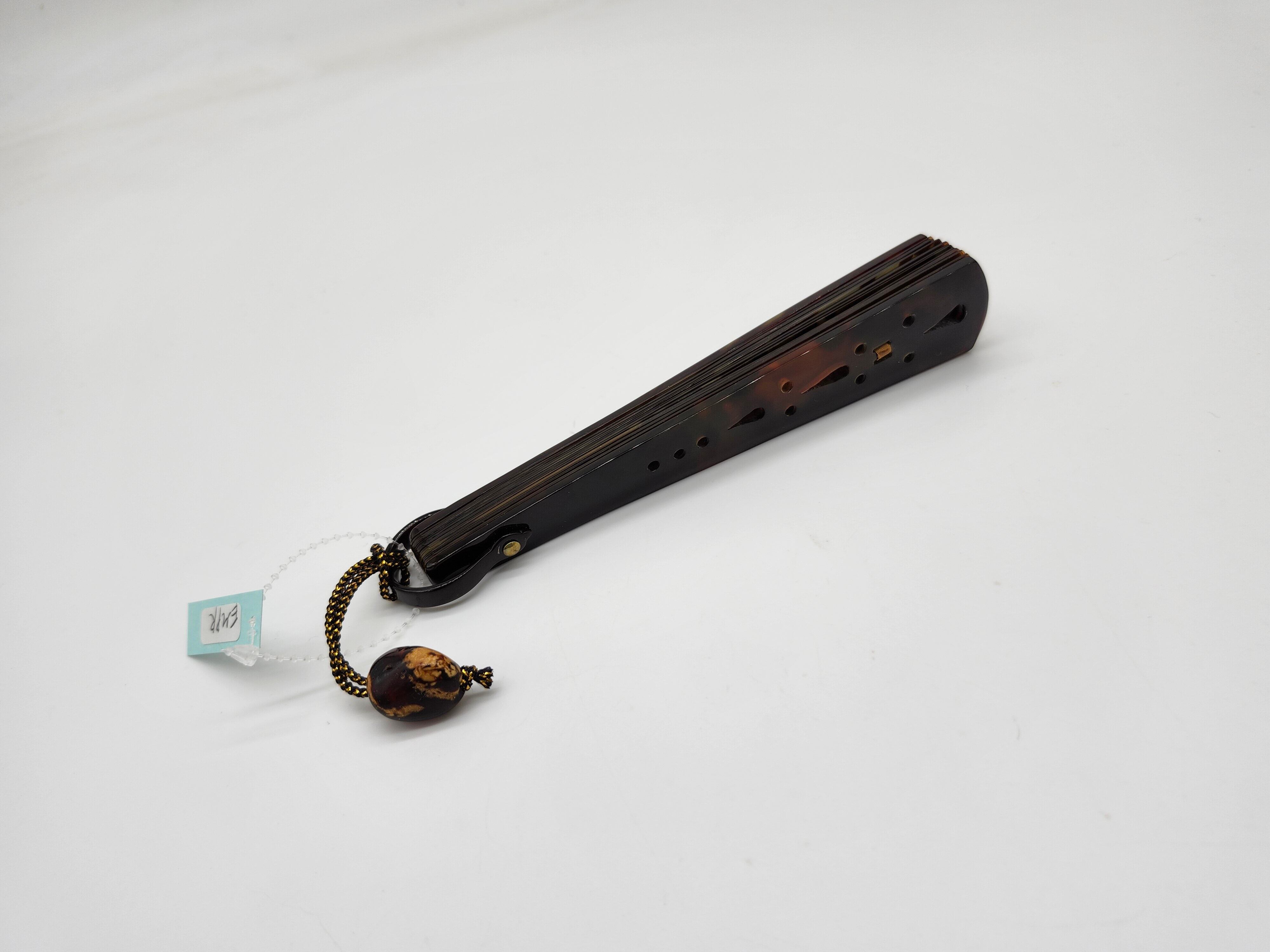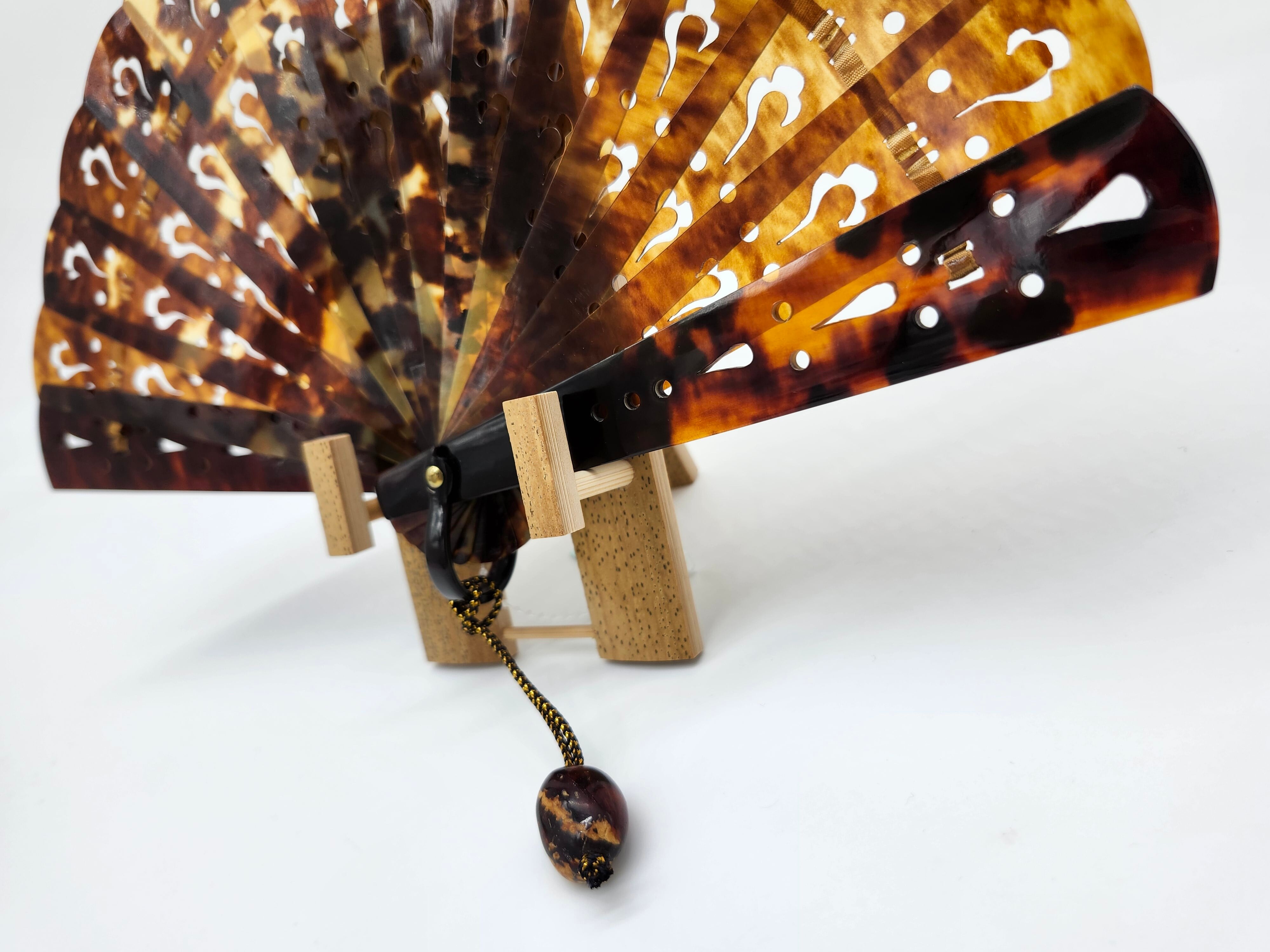 ●サイズ 直径約16cm 開扇時幅約27cm ●説明 バラフ(背甲)使用 折り畳み可能 扇子立て付 飾り琥珀使用 ※べっ甲及び琥珀等の天然素材はすべて本物です。