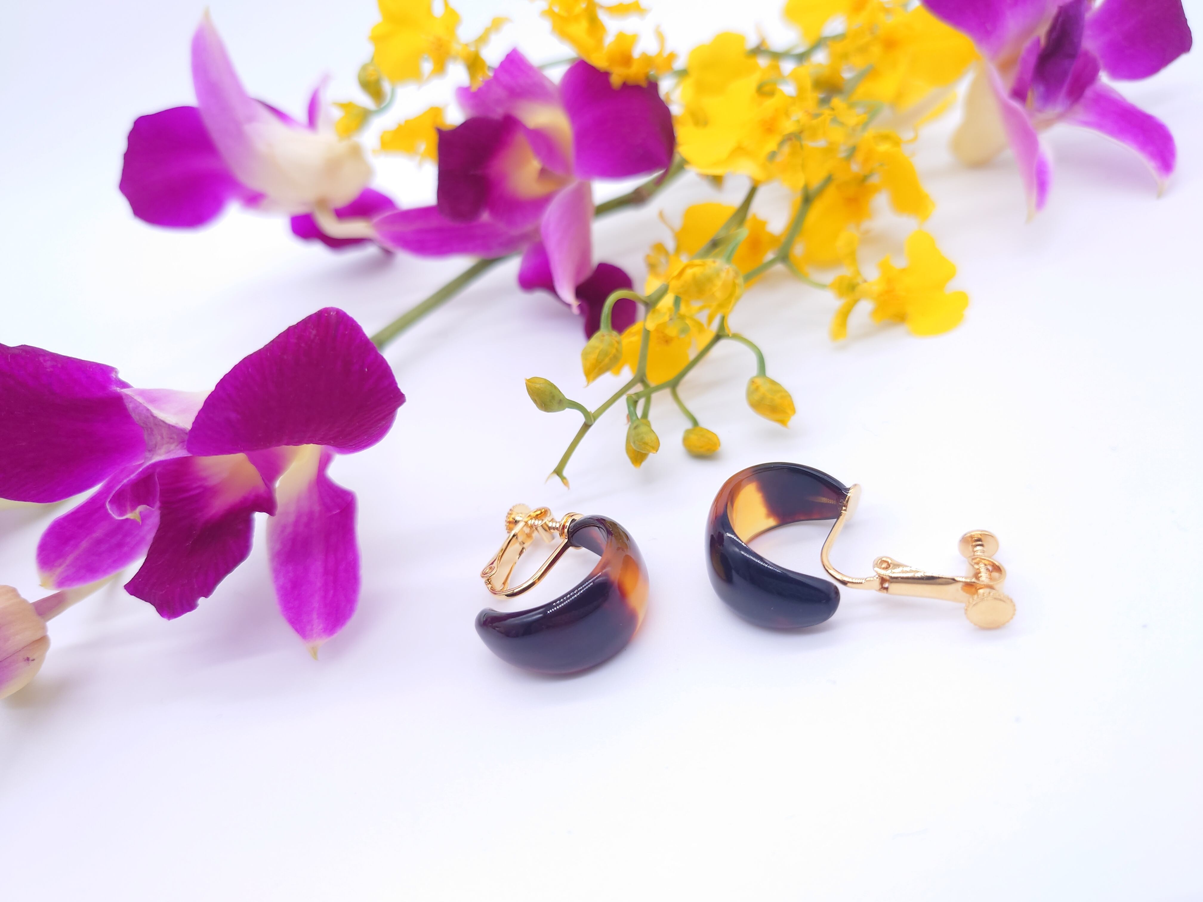 本べっ甲Gタイプ直結イヤリング。シーンを選ばずいつでも着けて頂きたい商品です。特にカジュアルではとてもカワイイ感じにお顔を引き立ててくれる万能アイテム!当ショップ内でも定番人気アイテム!リーズナブルでお買い求めやすい価格となっていますので、べっ甲が初めてという方でも着けて頂けるイヤリングです! ※べっ甲及び琥珀等の天然素材はすべて本物です。