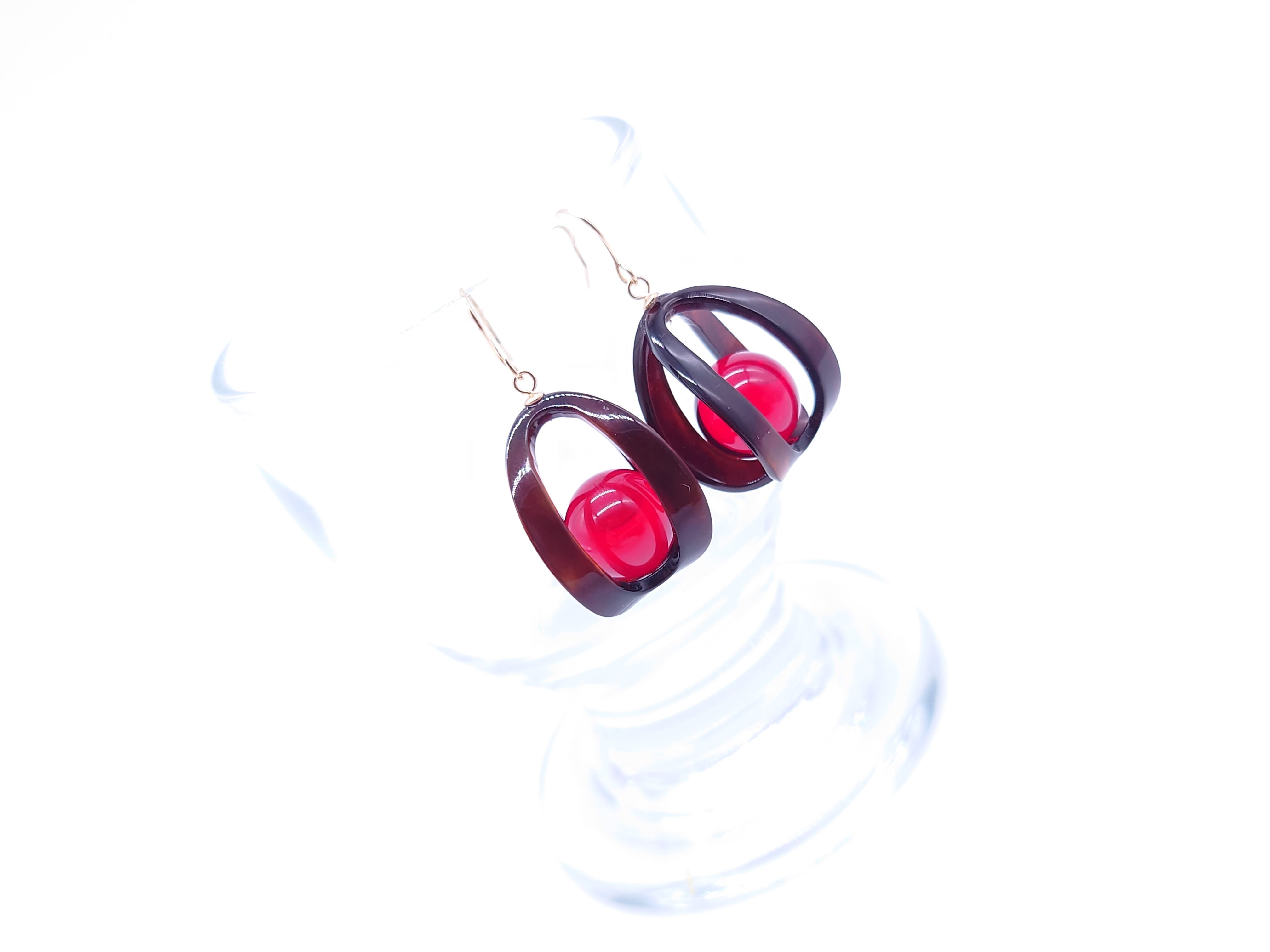 カゴの中に琥珀が入っておりユラユラと耳元で輝きます!定番商品ではあるもののその技術は大変手間暇がかかる技術もの!他にはないハンドメイドの良さを感じてください!