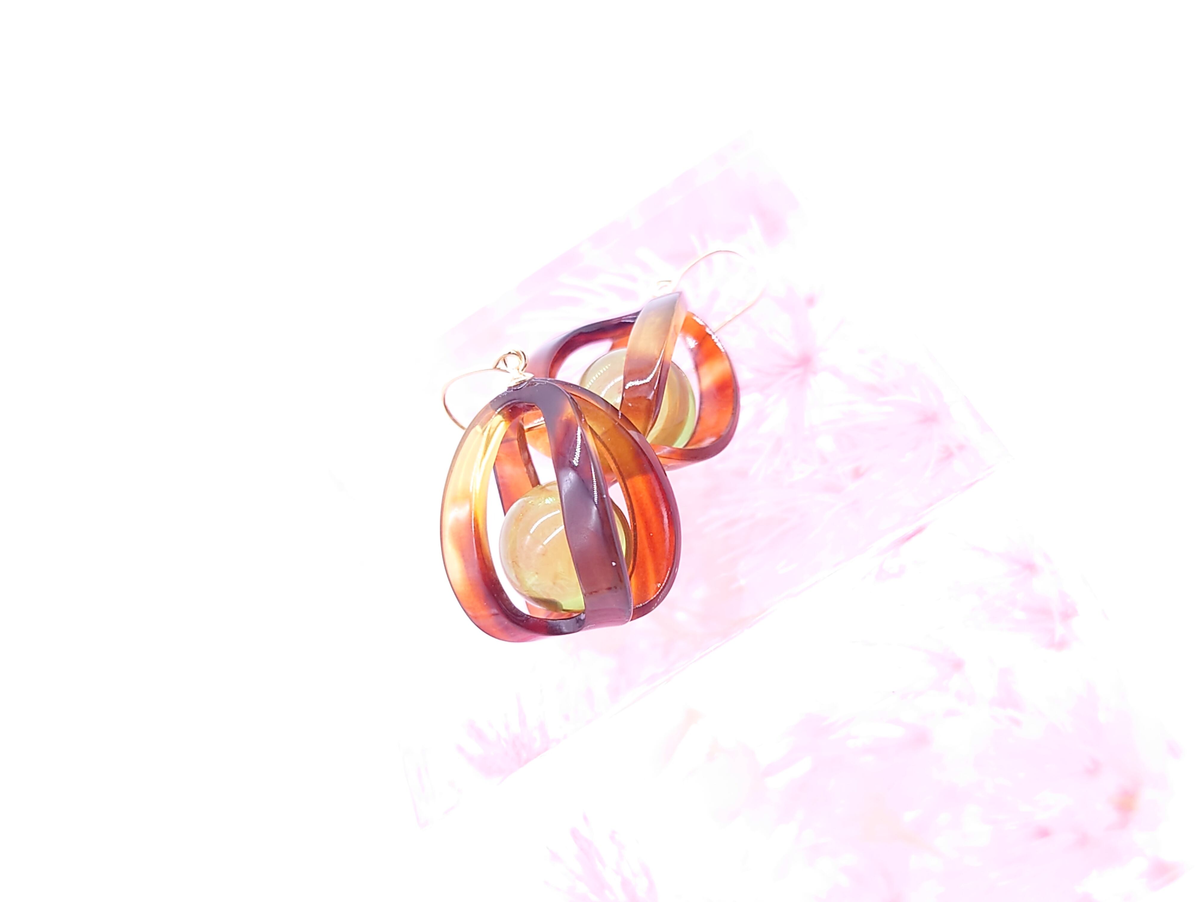 カゴの中に琥珀が入っておりユラユラと耳元で輝きます!定番商品ではあるもののその技術は大変手間暇がかかる技術もの!他にはないハンドメイドの良さを感じてください!