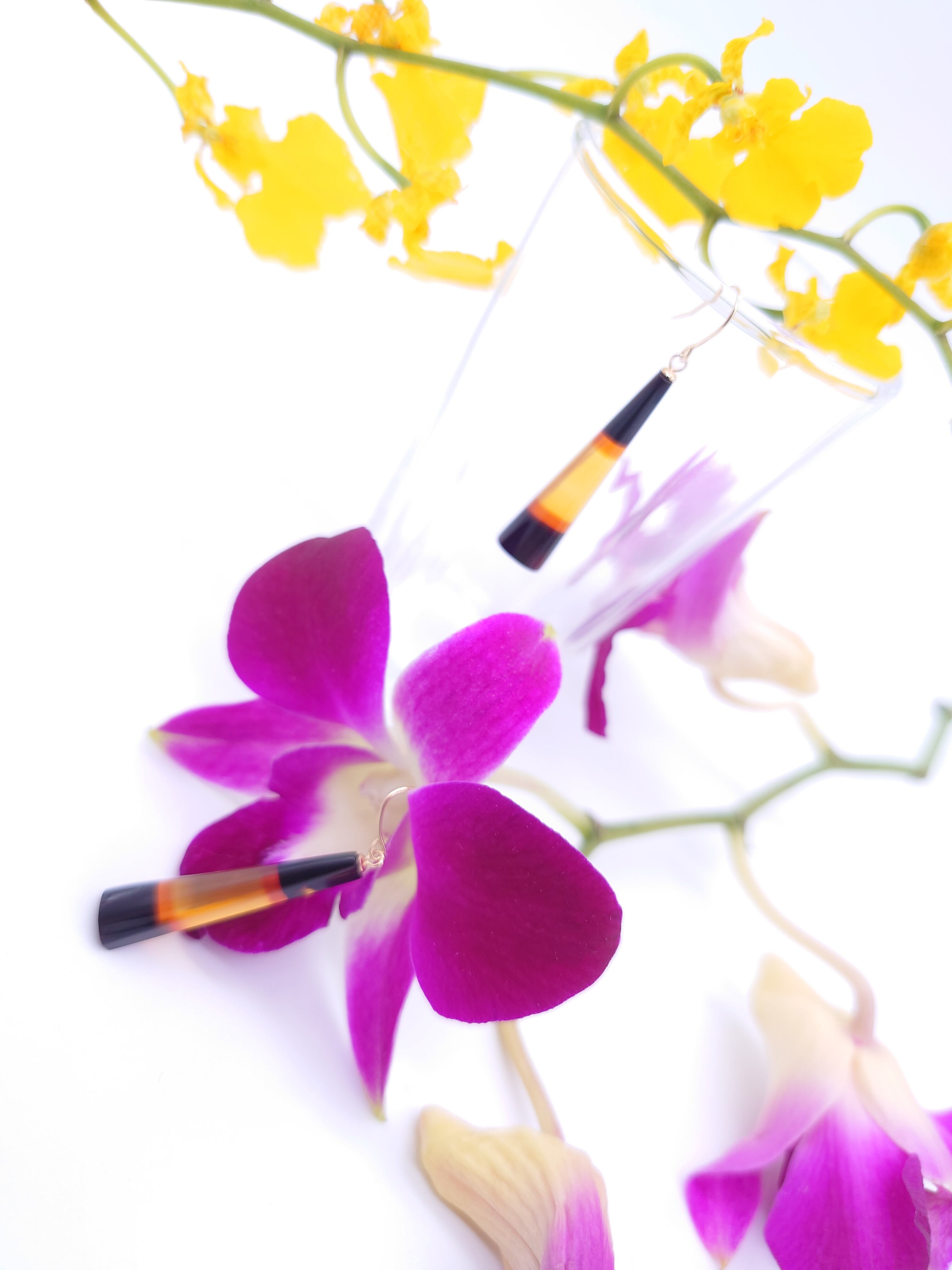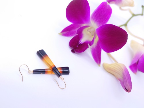 細長タイプで耳元でユラユラとカワイイ、小顔効果抜群のアイテムを是非! ※べっ甲及び琥珀等の天然素材はすべて本物です。