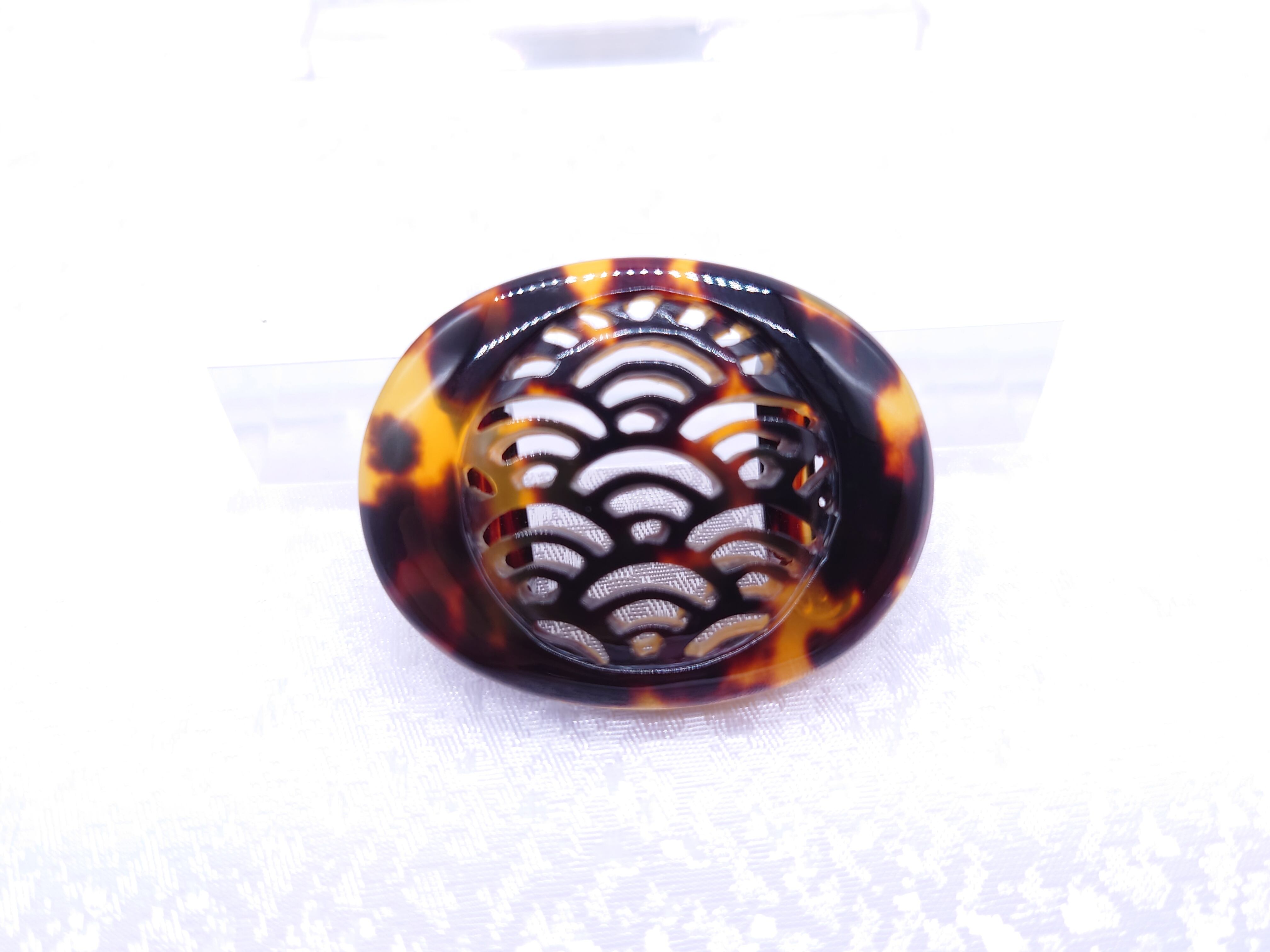 ●サイズ ヨコ約38ミリ×タテ約30ミリ 帯サイズ4分まで対応 ●説明 バラフ(背甲)使用 共足べっ甲 青海波透かし彫り ※べっ甲及び琥珀等の天然素材はすべて本物です。