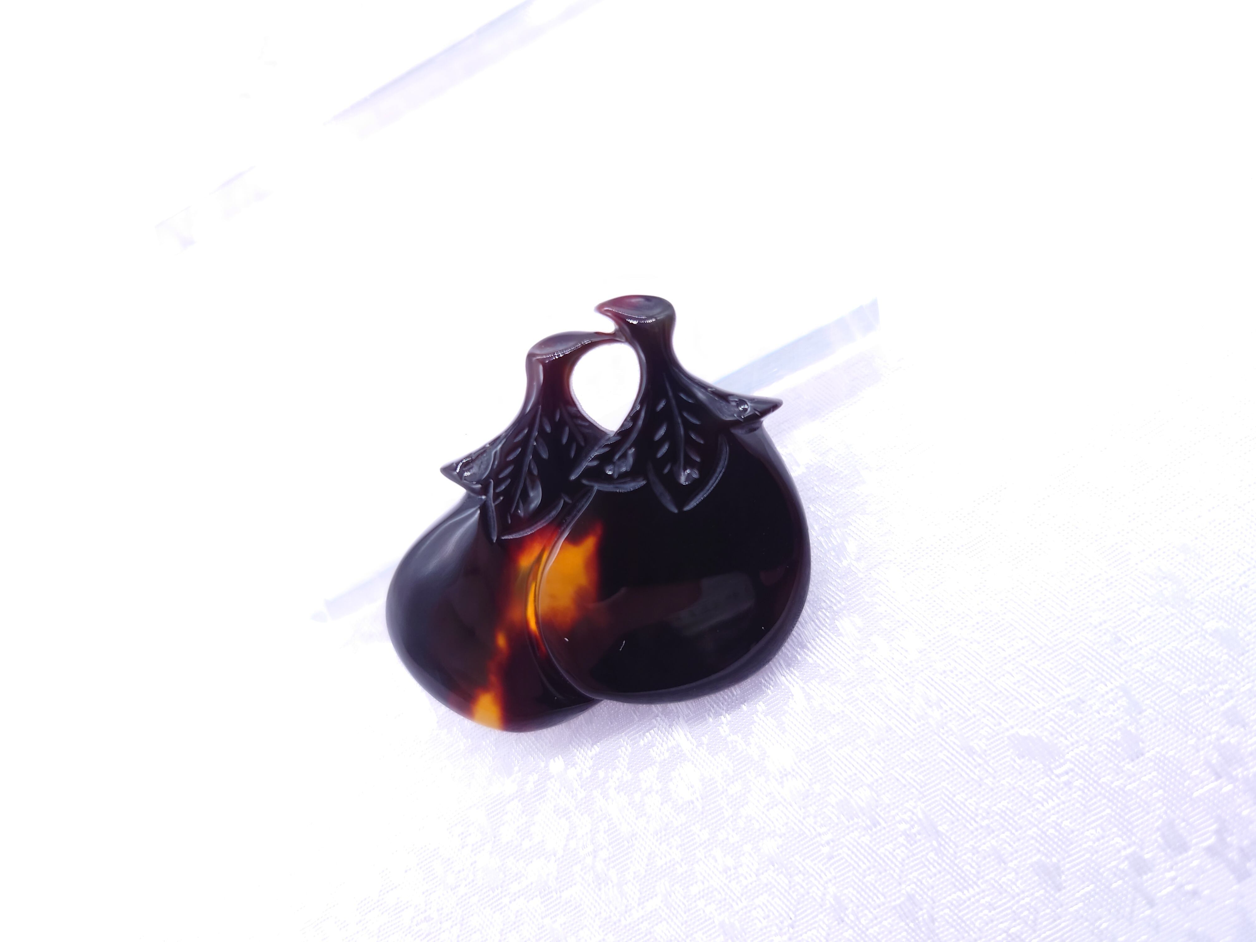 高級感あふれる本鼈甲(ほんべっこう)を使用した帯留めです。茄子のモチーフを美しいバラフ甲で表現した、高級感あふれる一品です。また茄子は、毛がないことから家内安全や、何事も成し遂げるとも言われており、縁起が良い物とされています。是非ワンランク上の、大人のお洒落をお楽しみ下さい。母の日や、敬老の日のプレゼントとしても大変喜ばれオススメの商品です。