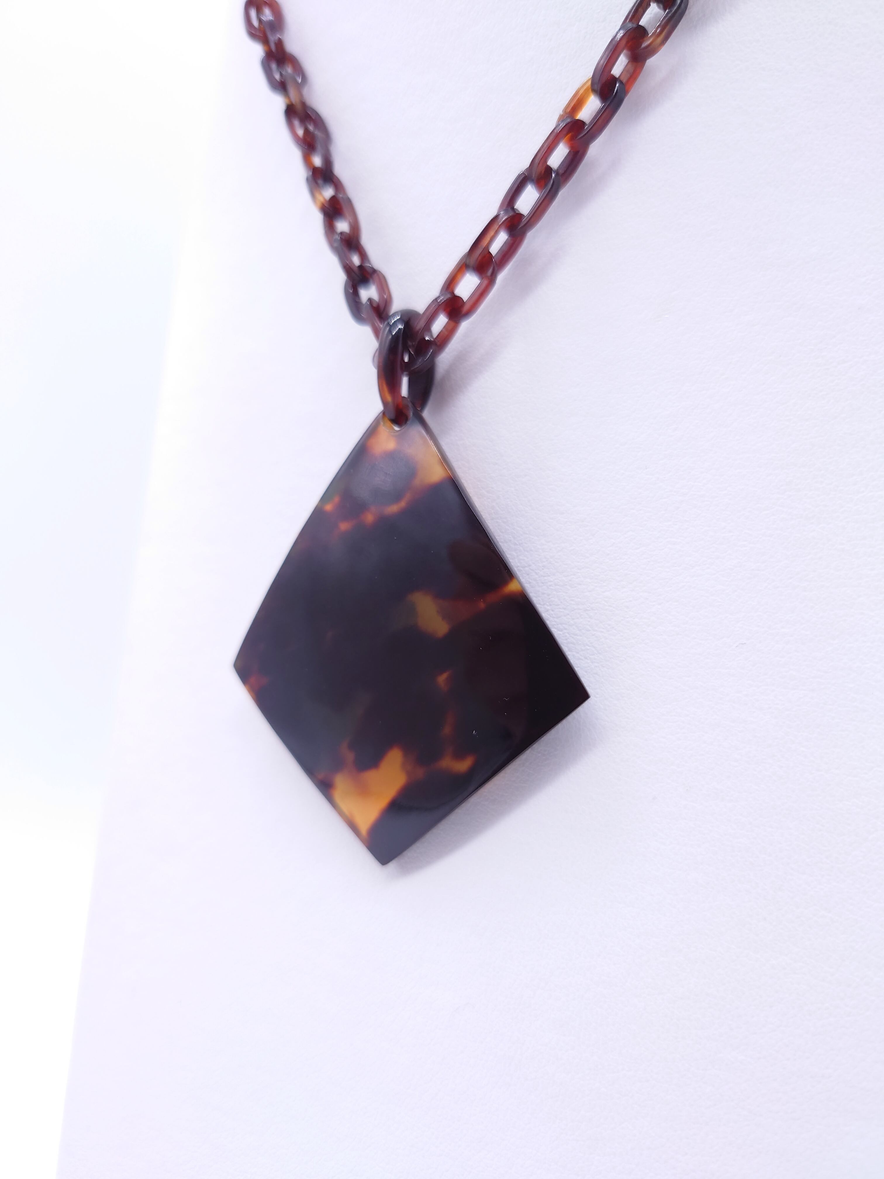 本べっ甲ひし形タイプのオーソドックスなペンダントは少し大きめで使いやすいアイテムです!べっ甲が初めての方にもオススメのペンダントですので大切な方へのプレゼントにも最適!この機会に是非、ご購入下さい!