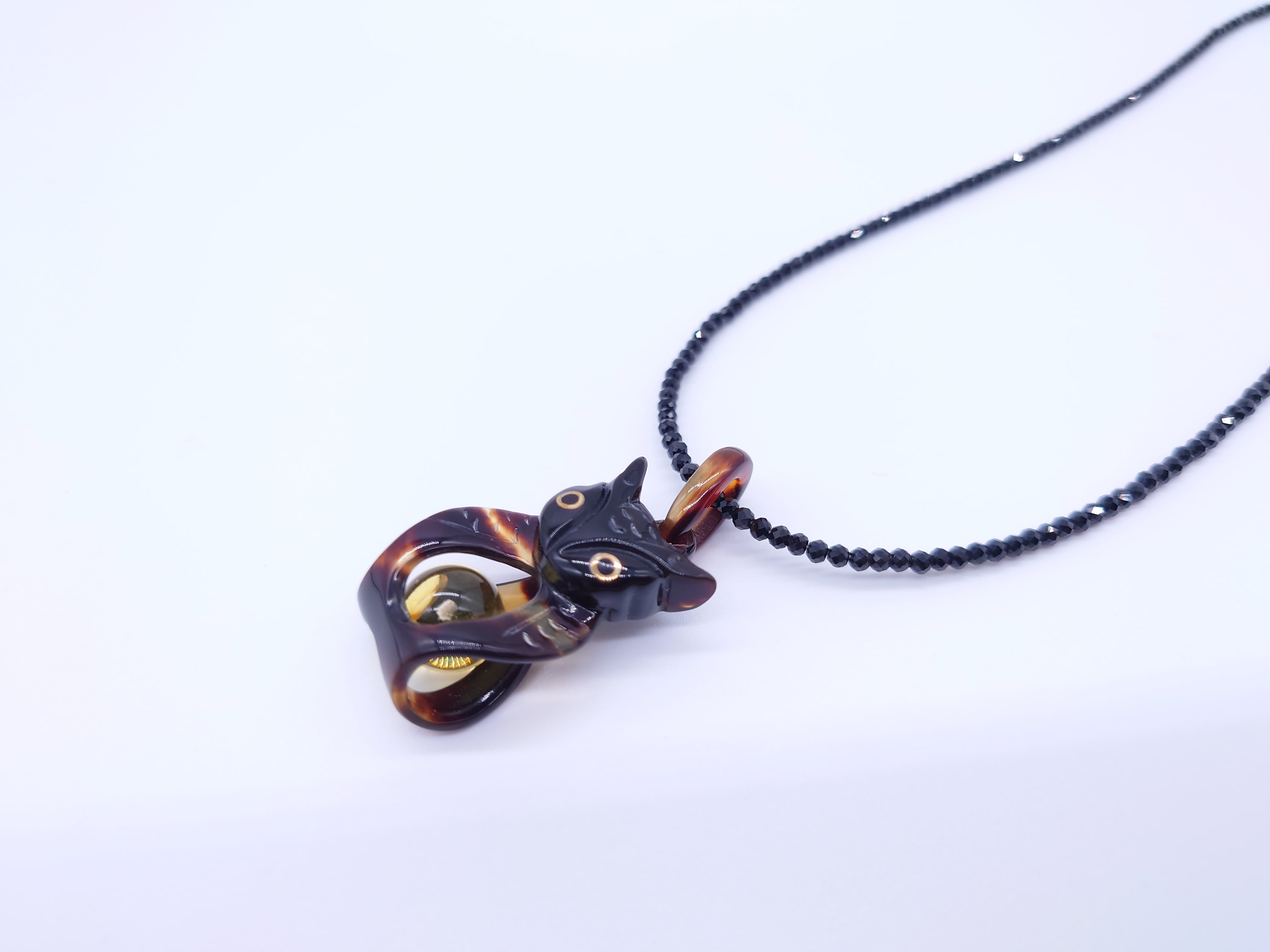 フクロウをモチーフにした可愛いフクロウさんは職人さんの手によって丁寧に作られた作品です。仕上げにクルリと鼈甲を熱で曲げ、中に琥珀丸玉を入れてお洒落に仕上げたペンダント!手間暇かけて作られたフクロウさんと一緒にお出かけしてあげてください。Tシャツなどカジュアルスタイルに合わせて欲しいアイテムです!プレゼントにも最適なのでこの機会に是非。 ※べっ甲及び琥珀等の天然素材はすべて本物です。