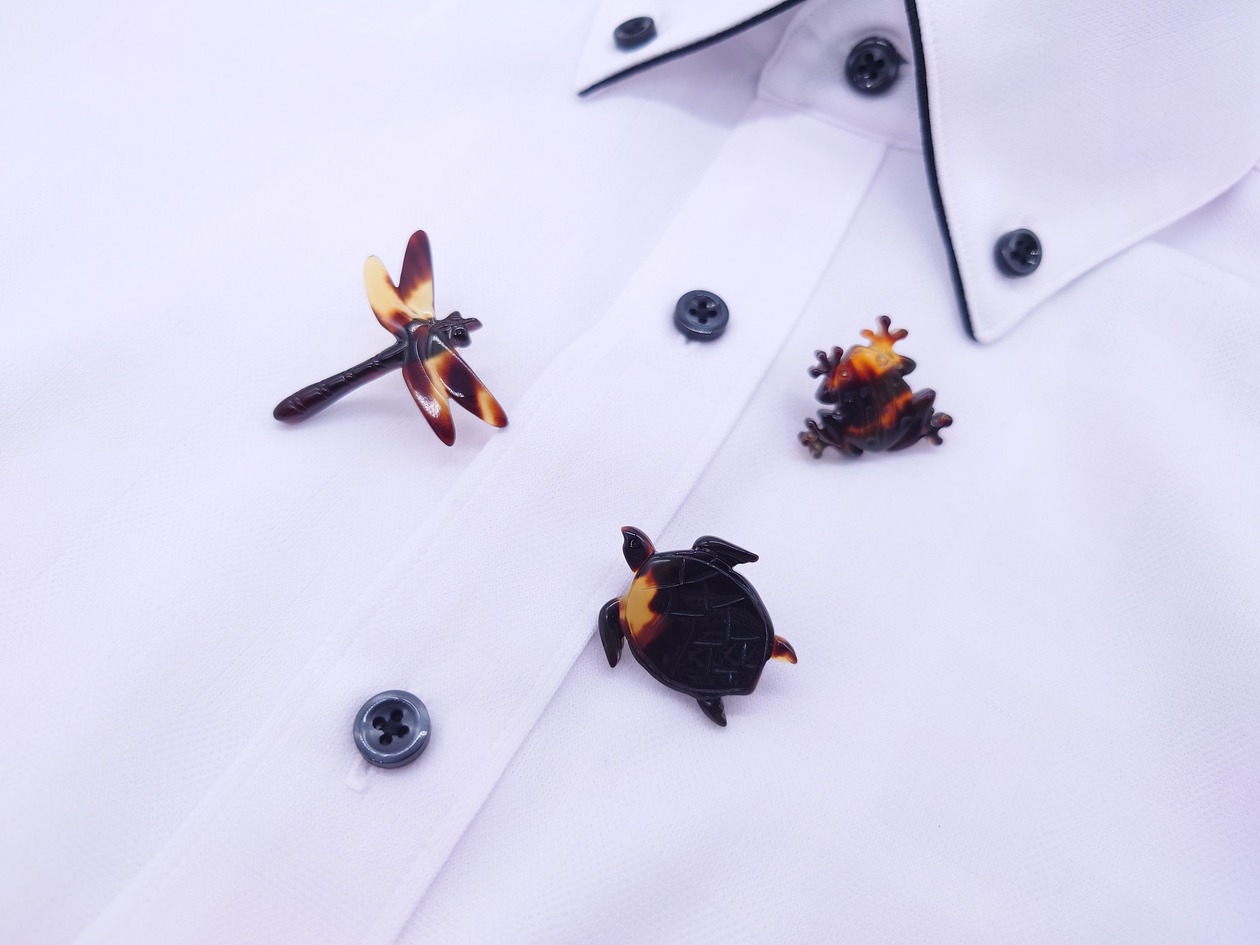 ●サイズ タテ約2.5cm×ヨコ約2.8cm ●説明 バラフ(背甲)使用 ピン金具キャッチ式 (金メッキ) カエルモチーフ ※べっ甲及び琥珀等の天然素材はすべて本物です。