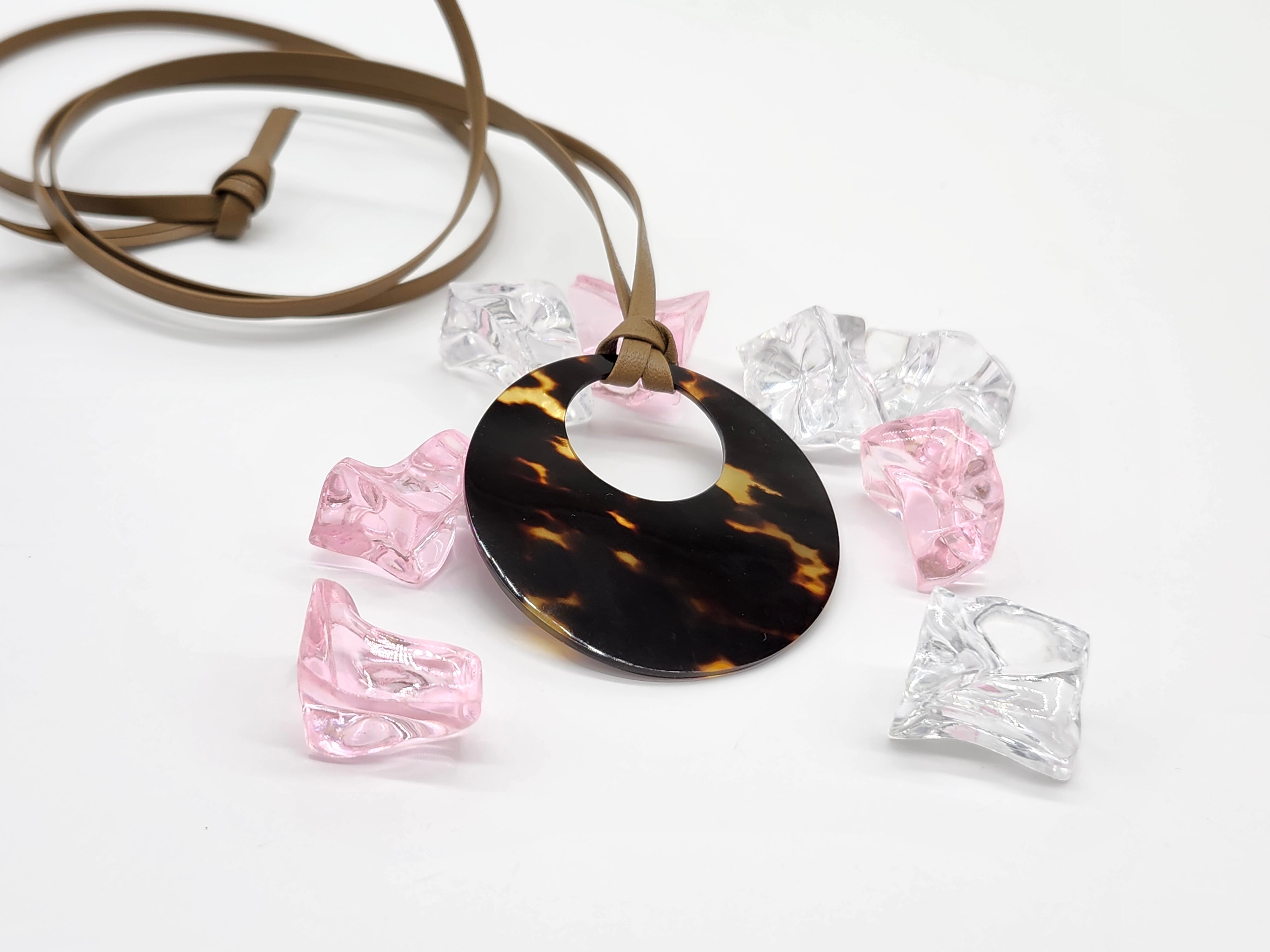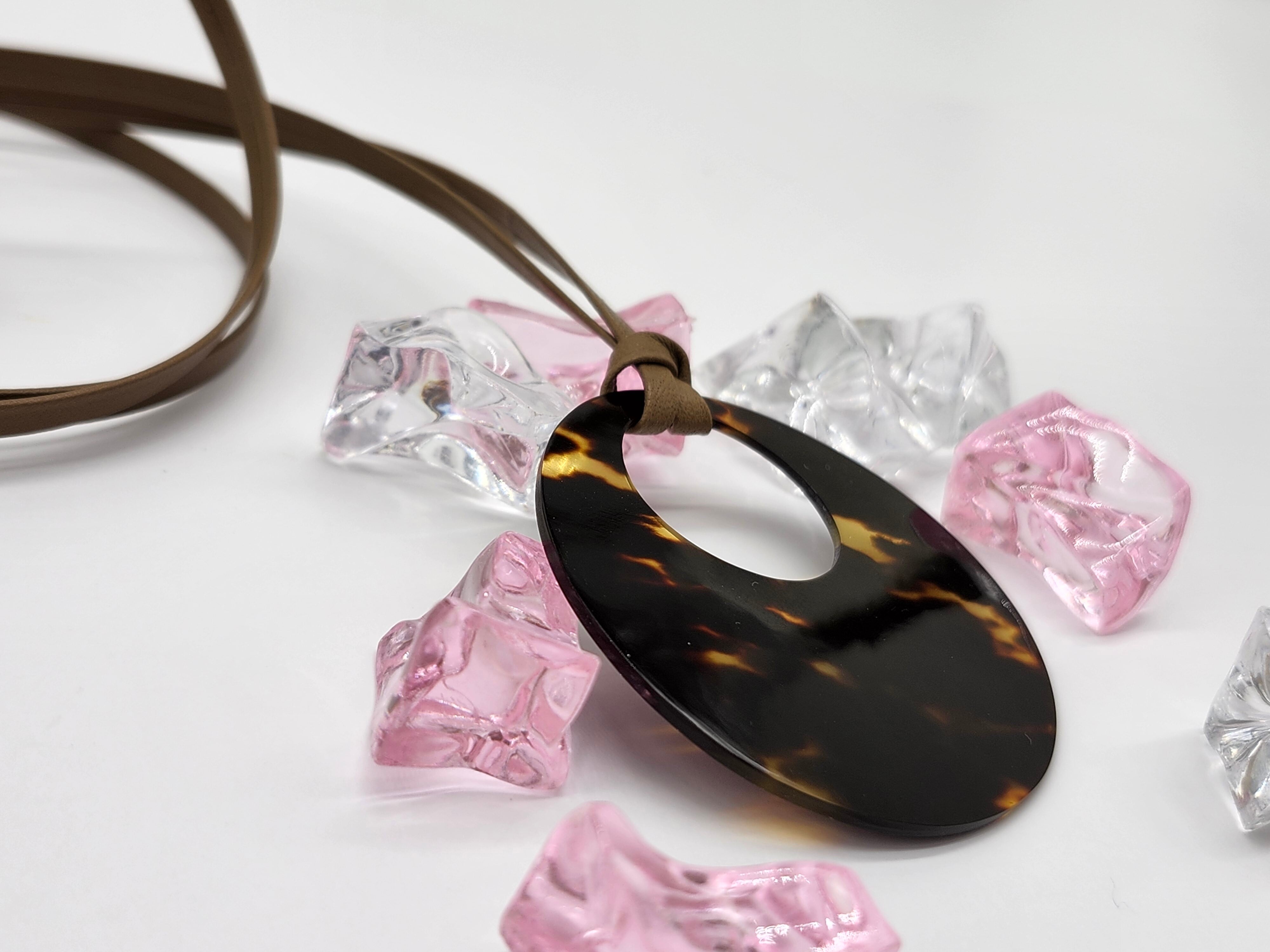 ●本べっ甲ラウンドペンダント(革紐付)約80cmフリー