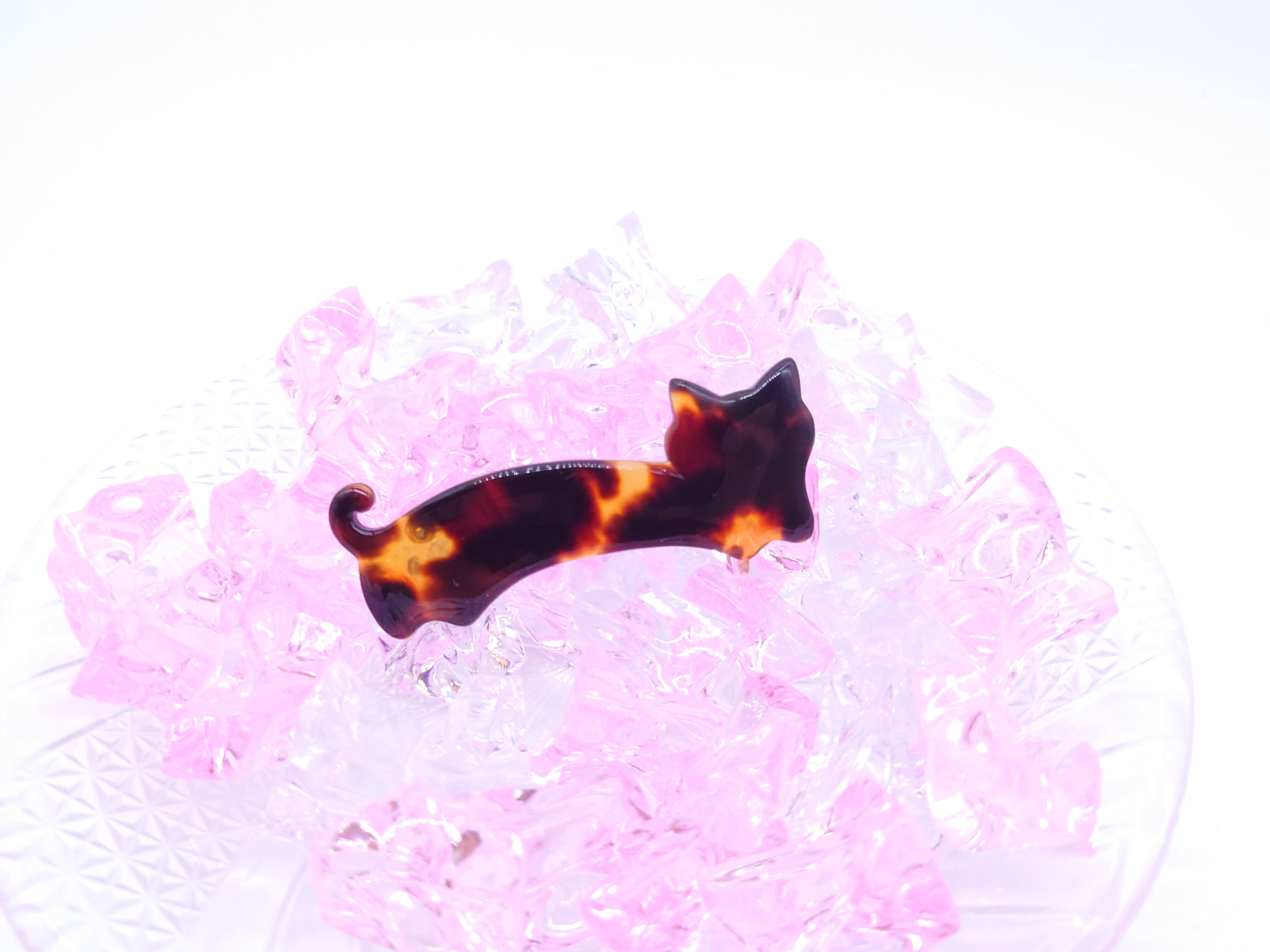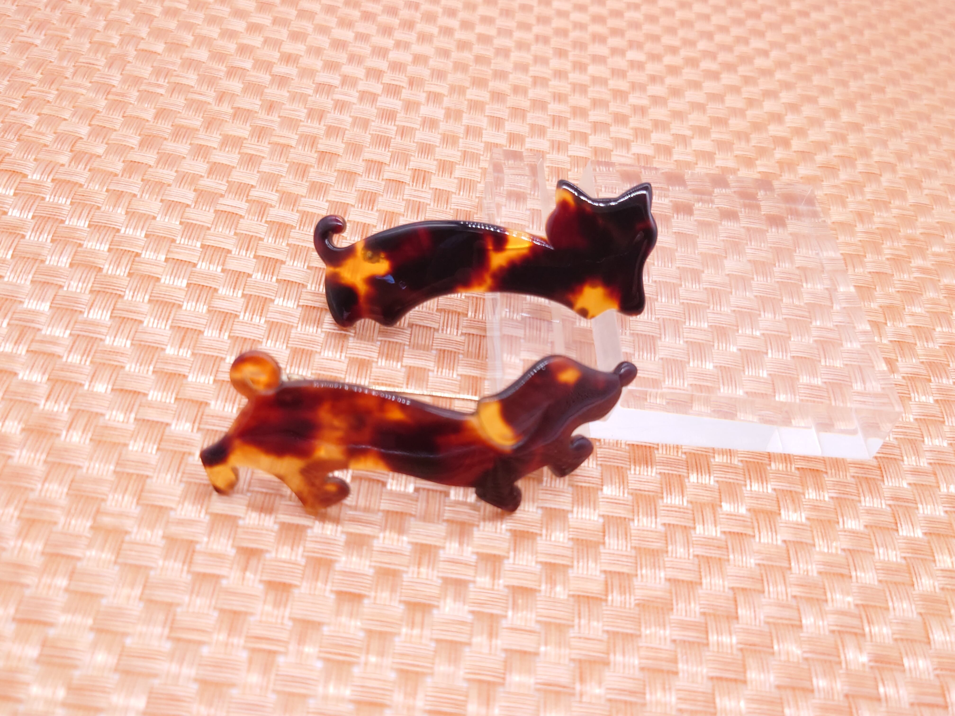 べっ甲らしさがとても良く出た商品でネコちゃん好きにピッタリなアイテムです。値段もリーズナブルでべっ甲は初めての方にも購入してもらいやすい商品です。ネコちゃんとワンチャンのシリーズにしてみました! ※べっ甲及び琥珀等の天然素材はすべて本物です。