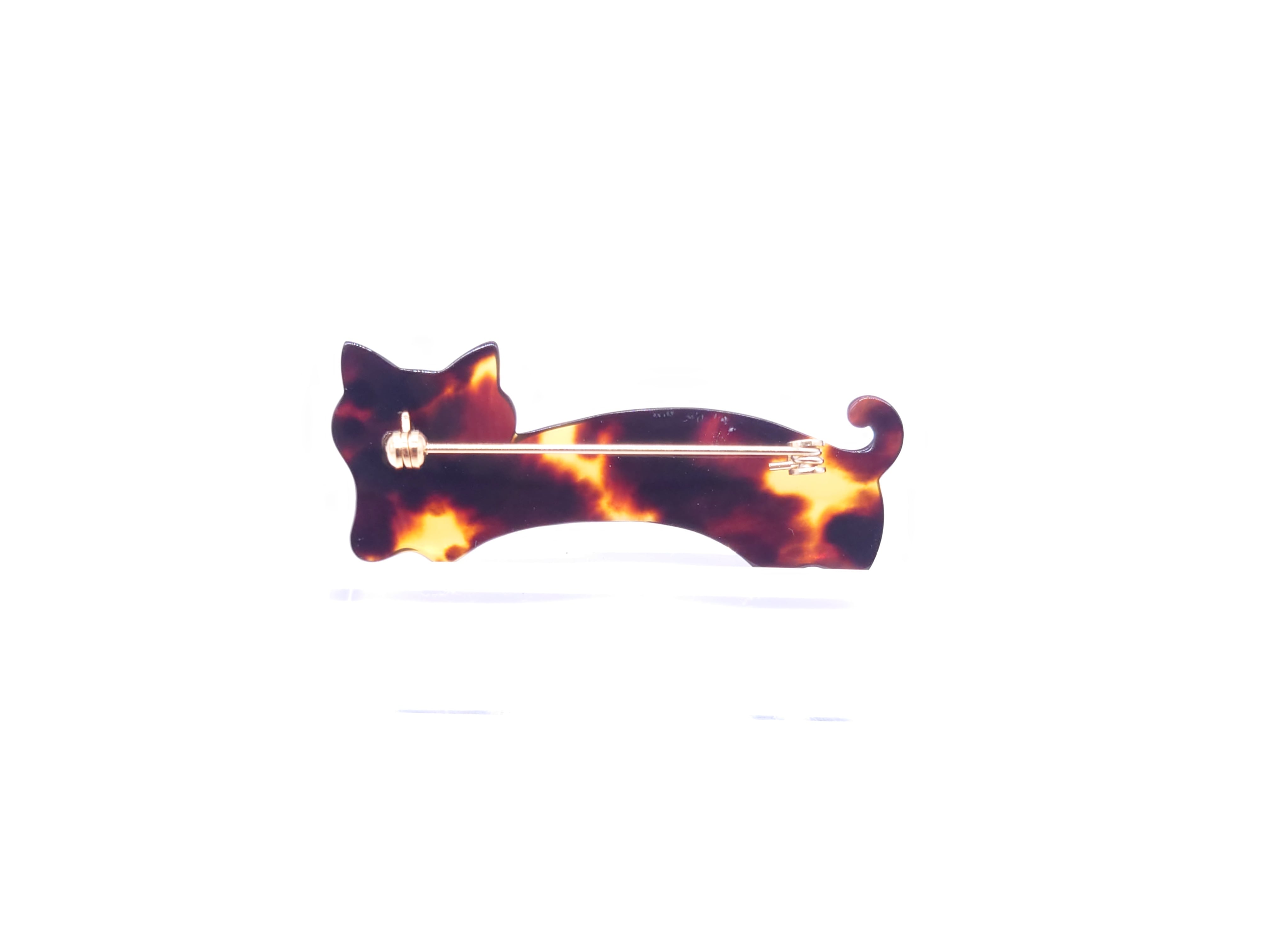 少し縦長の躍動感のあるネコちゃん!とてもカワイイシルエットになっており胸元に着けて様々なシチュエーションに一緒に連れて行って頂きたいです。縦長なのでブローチ金具も長めに取り付けている為、着けやすく色んな向きで着けて頂けます。