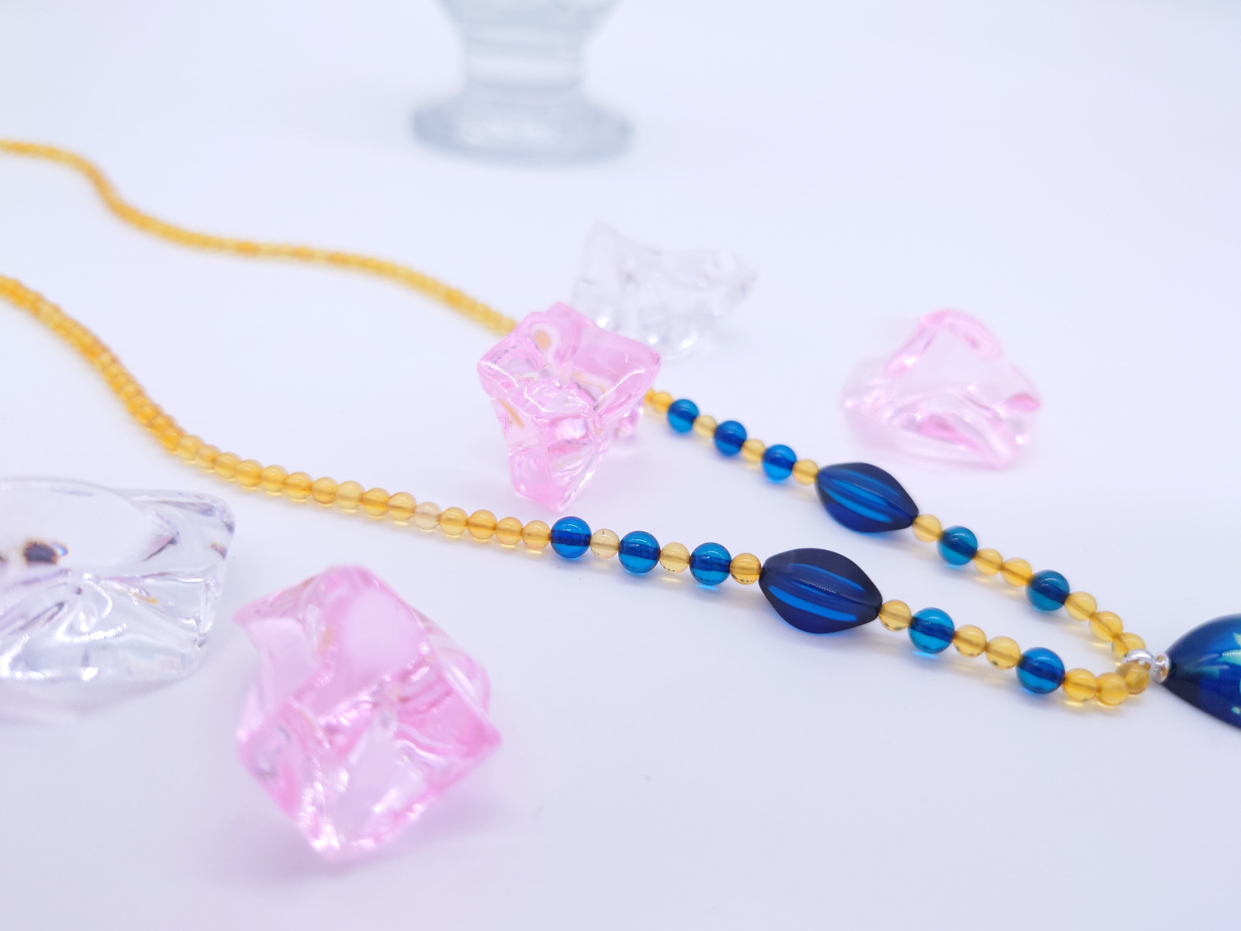 ●サイズ 全長約46cm トップ琥珀 タテ約2cm